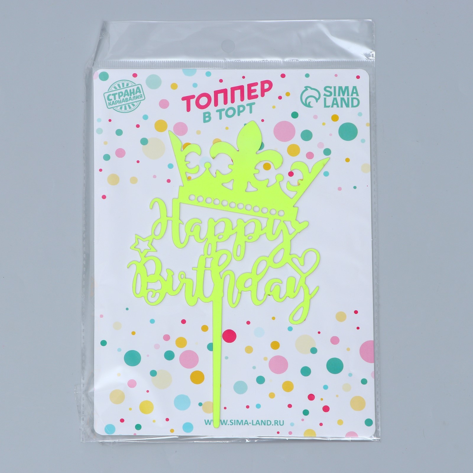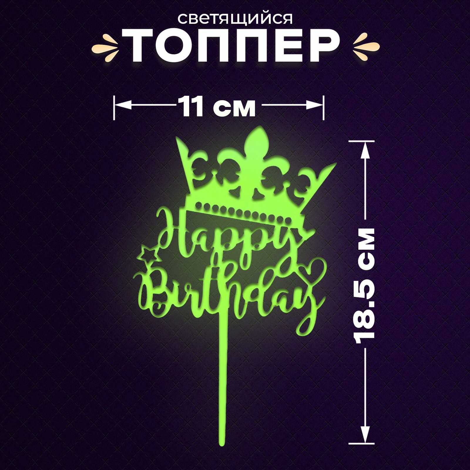 Топпер «с днём рождения», светится в темноте, цвет жёлтый