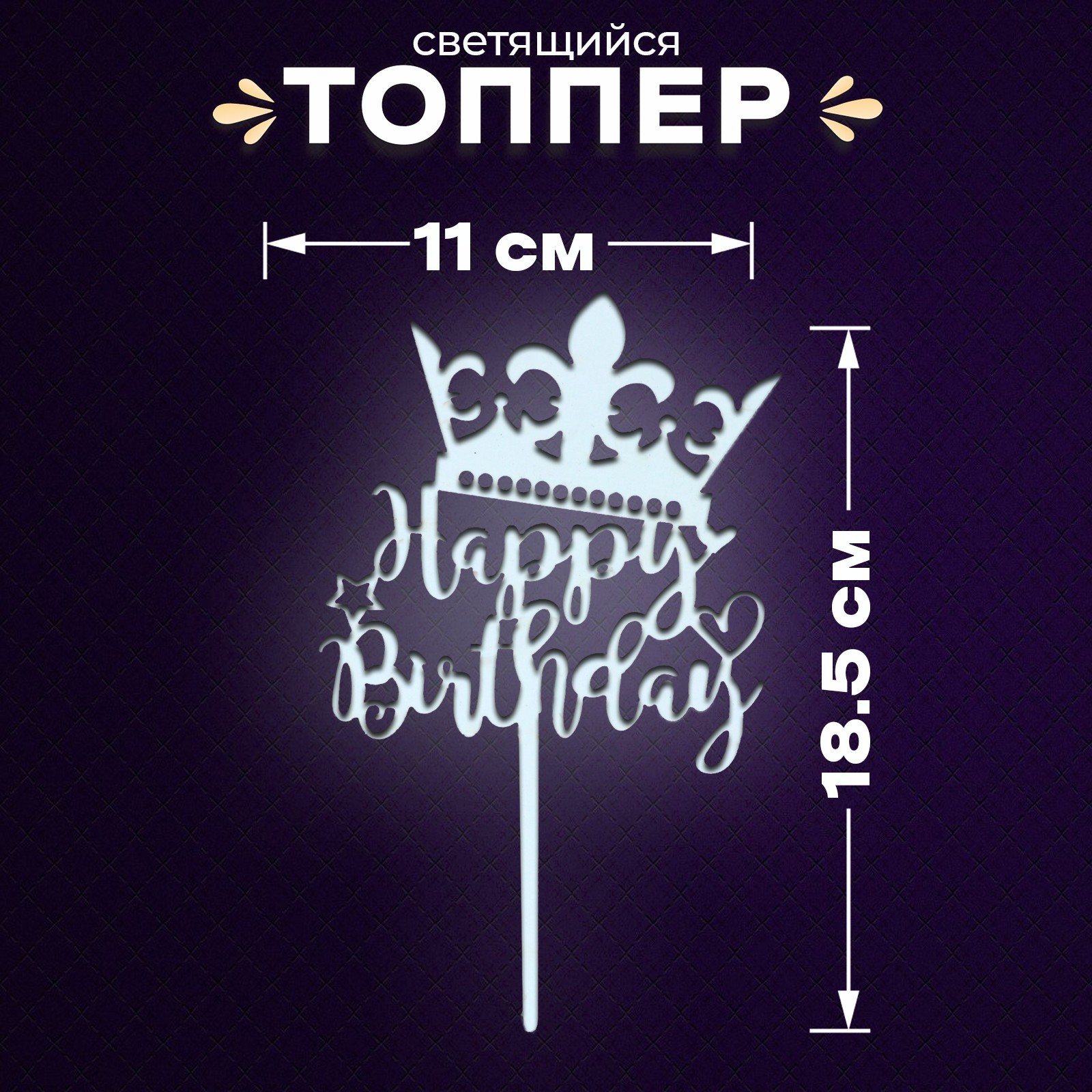 Топпер «с днём рождения», светится в темноте, цвет белый