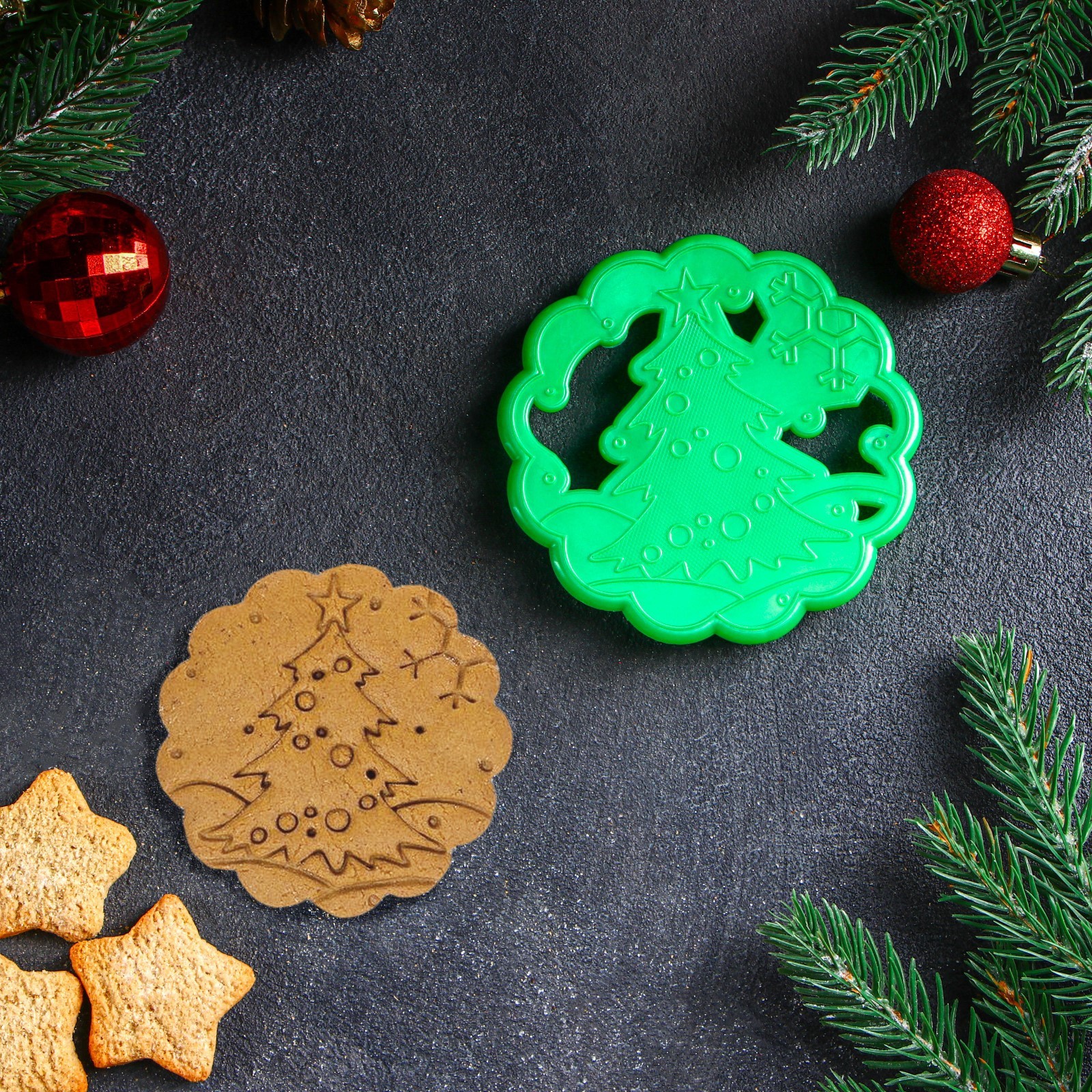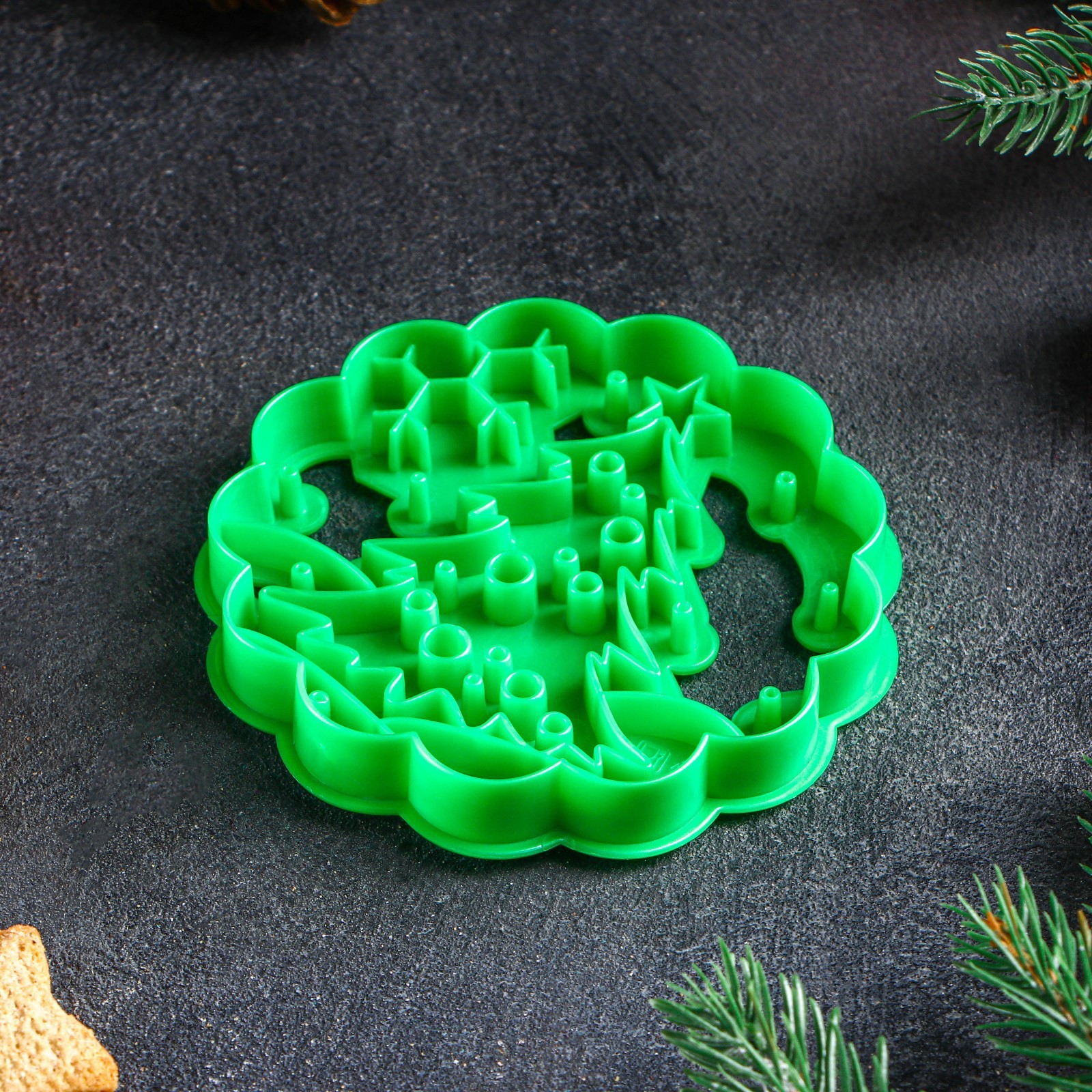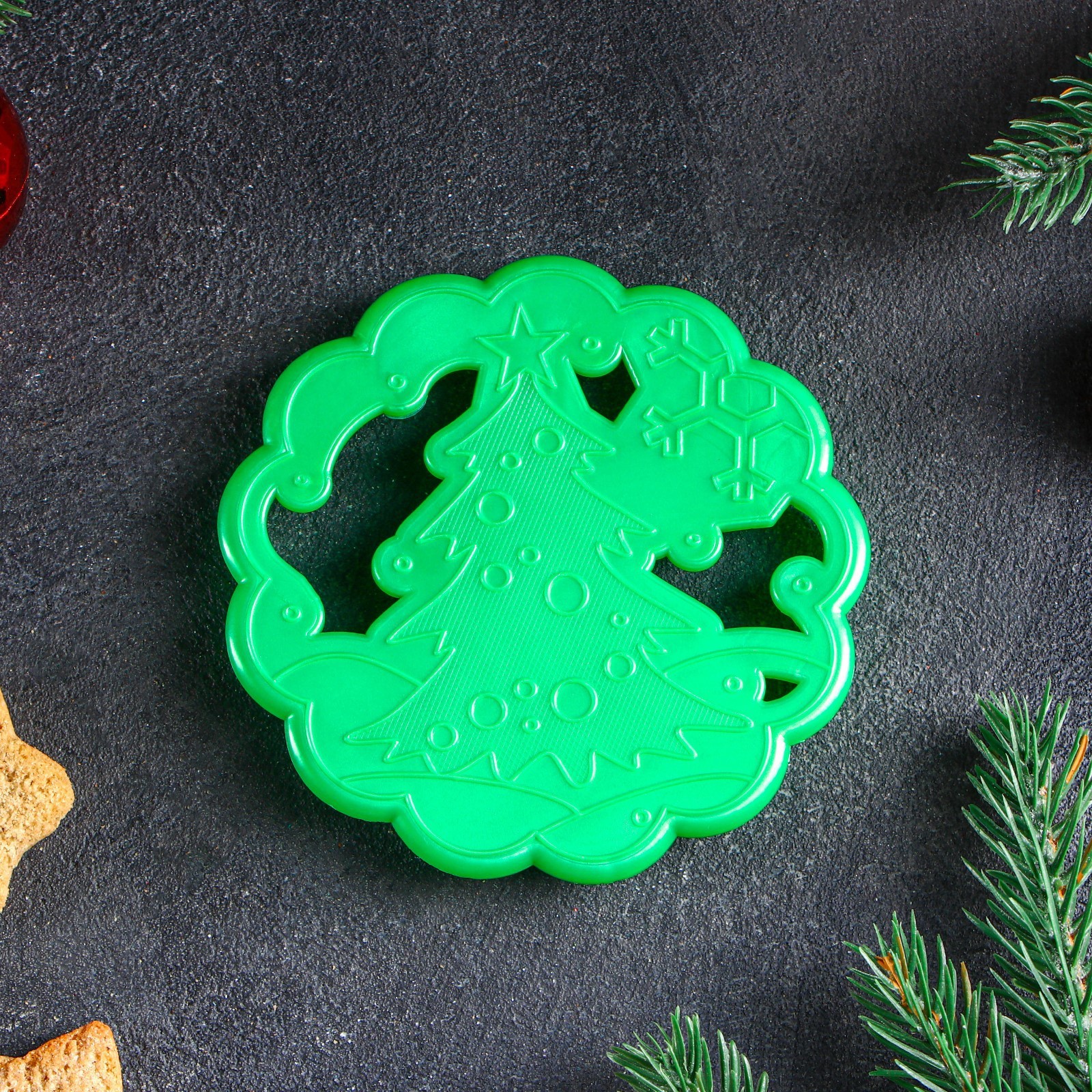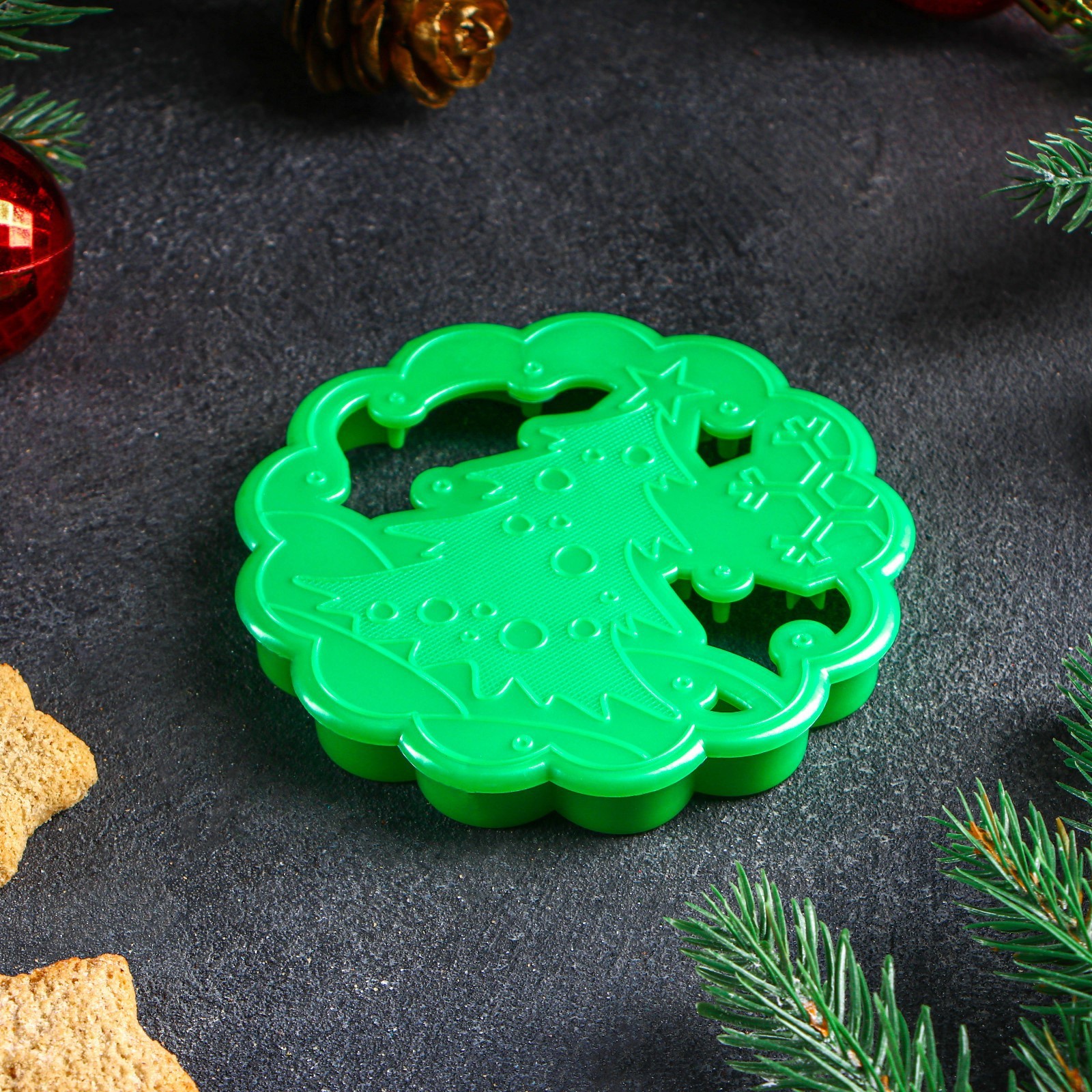 Форма для печенья «ёлочка», вырубка, штамп, D=9 см, цвет зелёный