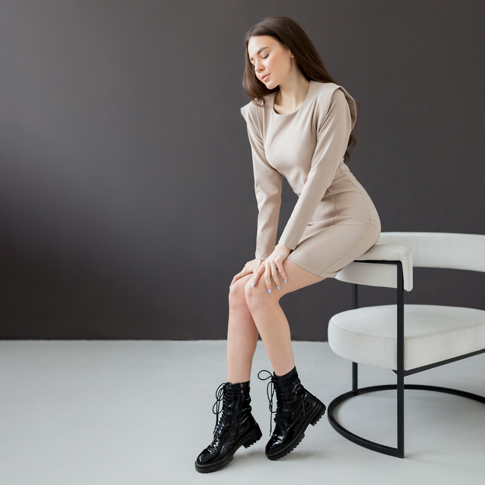Платье мини женское mist, размер 48, бежевое. Цвет:Бежевый|Для кого:Для женщины|Назначение:Офис|Назначение:Повседневная|Ткань:Костюмная ткань|Размер:48|Рост, см:165 - 175|Рост модели на фото, см:169|Сезон:Лето|Вид застёжки:Молния|Тематика:Однотонная|Длина рукава:Длинный|Тематика праздника:Новый год|Тематика праздника:8 Марта|Вырез горловины:Круглый|Декоративные элементы:Рюши|Тип карманов:Без карманов|Рекомендации по уходу:Деликатная стирка при 30 °С|Рекомендации по уходу:Не отбеливать|Рекомендации по уходу:Бережный режим глажки|Состав ткани:Полиэстер|Длина юбки:Мини|Обхват талии, см:76 - 80|Вид юбки:Карандаш|Обхват бёдер, см:104|Параметры модели на фото (ОГ-ОТ-ОБ):83-64-90|Размер одежды:42|Страна:Россия  развернуть описание ▼
