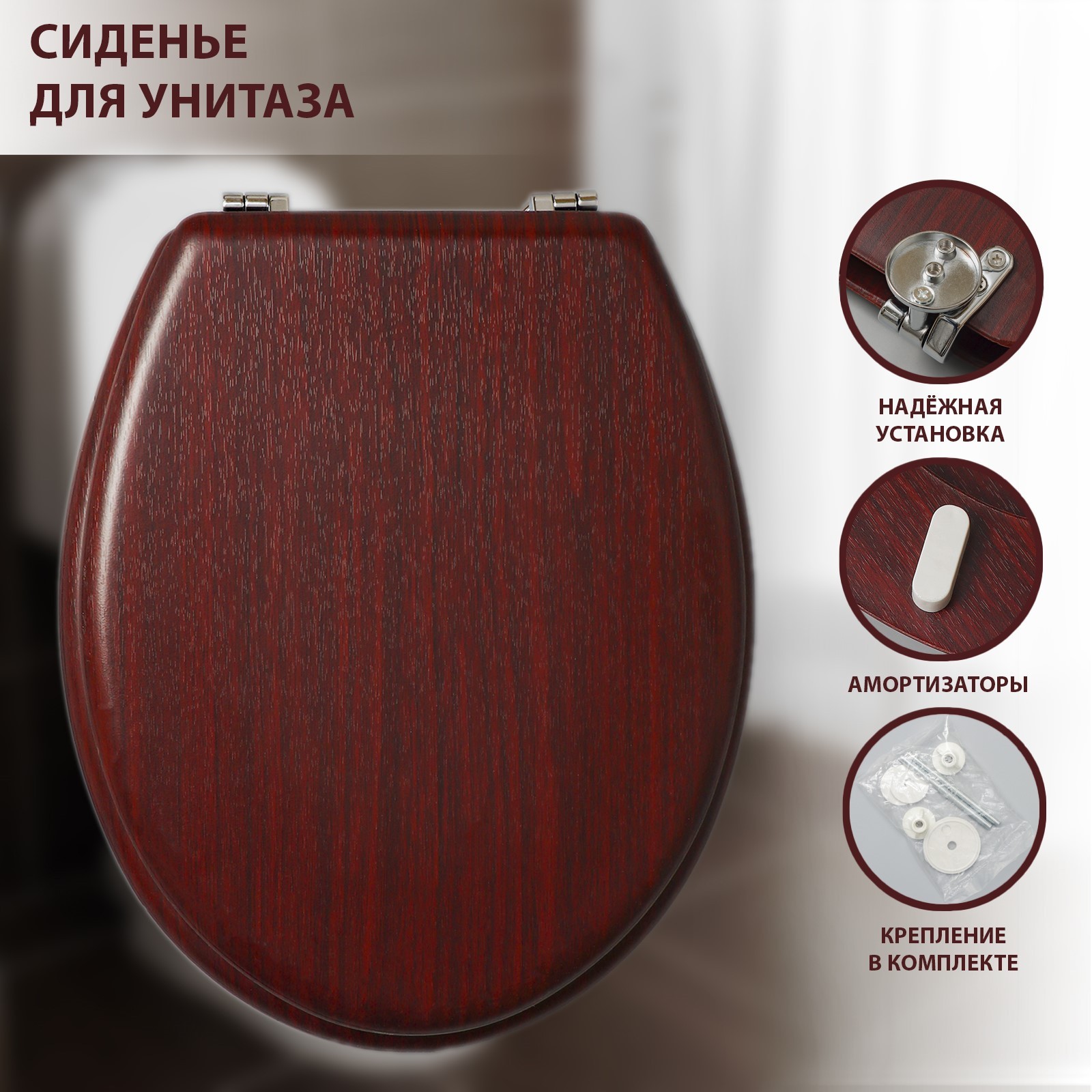 Сиденье для унитаза с крышкой «натуральное дерево», 45x35 см, цвет орех