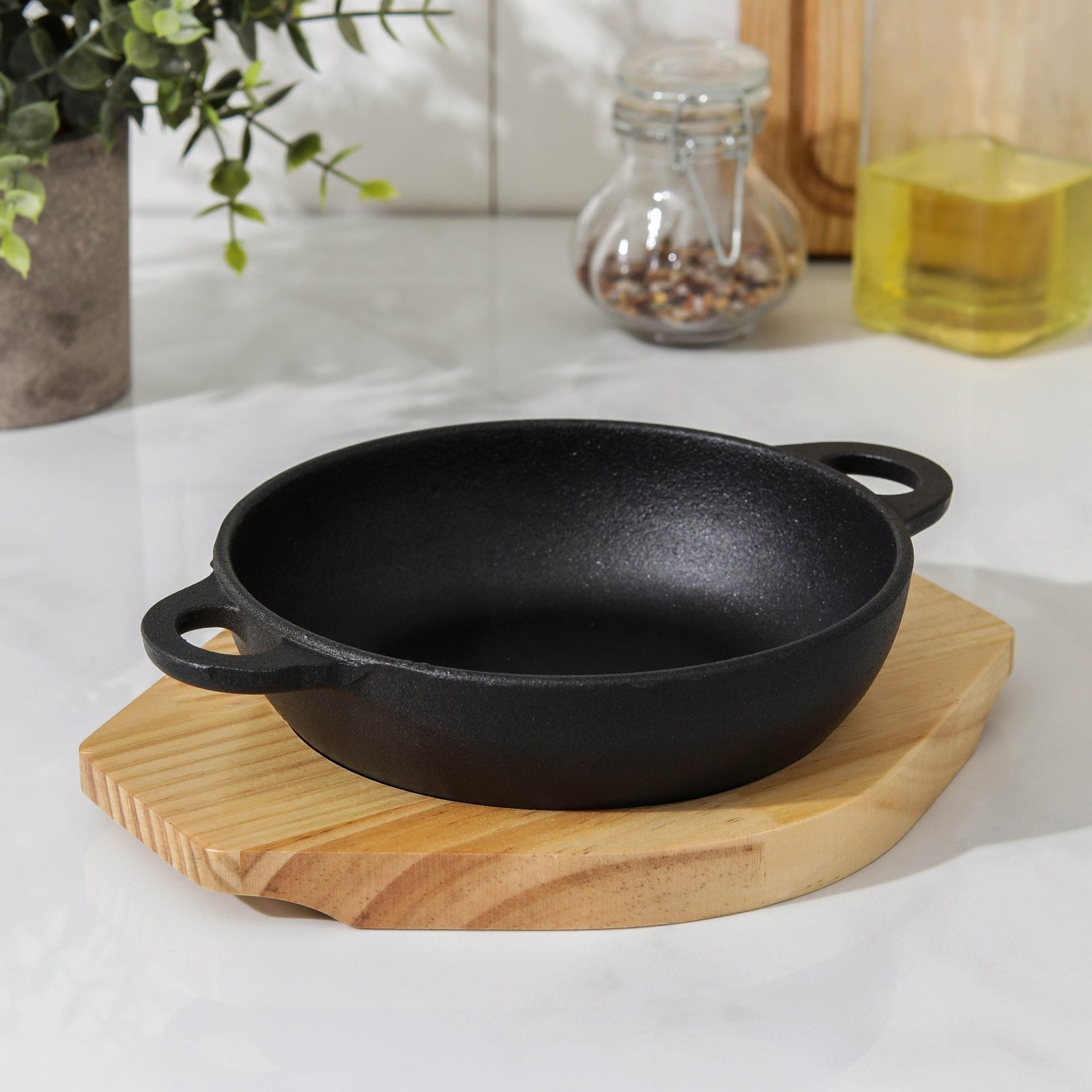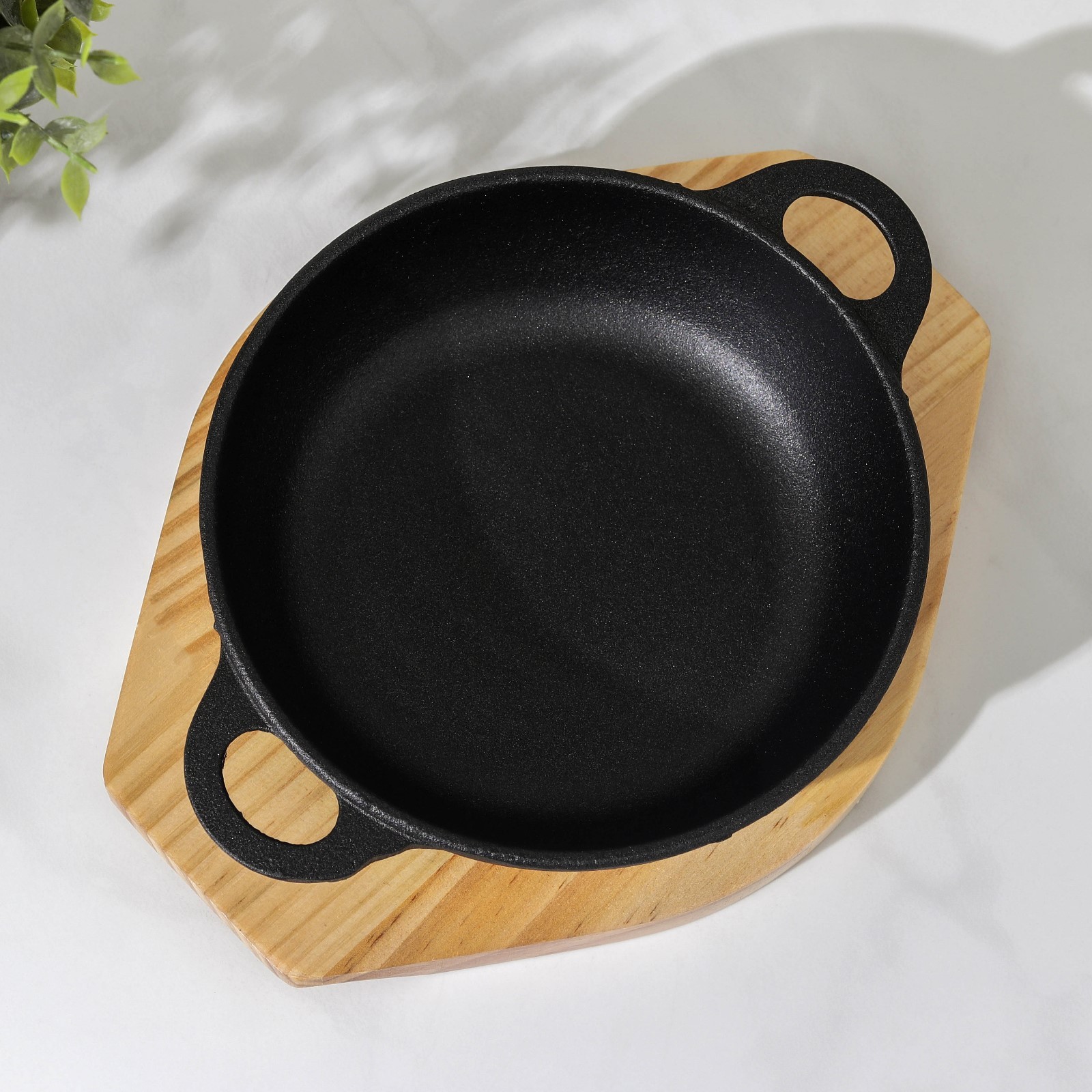 Сковорода чугунная на деревянной подставке Magma «Круг», 25x3 см, цвет чёрный Сотейник с крышкой Beka Salsa, 1.2 л, d=16 см