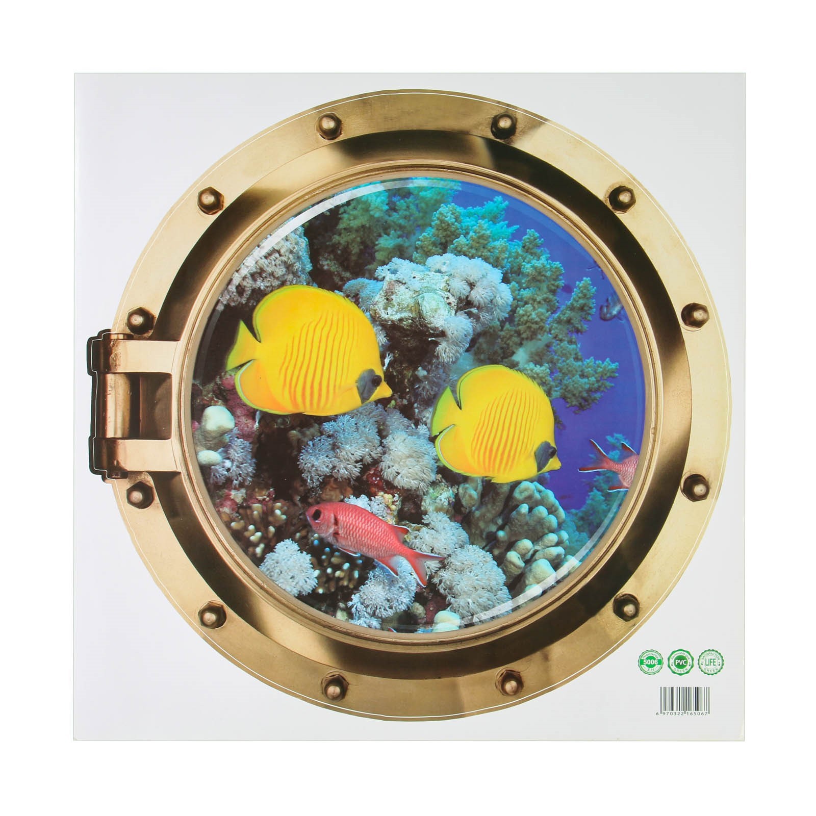 Наклейка 3д интерьерная рыбки в илюминаторе 50*50см