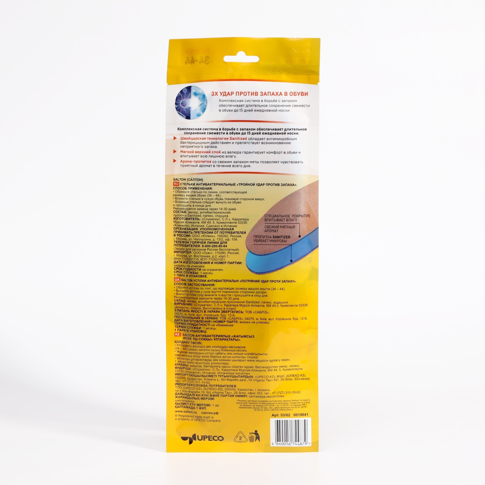 Стельки для обуви антибактериальные Salton, тройной удар против запаха, размер 34-45