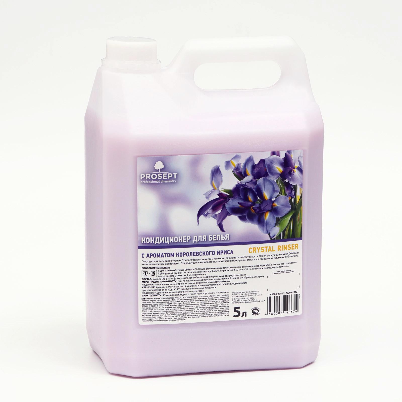 Бальзам-кондиционер для белья crystal rinser, с ароматом королевского ириса, 5л. Концентрат кондиционера для белья с приятным нежным ароматом, подходит для всех видов тканей. Экономичен в использовании. Придает белью свежесть и мягкость, повышает износостойкость, сохраняя структуру тканей. Облегчает сушку и глажку, обладает антистатическими свойствами. Для машинной стирки: руководствоваться инструкцией изготовителя машины. Добавить 30 - 70 мл в отделение ополаскивателя при последнем цикле полоскания, либо из расчёта 2 - 10 мл/кг сухого белья. Для ручной стирки: после основной стирки добавить из расчета 20 - 50 мл на 10 - 15 л воды при последнем полоскании, либо из расчёта 2 - 10 мл/кг сухого белья. parts count: 0 Объём, л: 5 Вес, г/Объём, мл: 5000 Форма выпуска: Жидкость Назначение: Для всех видов тканей Вид стирки: Для всех видов стирки : 0 Температурное ограничение: Нет Особенности средства: Концентрат  развернуть описание ▼