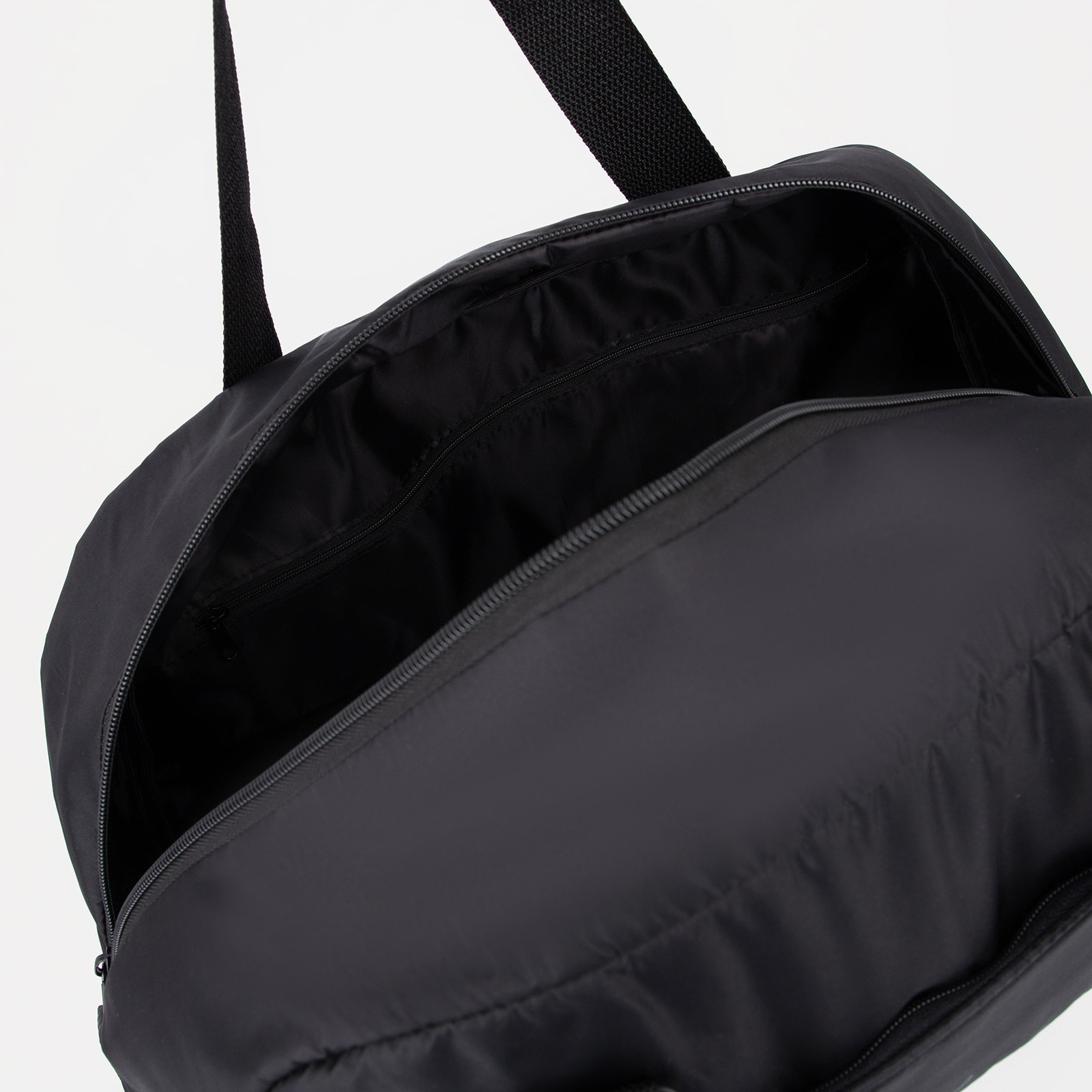 Сумка спортивная на молнии, наружный карман, длинный ремень, средний размер, цвет чёрный. Цвет: Чёрный Длина, см: 48 Материал: Текстиль Наличие символики РФ: Нет Модель сумки: Спортивная Дополнительный объём: Без увеличения Температурное ограничение: Нет  развернуть описание ▼