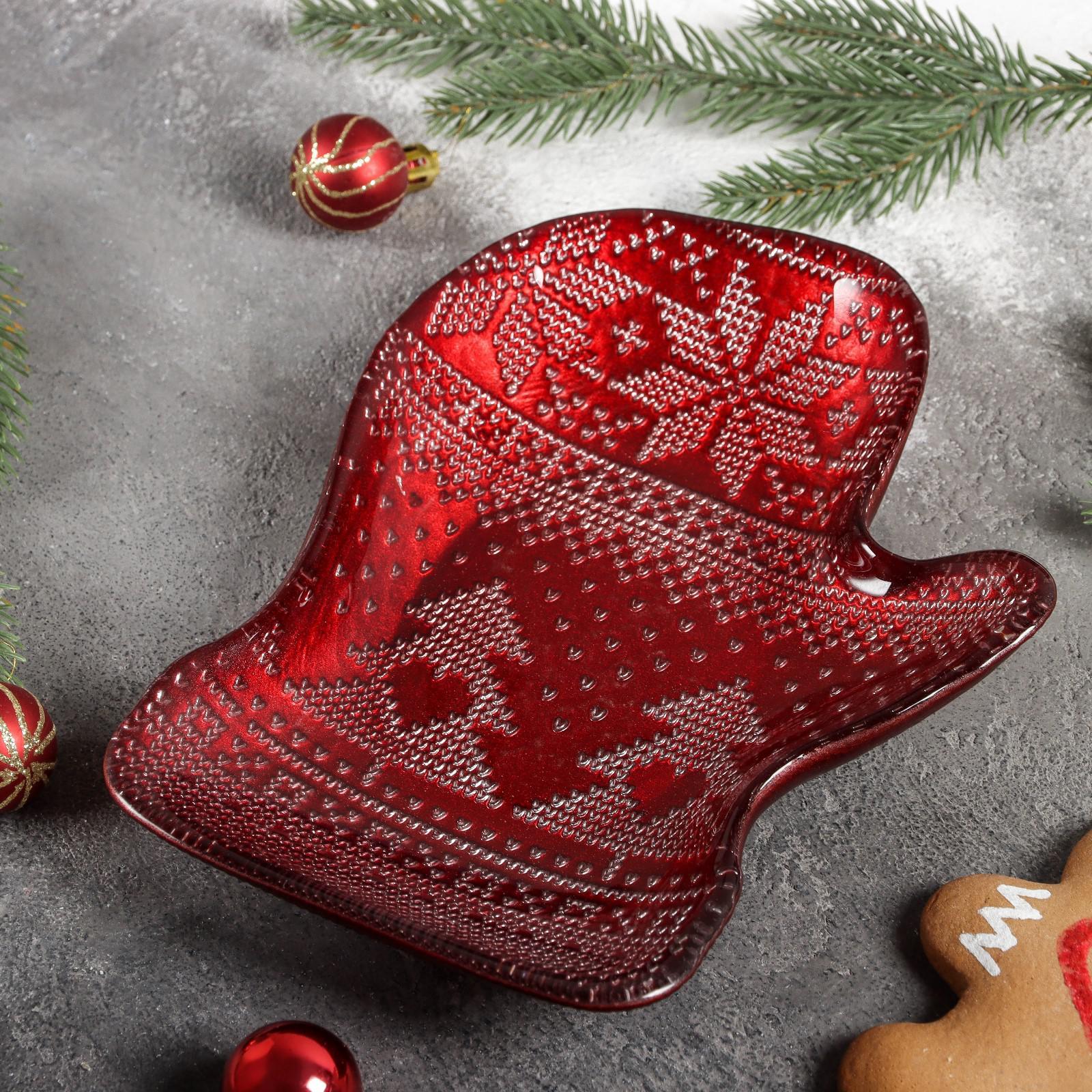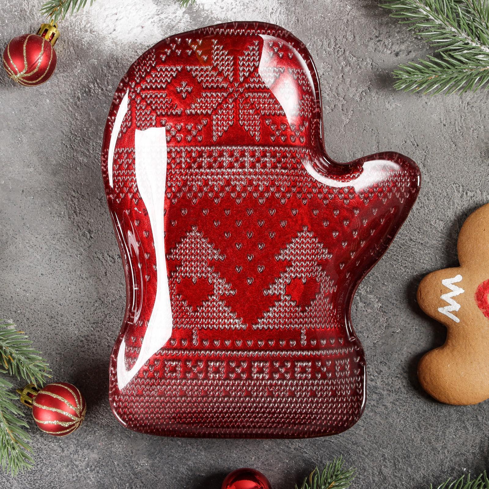Блюдо сервировочное «рукавица санты», 23 см, цвет красный