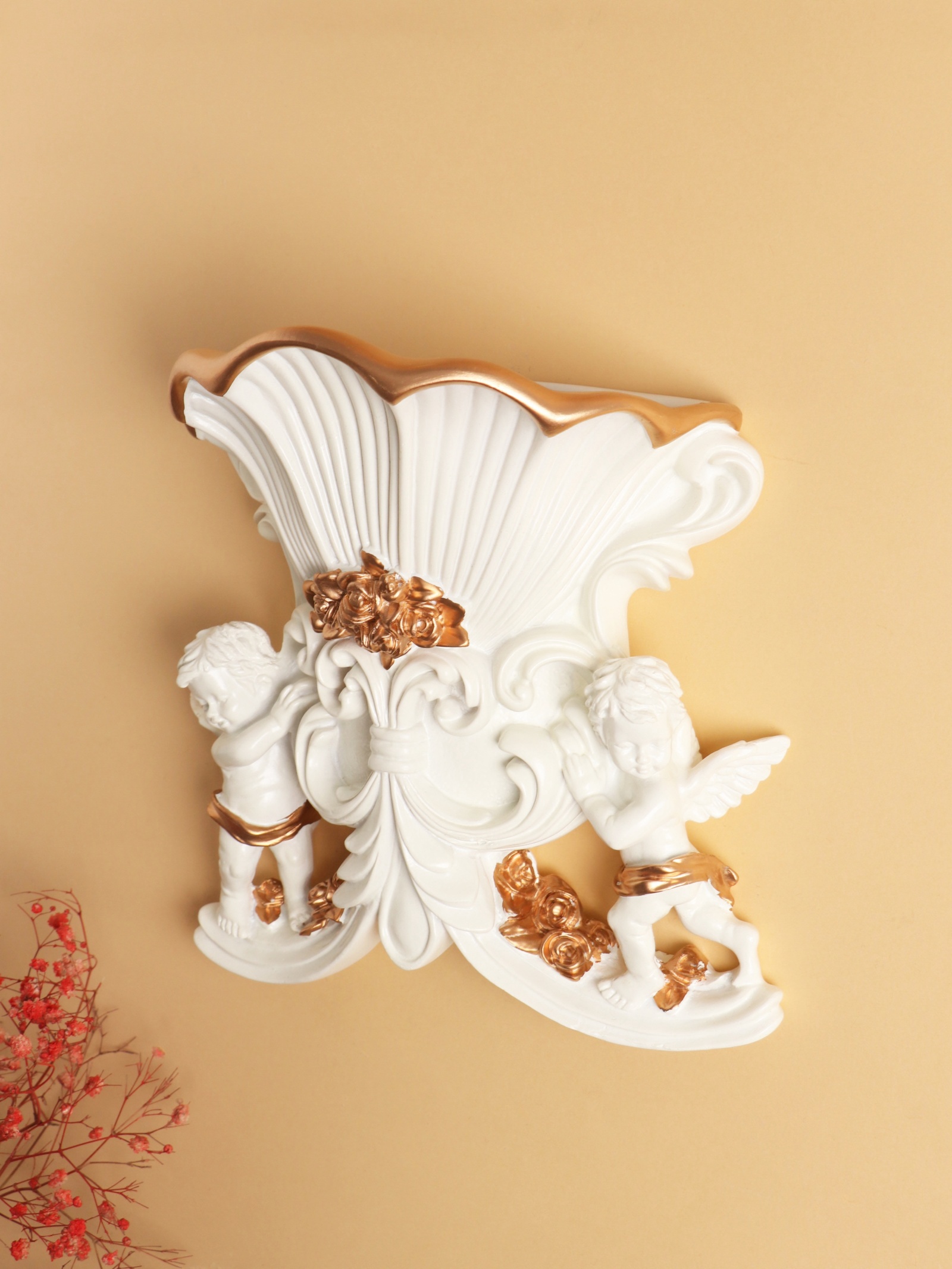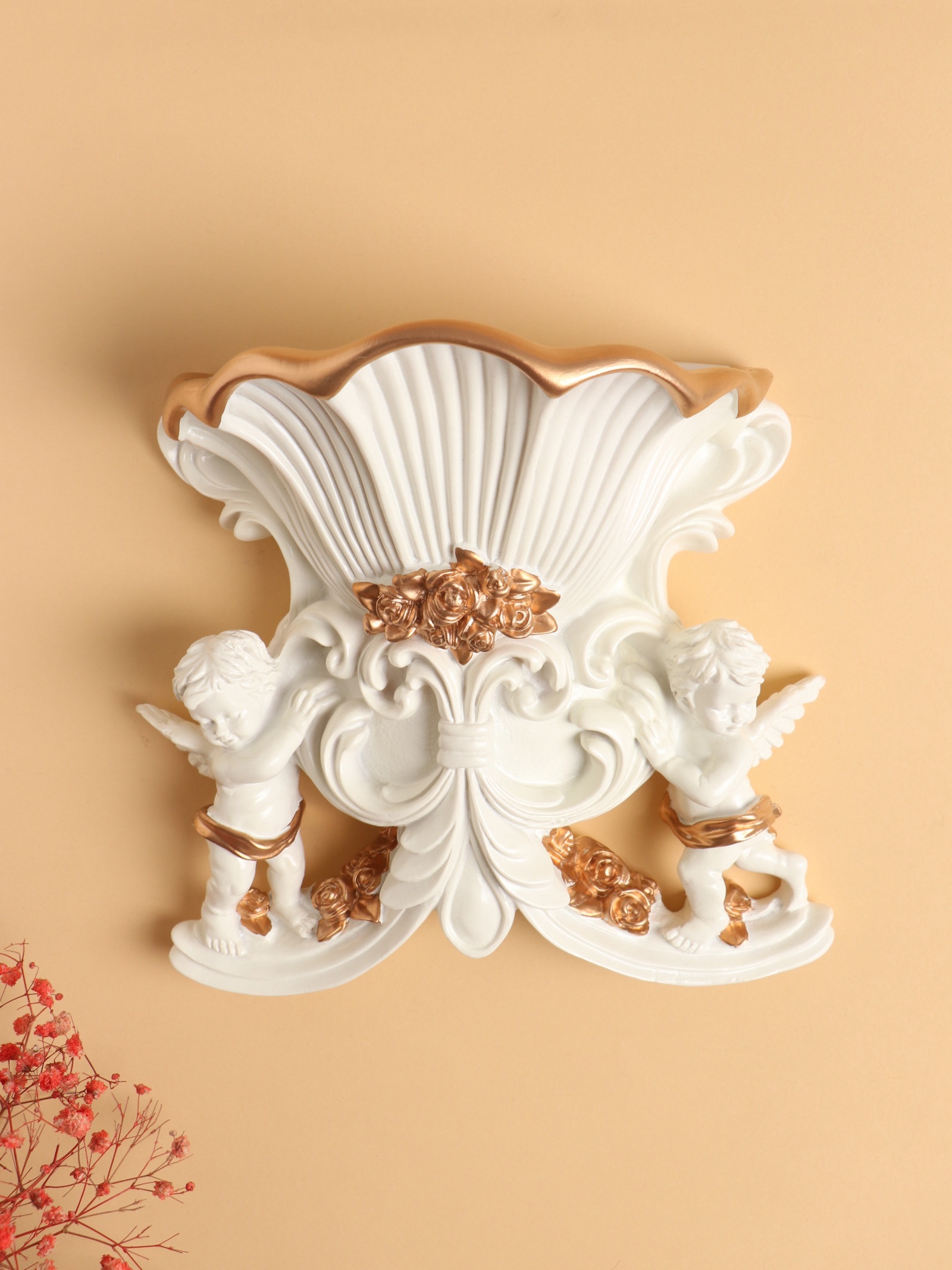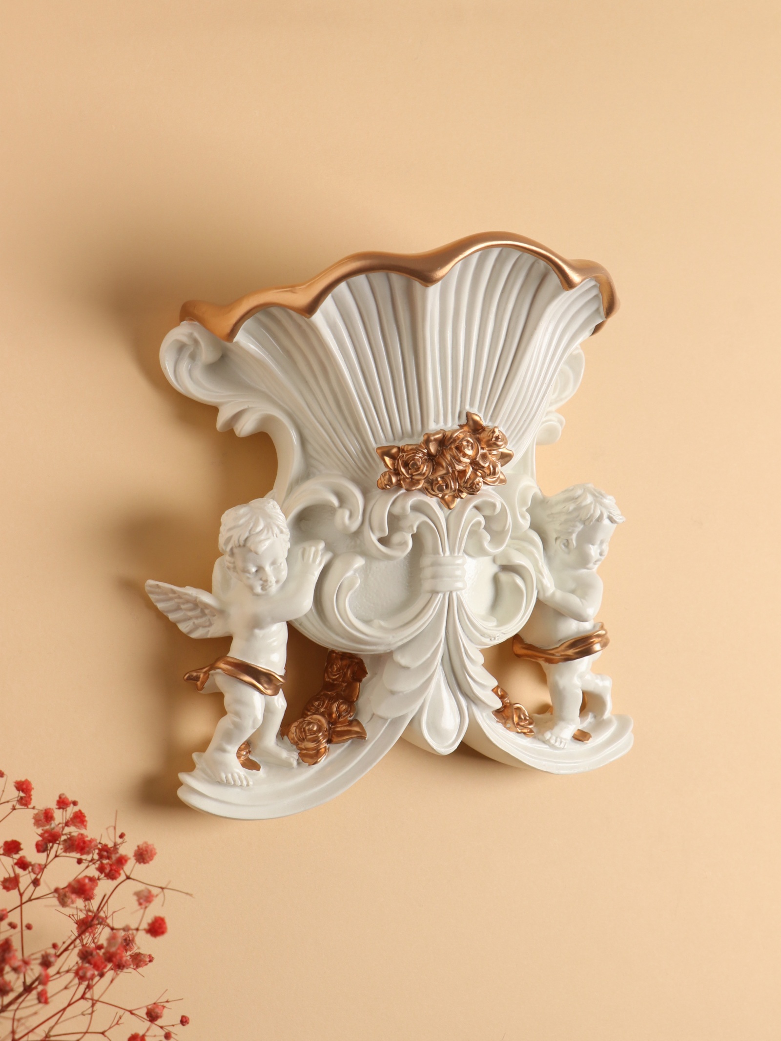Декор настенный-ваза, панно take it easy «ангелочки», 20.5 см x 22.5, белая с золотом. Настенный декор подходит для украшения интерьера дома или офиса. Его используют, чтобы освежить комнату, а также скрыть дефекты на стене. Декор можно использовать в качестве вазы для цветов. Особенности: Удобный крепежИзделие изготовлено из полистоунаМожно использовать как вазуЦвет:Белый|Ширина, см:22.5|Высота, см:20.5|Тематика:Интерьер|Тематика:Ангел|Вид вазы:Настенная|Материал:Полистоун|Страна:Китай  развернуть описание ▼