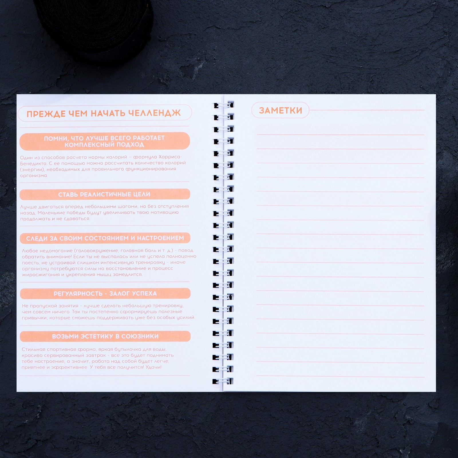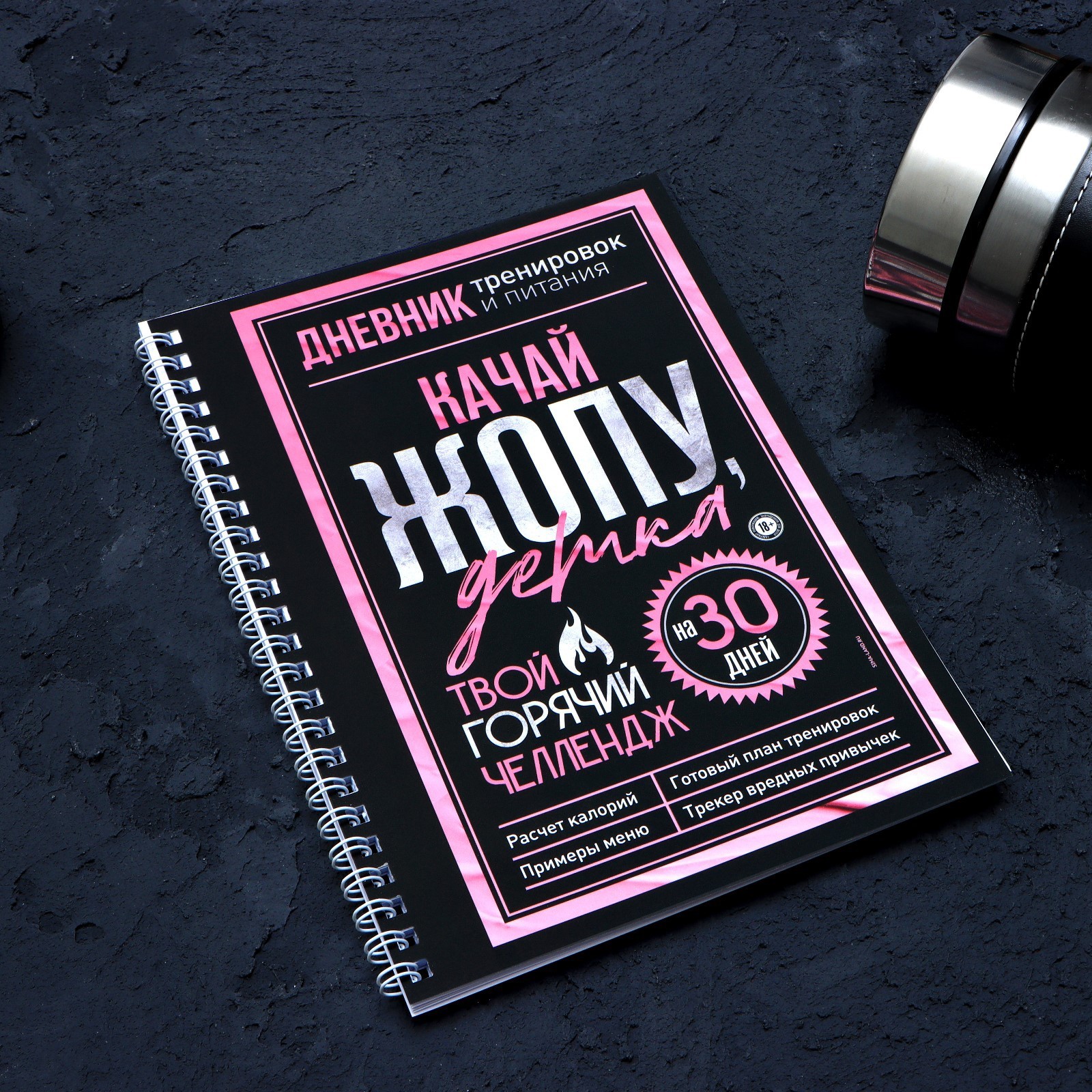 Дневник тренировок «горячий челендж» на пружине, 25 листов. Дневник тренировок – личный помощник в достижении поставленных целей. Он создан для записи результатов тренировок дня, своих достижений и прогресса. Удобный формат позволяет брать дневник на тренировки и соревнования. А яркий дизайн мотивирует не останавливаться на достигнутом. Цвет: Чёрный Цвет: Розовый Формат: А5 Количество листов: 25 Отделка: Тиснение Материал обложки: Картон Адресат: Без адресата Адресат: Спортсмену Материал: Картон Материал: Бумага Вид спорта: Универсальный Особенности: Мягкая обложка Температурное ограничение: Нет  развернуть описание ▼
