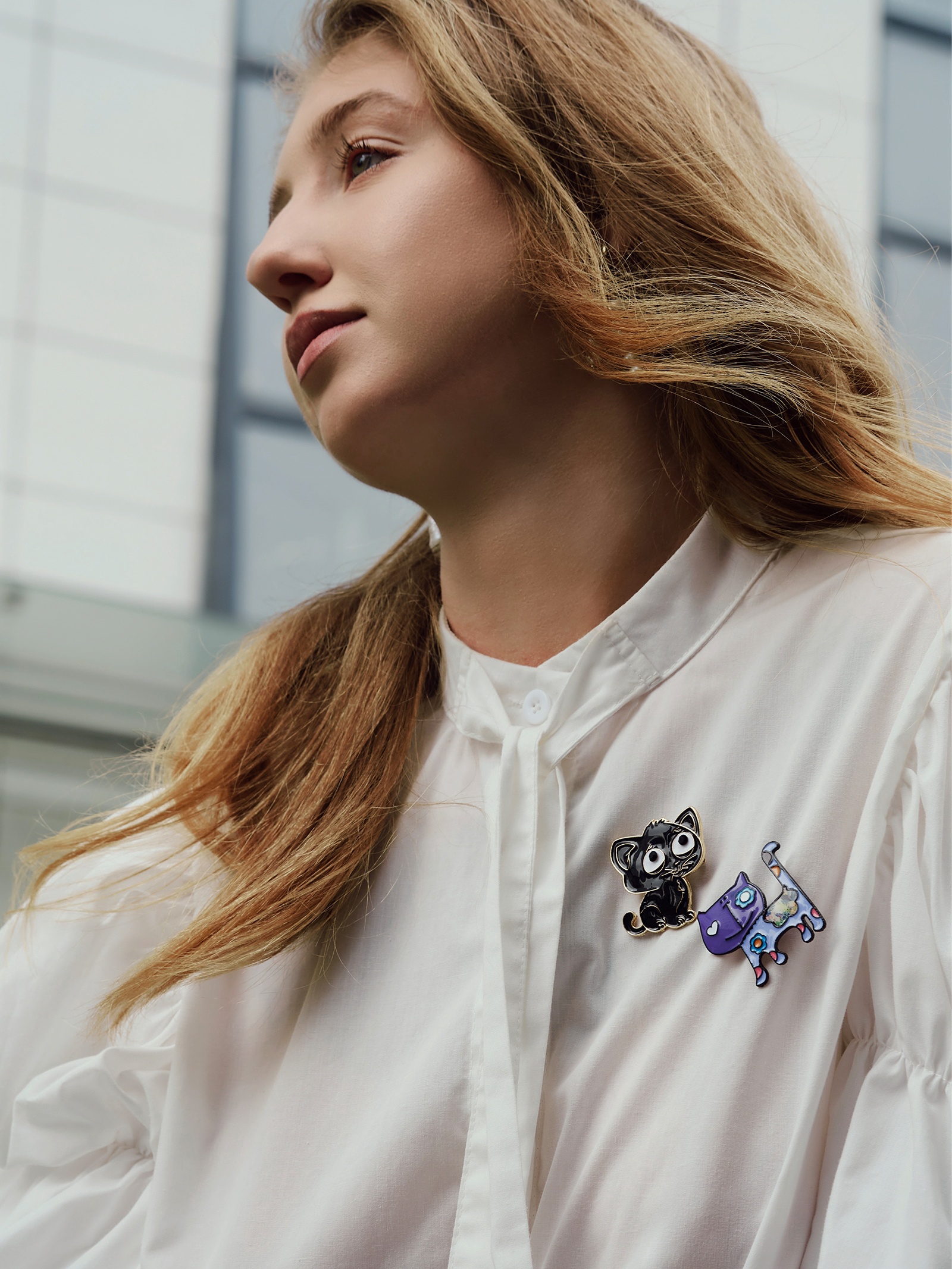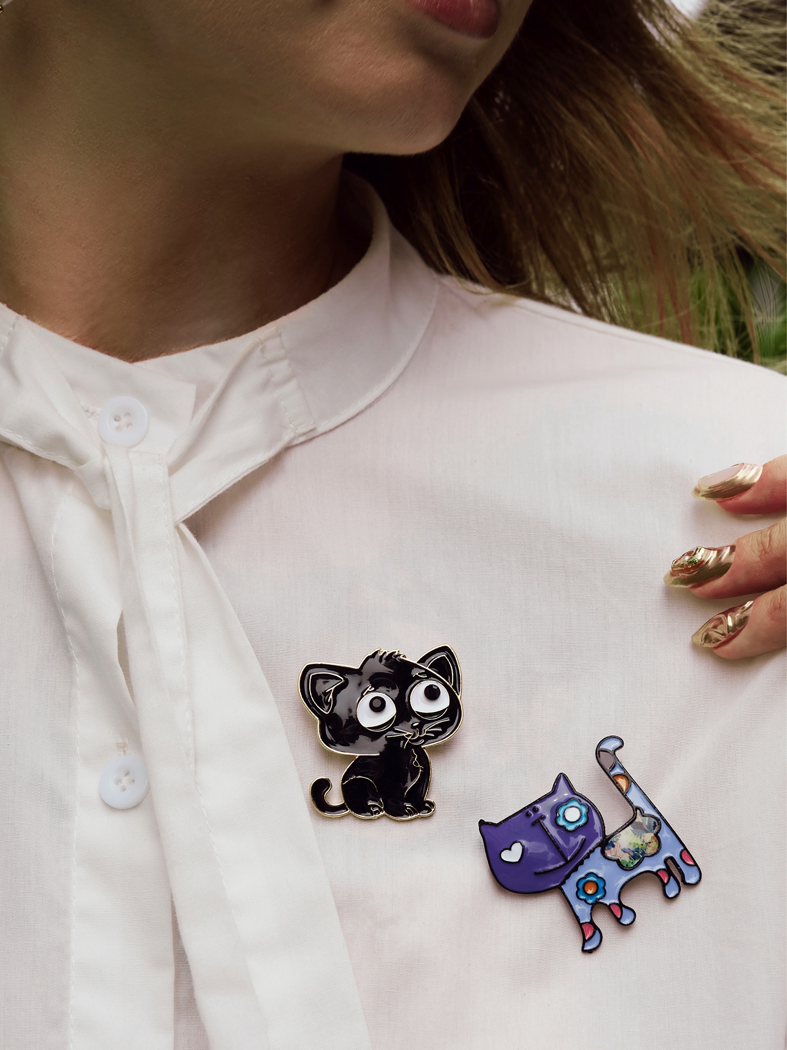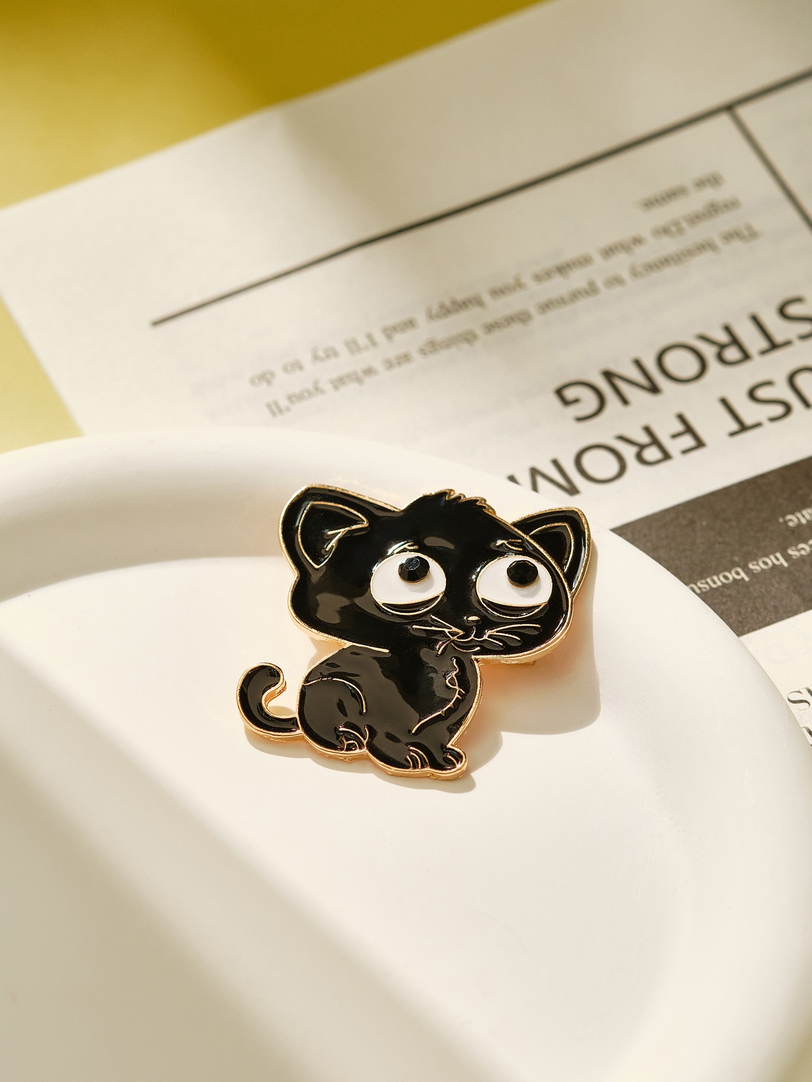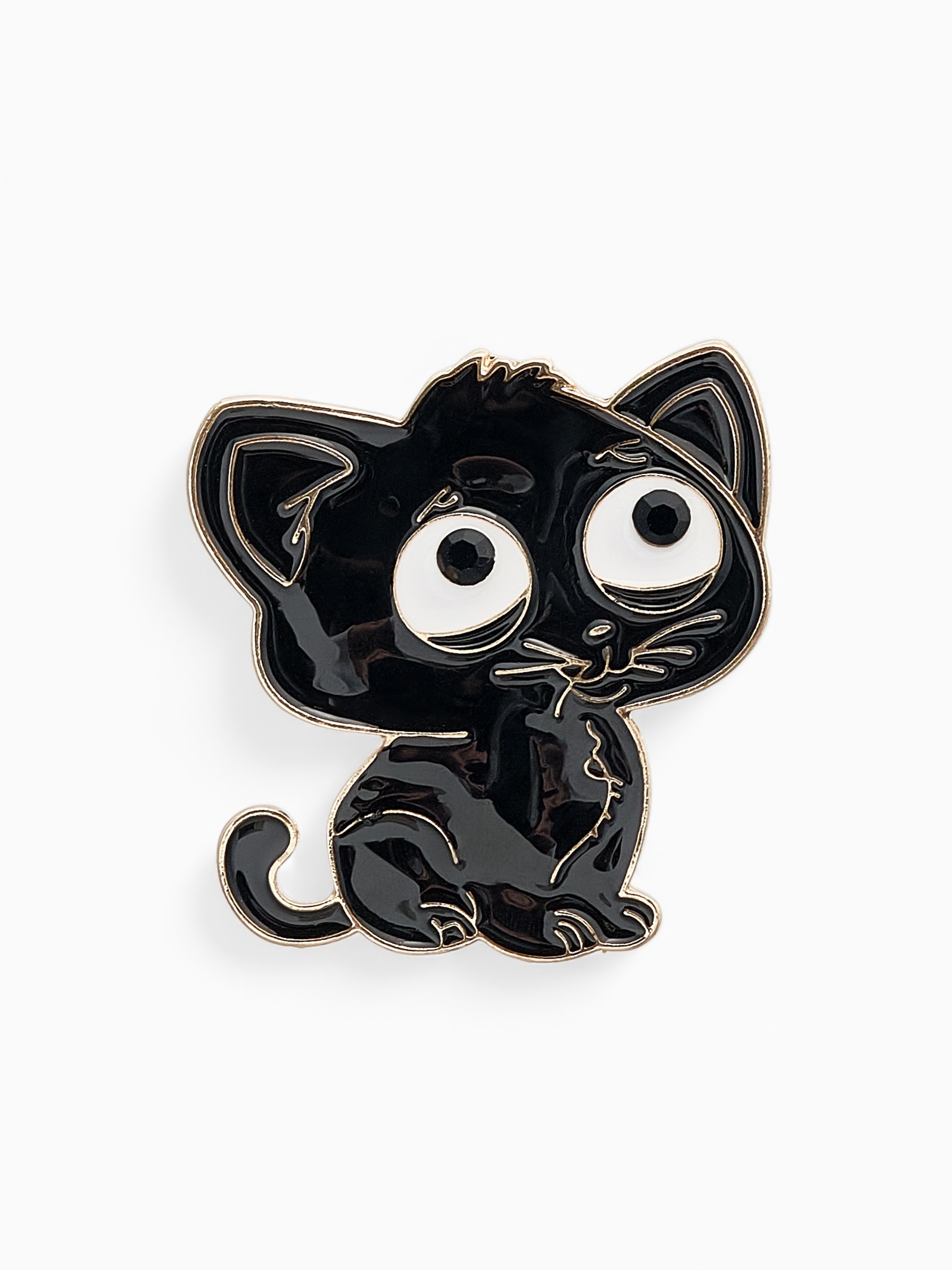 Брошь «котик» с большими глазами, цвет чёрный в золоте