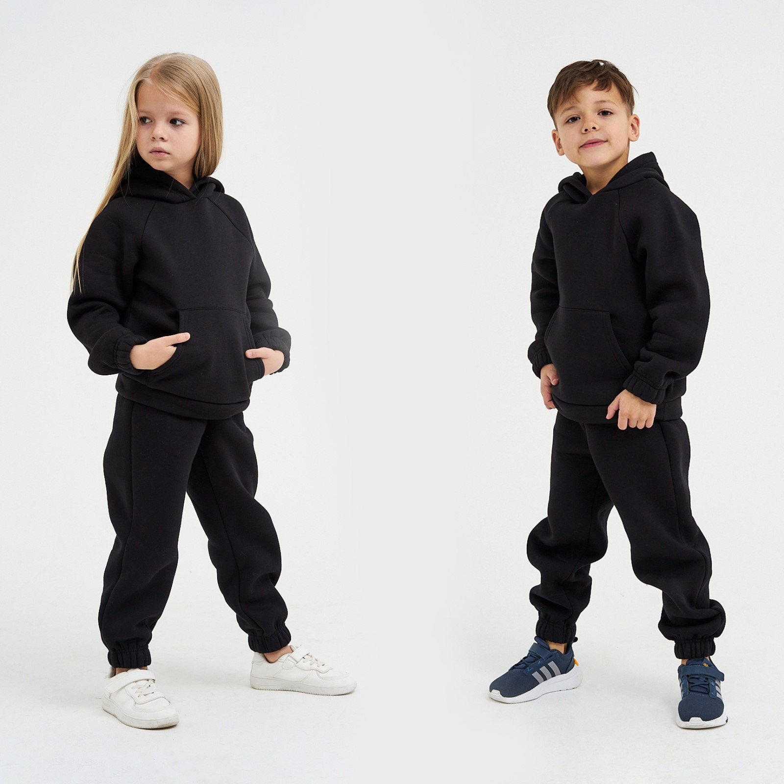 Костюм детский с начёсом (толстовка, брюки) Kaftan "Basic Line" р.30 (98-104), чёрный