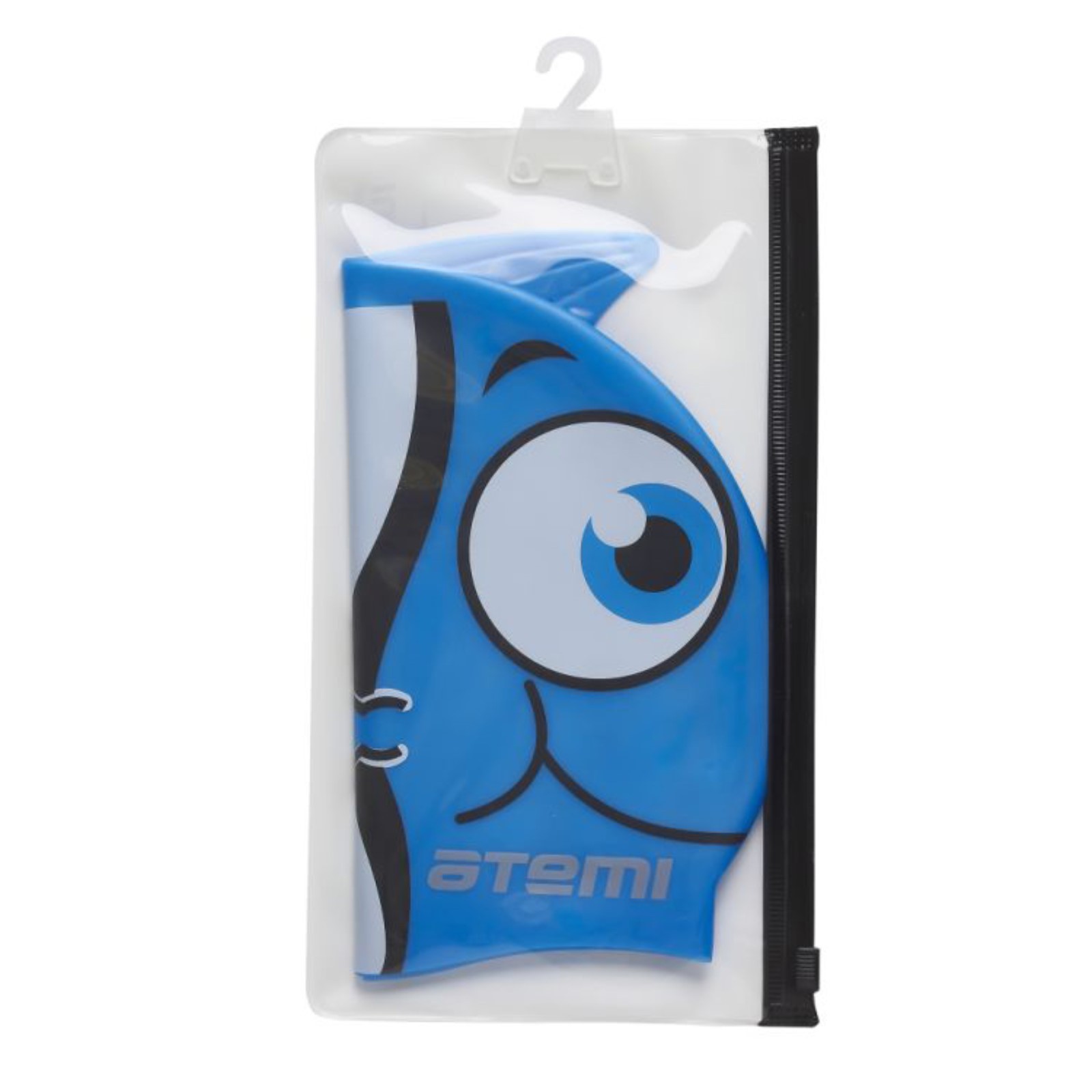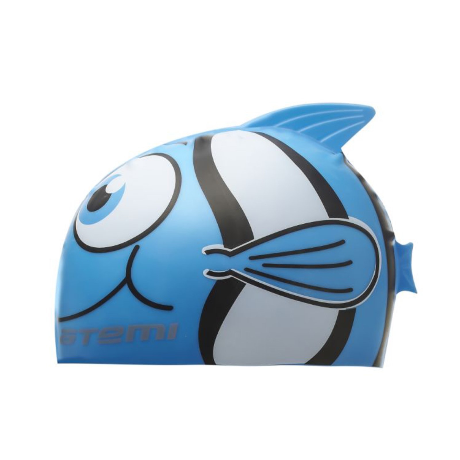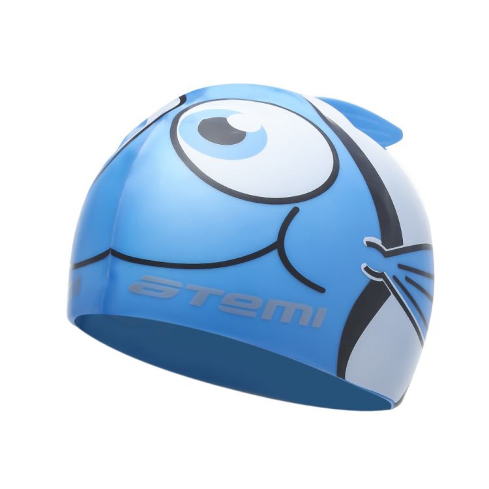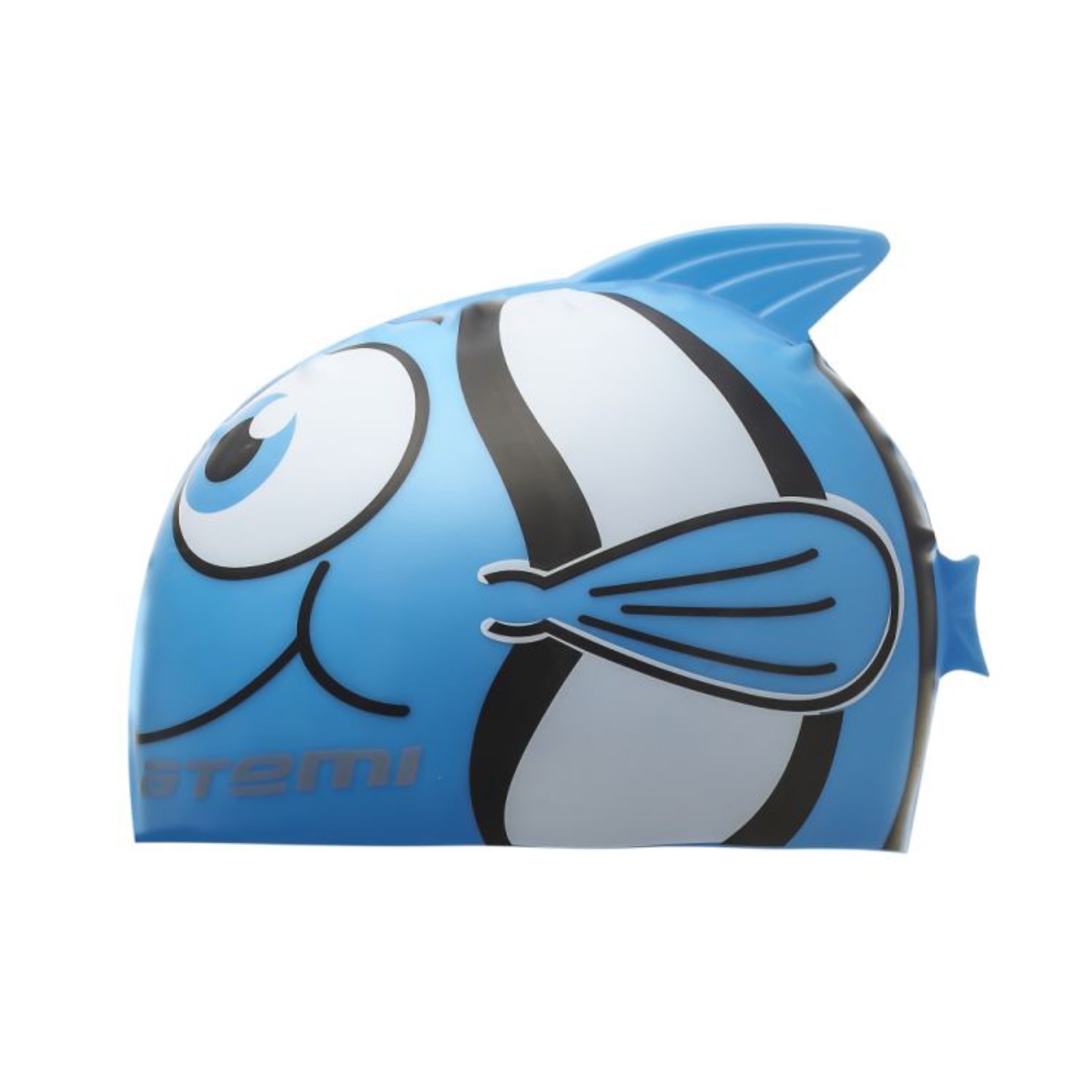 Шапочка для плавания атеми Fc105, силикон детская, рыбка, цвет голубой