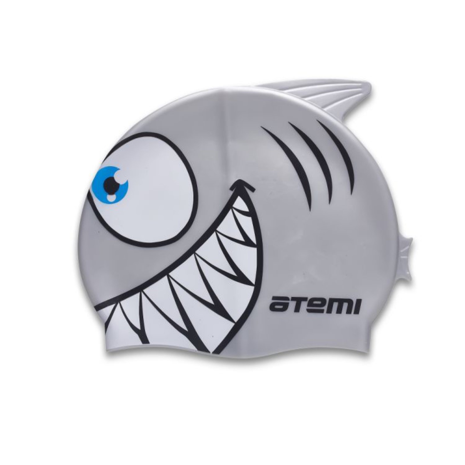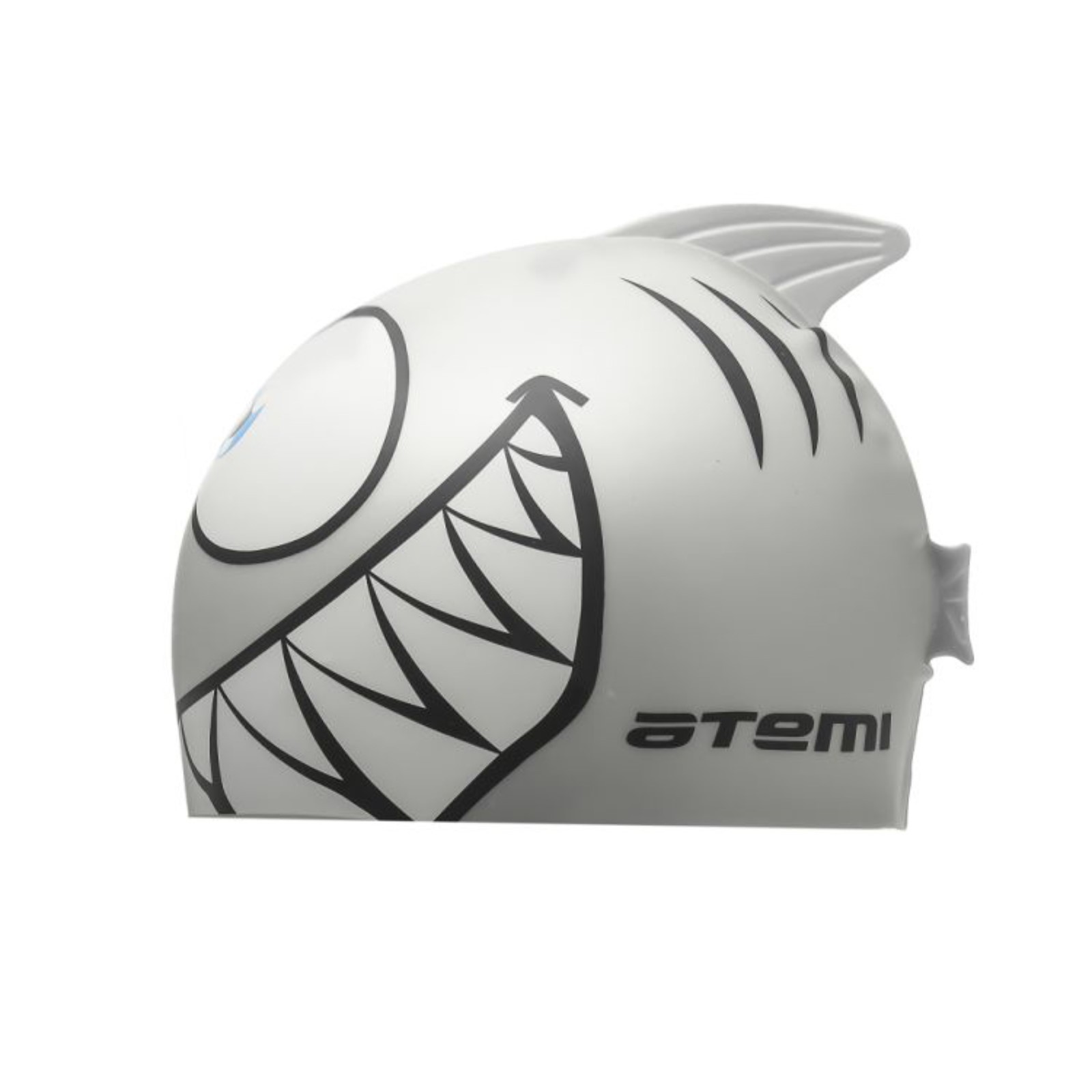 Шапочка для плавания атеми Fc203, силикон детская, рыбка, цвет серебро