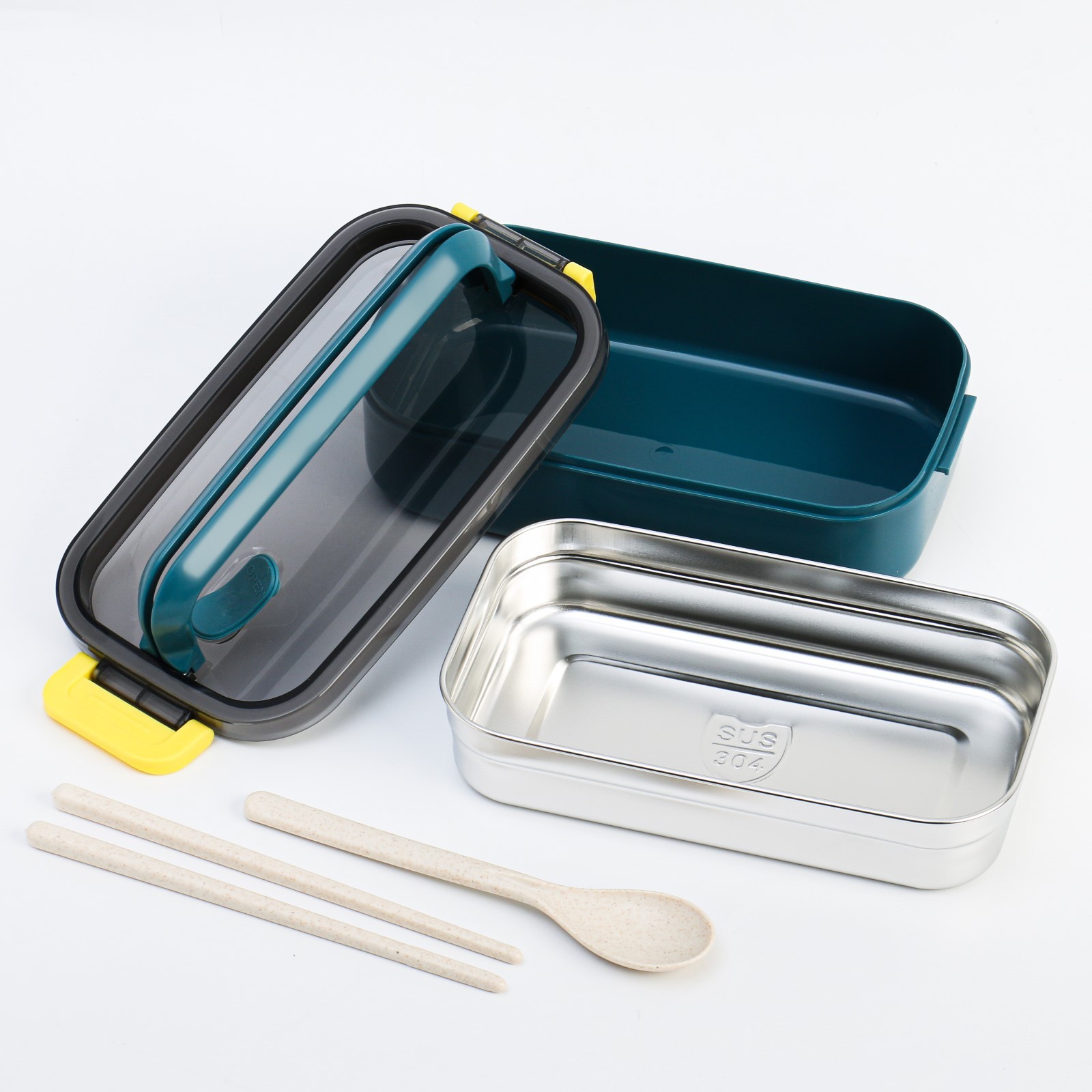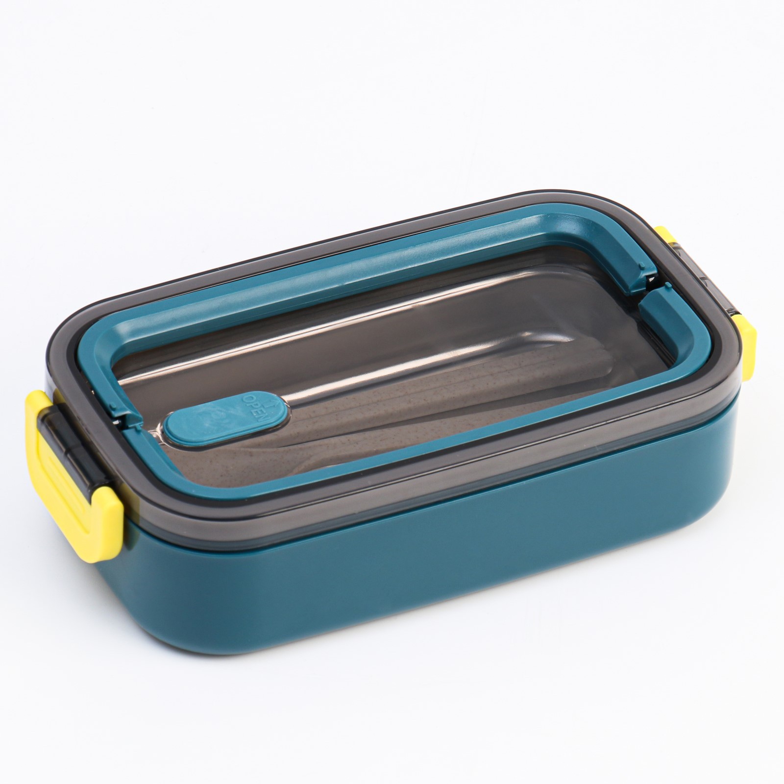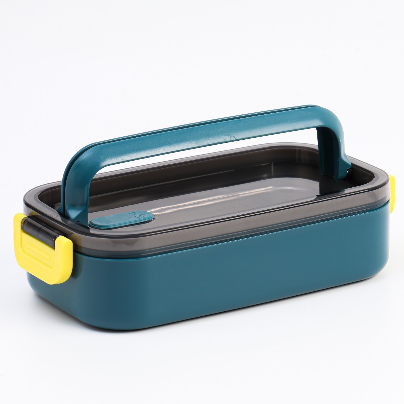 Ланч-бокс, 700 мл, бирюзовый. Особенности Изделие изготовлено из пластика. В наборе имеется ложка и палочки. Подходит для использования в микроволновой печи. Цвет: Бирюзовый Форма: Прямоугольная Объём, мл: 700 Материал: Пластик Материал: Нержавеющая сталь Герметичная крышка: Да Можно использовать в СВЧ-печи: Нет Форма: Прямоугольник  развернуть описание ▼
