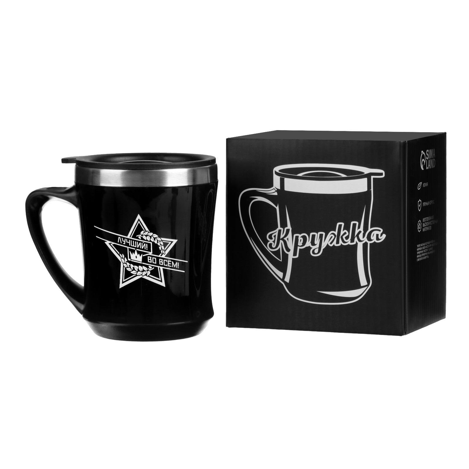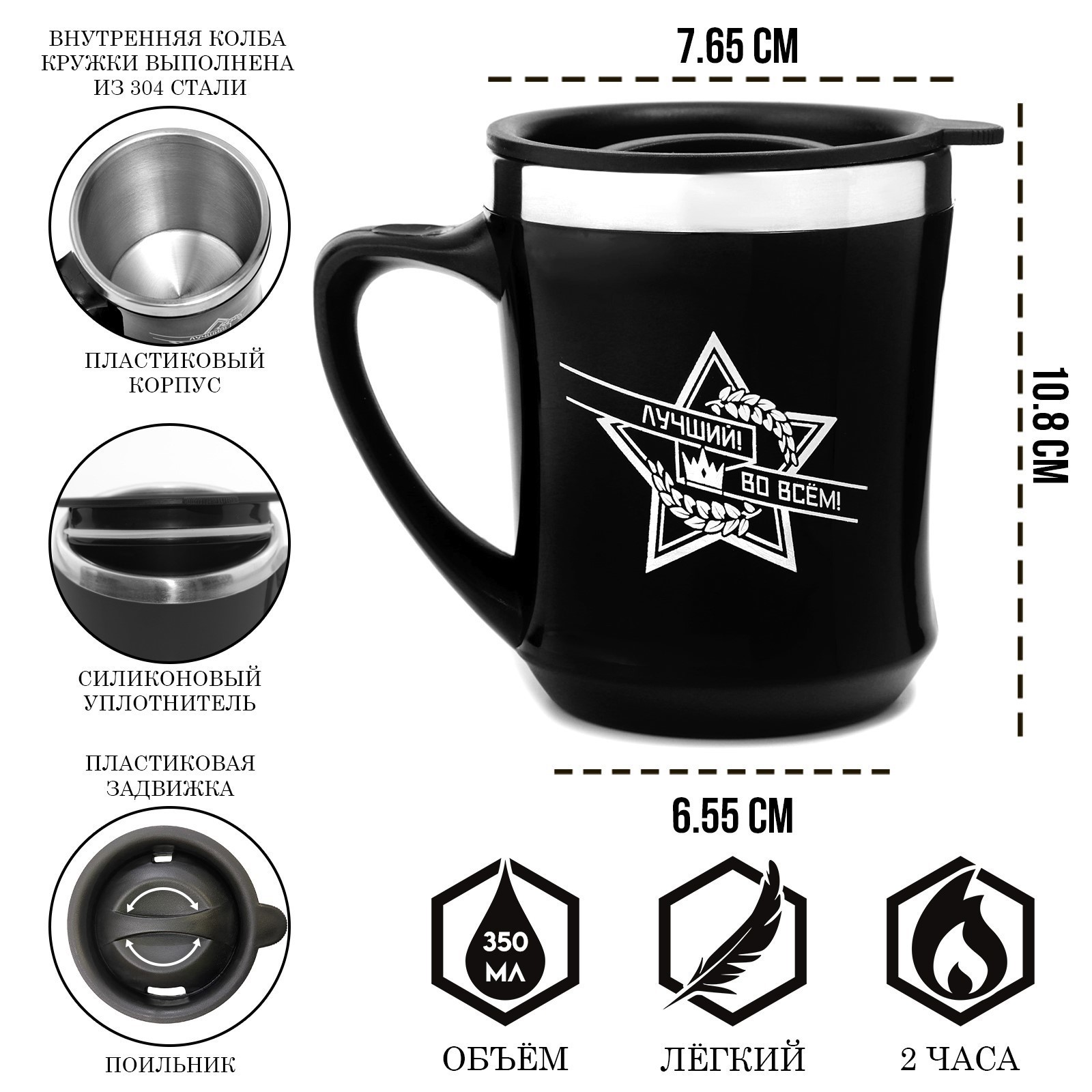 Термокружка, 350 мл, Lifestyle "лучший во всём!", сохраняет тепло 2 ч, чёрная