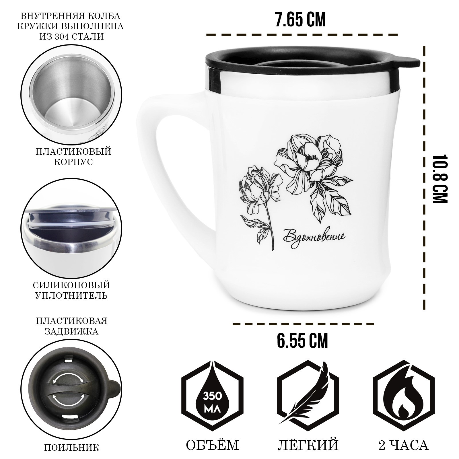 Термокружка, 350 мл, Lifestyle "вдохновение", сохраняет тепло 3 ч, белая