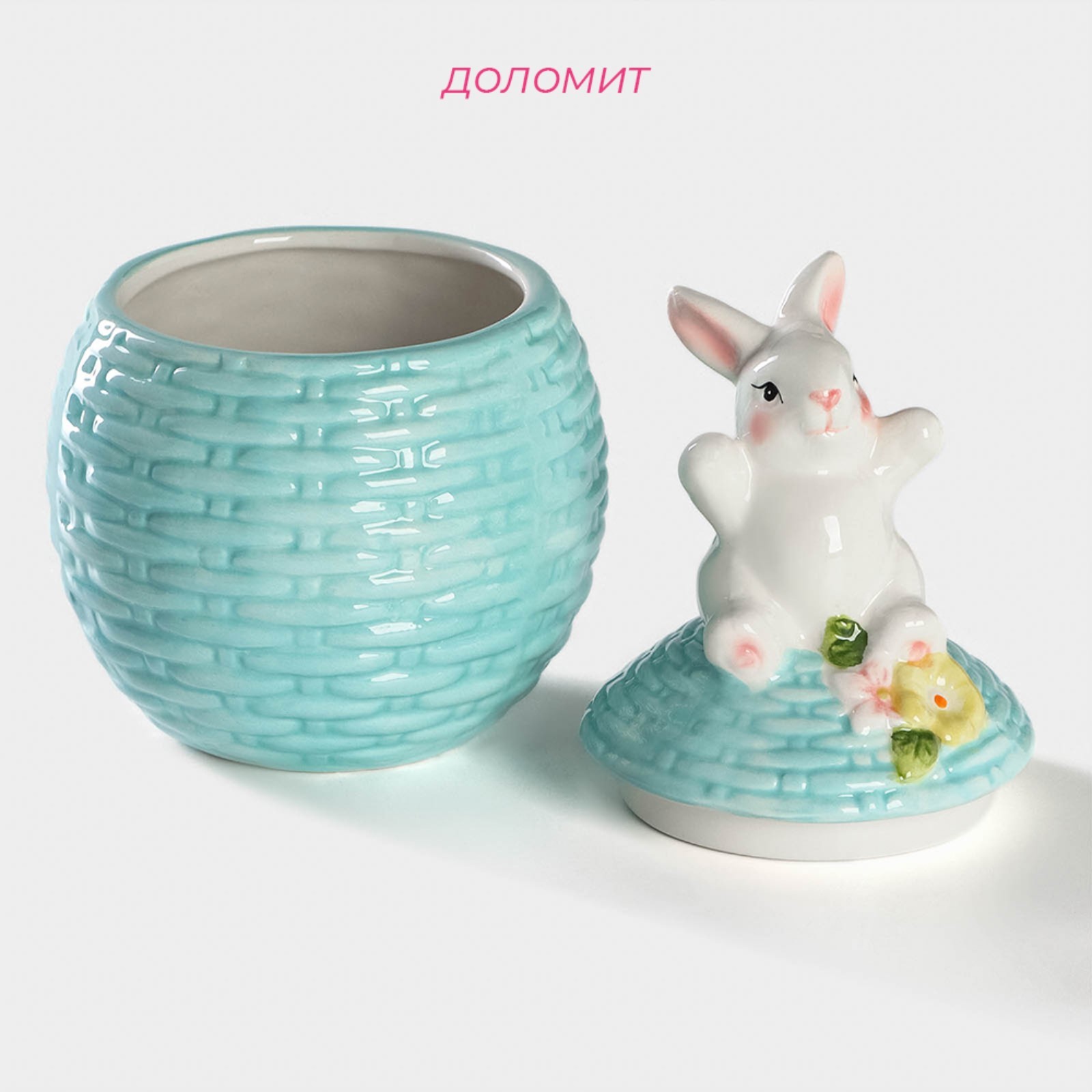 Сахарница доляна «зайка», 650 мл, цвет голубой. Сахарница гармонично дополнит сервировку стола. Элегантное изделие отличает высокое качество обработки поверхности и насыщенность цвета. Данная посуда универсальная, подходит как для сахара, так и для мёда, конфет, изюма, орехов и многого другого. Оригинальный дизайн и качество исполнения сделают такую сахарницу настоящим украшением стола к чаепитию. Она удобна в использовании и понравится каждому. Такая сахарница сможет стать настоящим украшением кухни или приятным подарком для ваших родных и близких. Не рекомендуется мыть в посудомоечной машине и использовать в СВЧ. Цвет: Голубой Форма: Фигурная Объём, мл: 650 Материал: Керамика (Доломит) Можно мыть в посудомоечной машине: Нет Запрет реализации по сегментам: 00000000485  развернуть описание ▼