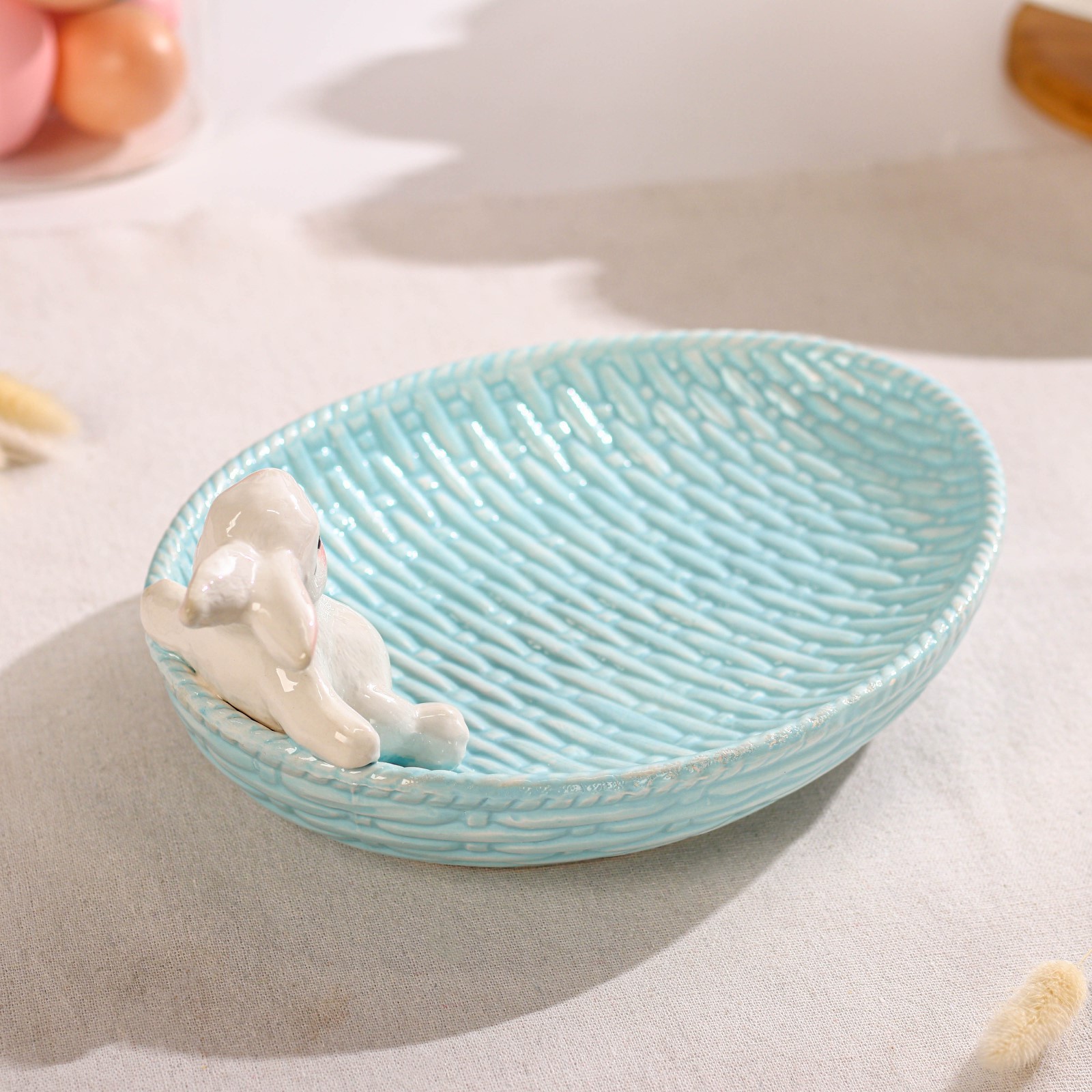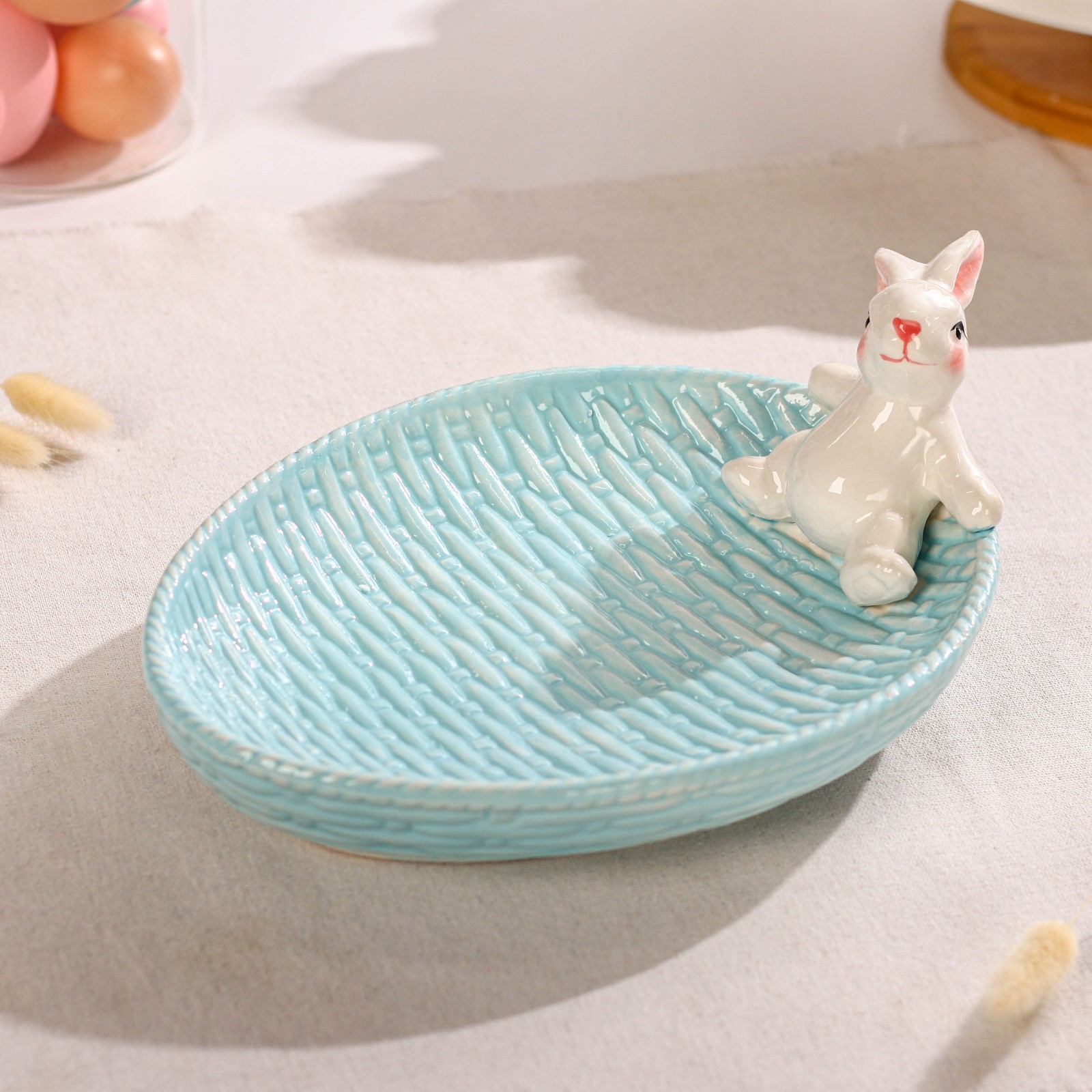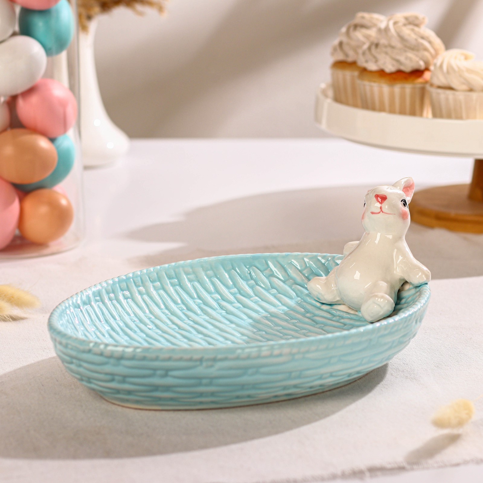 Блюдо сервировочное доляна «зайка», 26x19,5x10,5 см, цвет голубой