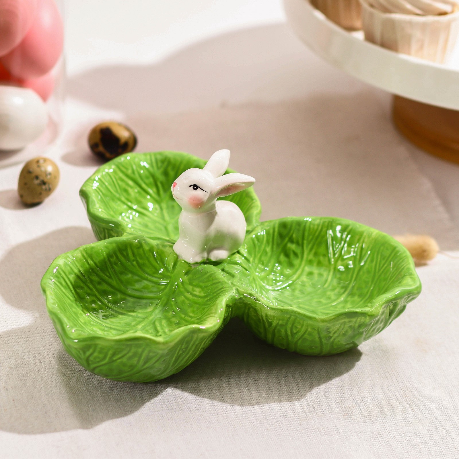 Менажница 3 ячейки доляна «зайка в капусте», 22,5x20,5x10 см, цвет зелёный
