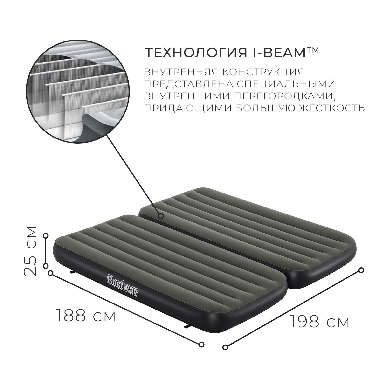 Матрас надувной airbed twin/king, 188 х 99 х 25 см, 67922. Длина, см: 188 Ширина, см: 99 Высота, см: 25 Количество мест: 2 Максимально допустимый вес, кг: 150 : 0 Насос в комплекте: Нет  развернуть описание ▼