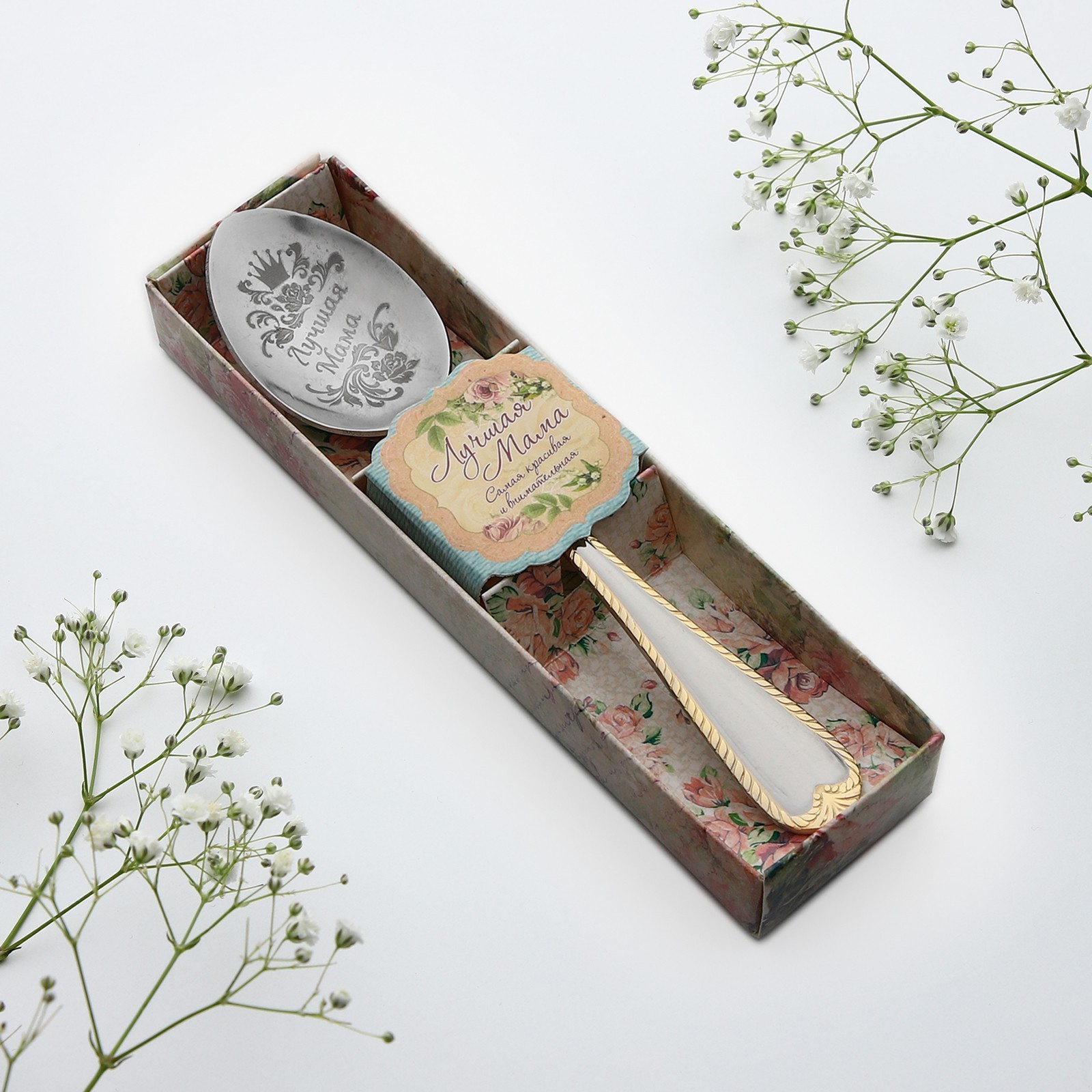 Ложка чайная с гравировкой «лучшая мама», в подарочной коробке, 3 х 14 см.