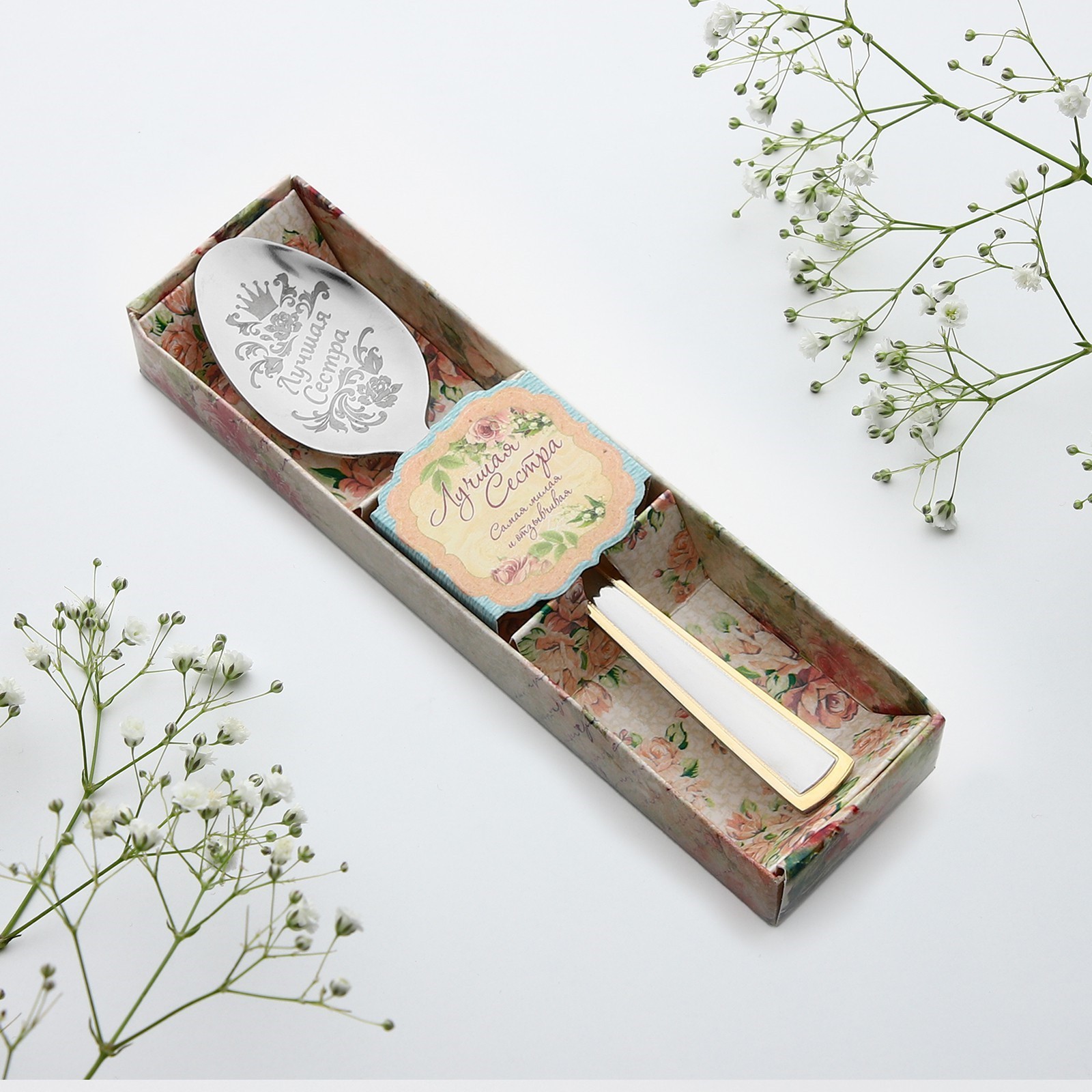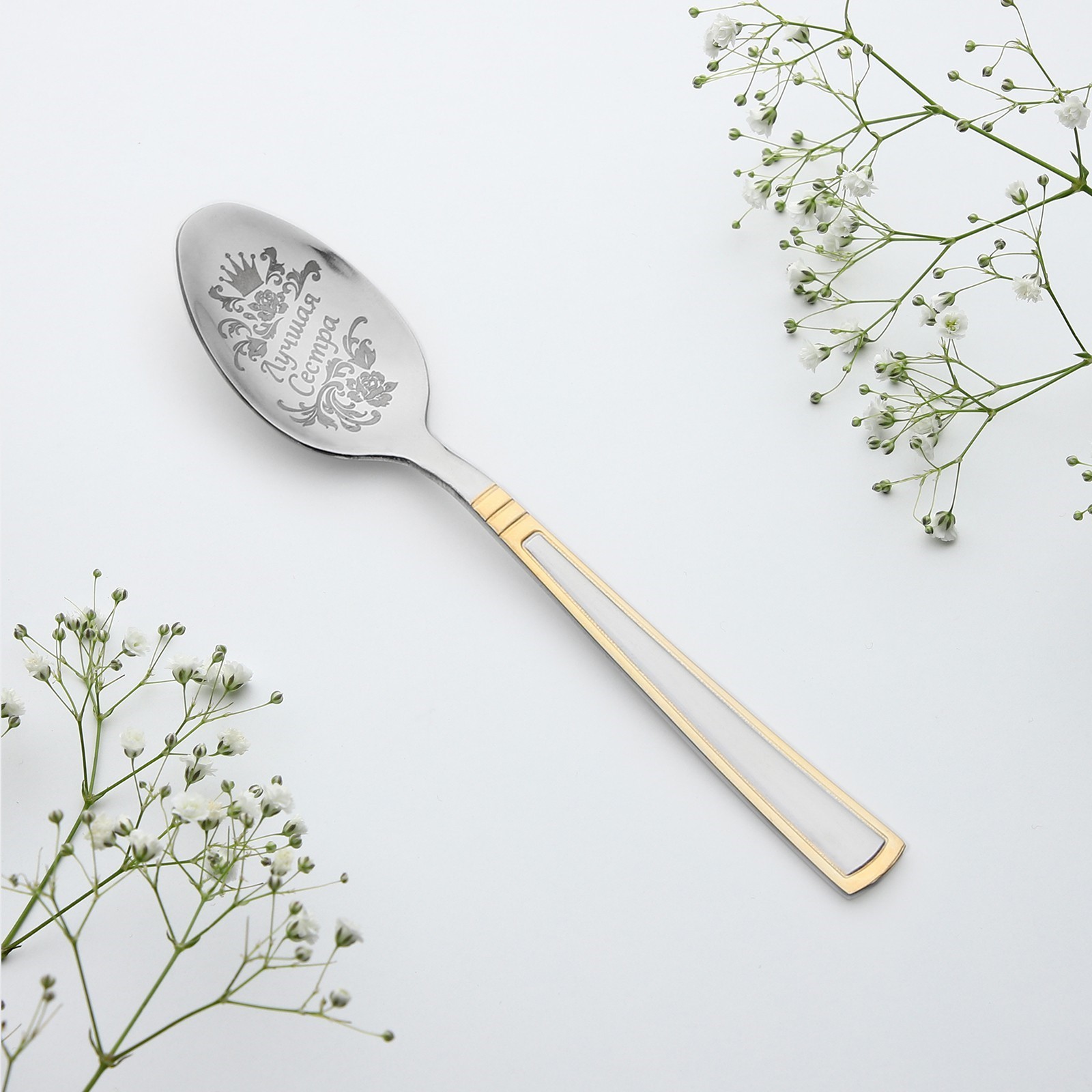 Ложка чайная с гравировкой «лучшая сестра», в подарочной коробке, 3 х 14 см.