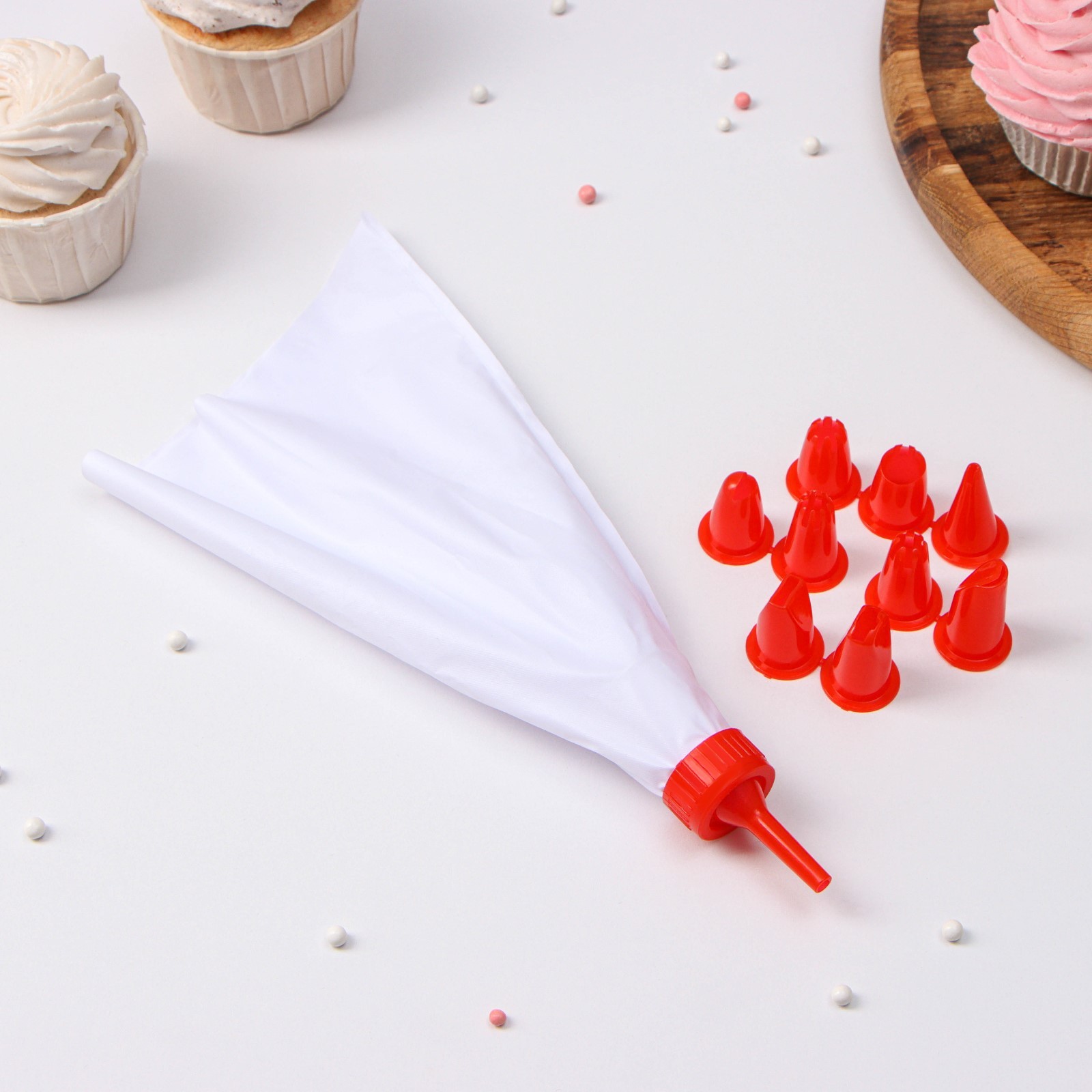 Мешок кондитерский доляна «помощник», 10 насадок, 28x19x3 см, насадки микс