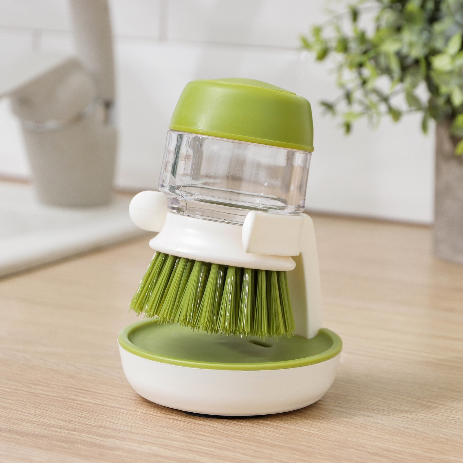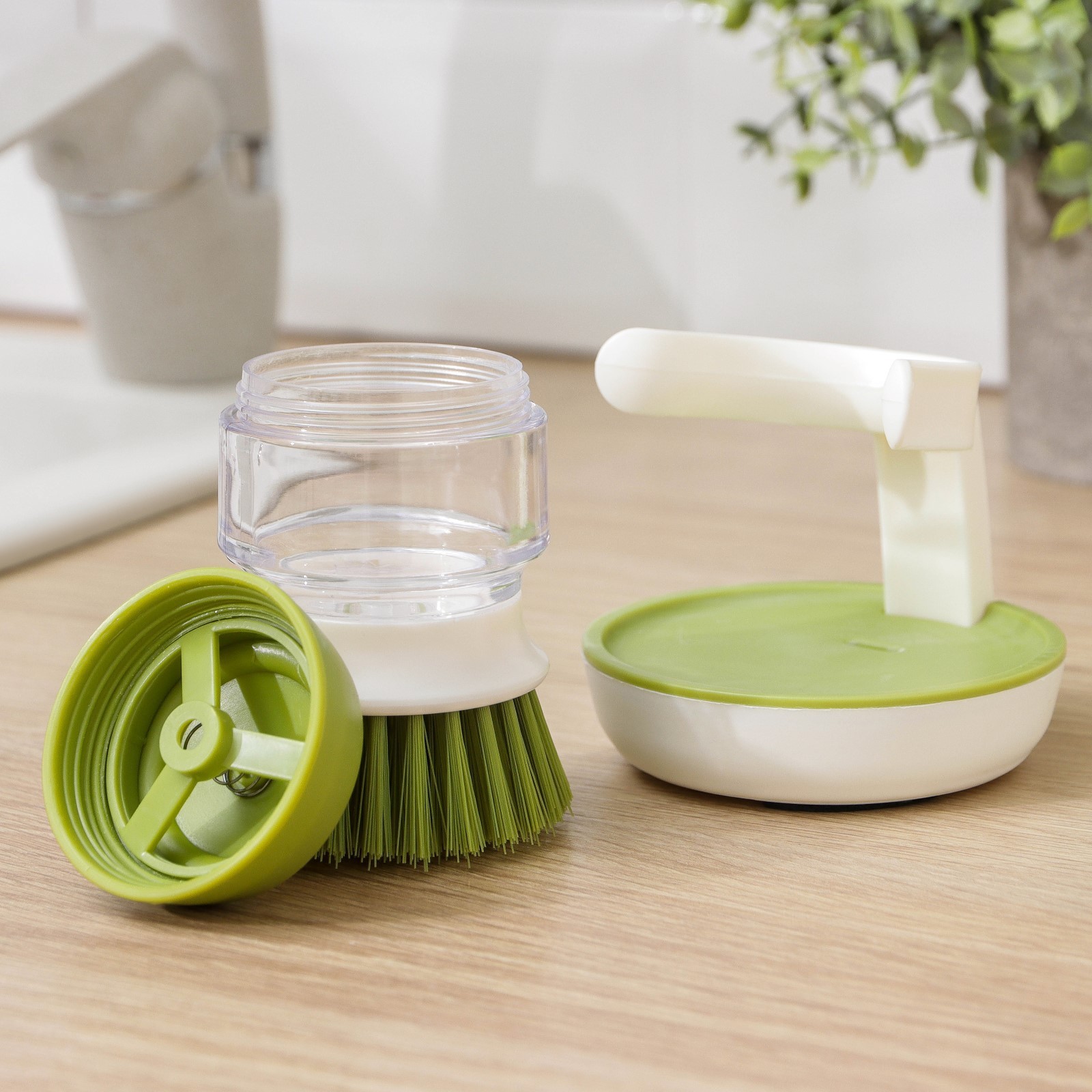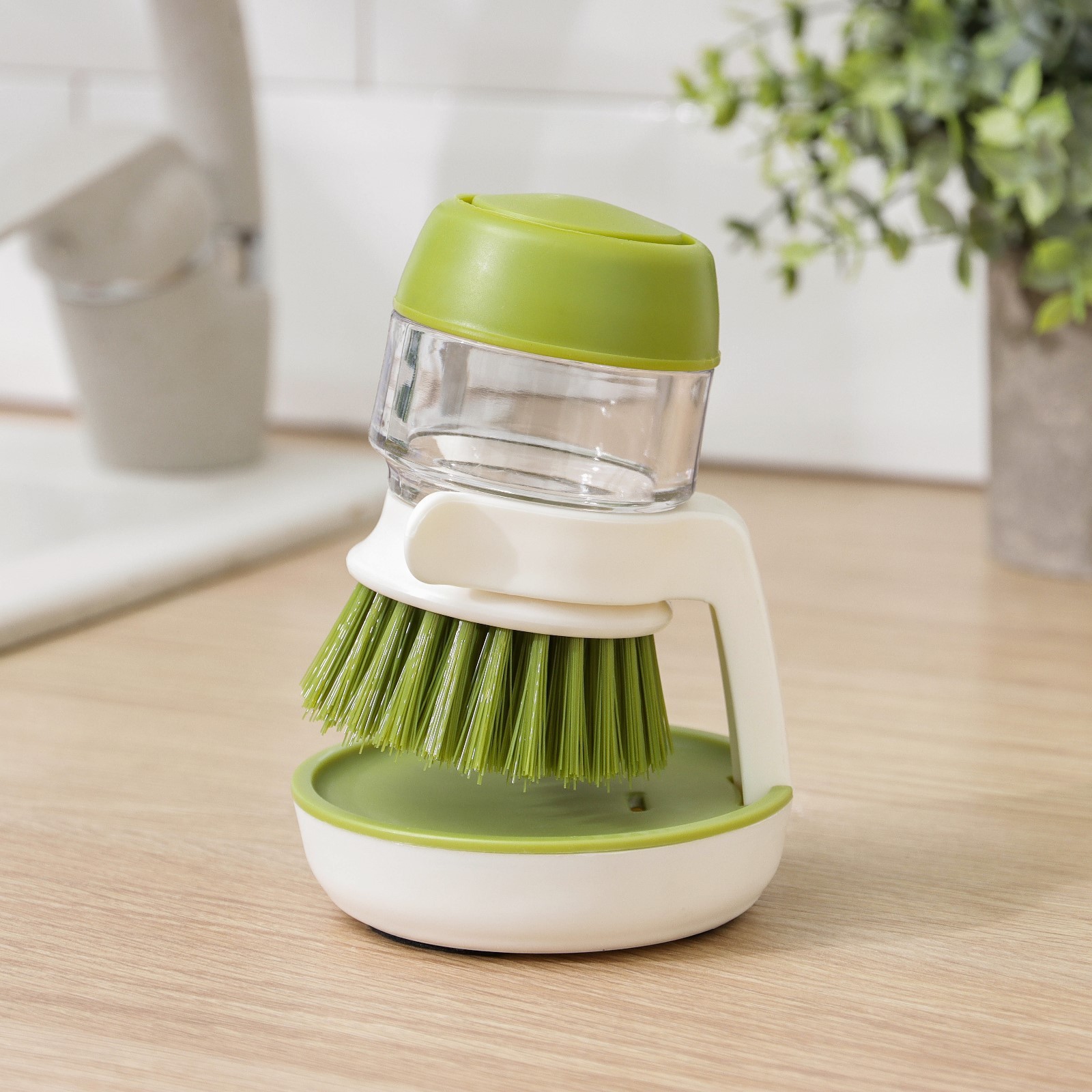 Щётка с дозатором для моющего средства и подставкой, цвет зелёный