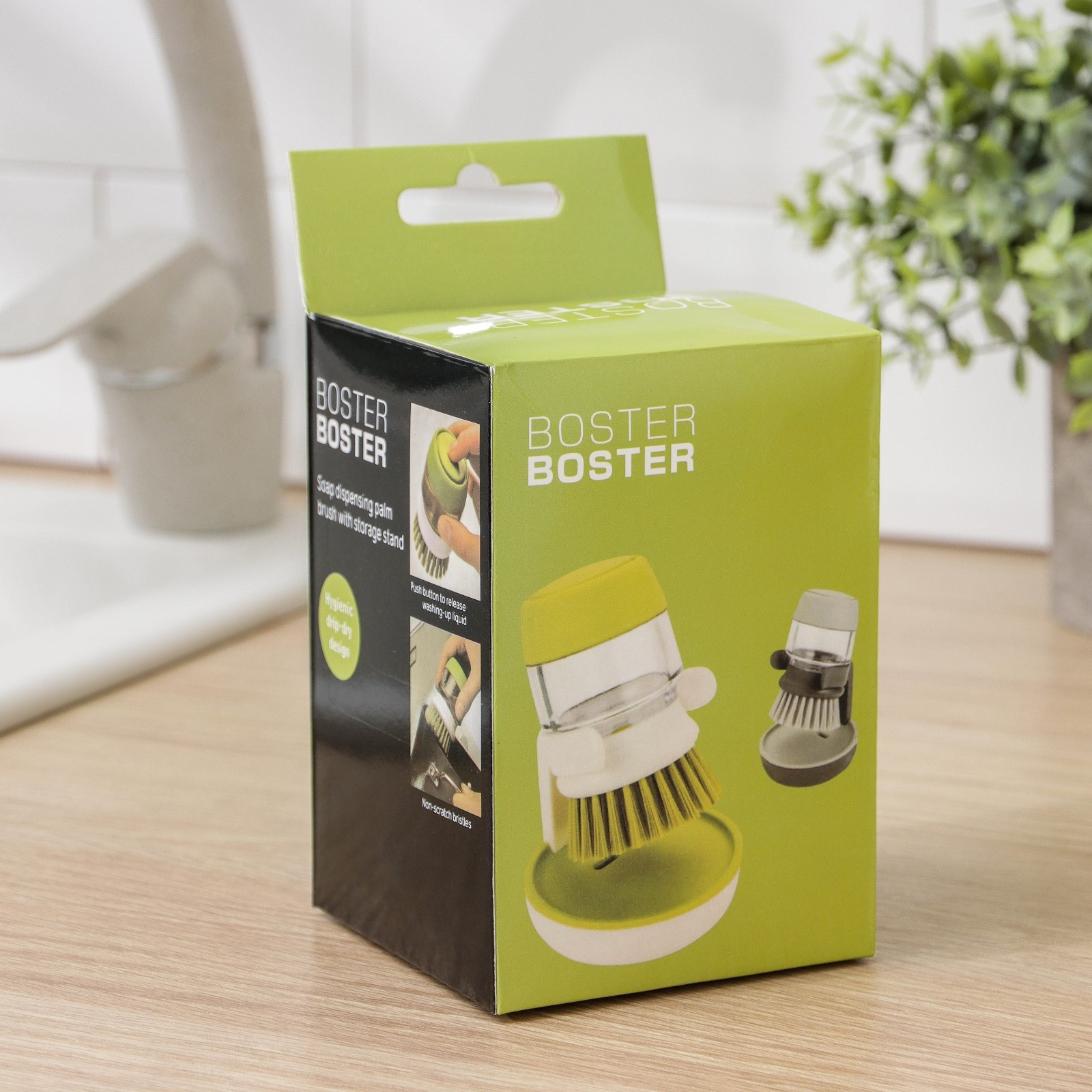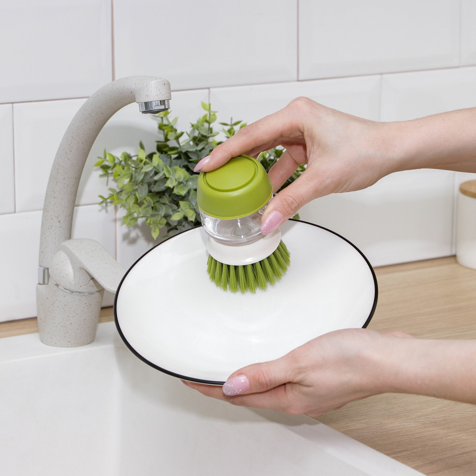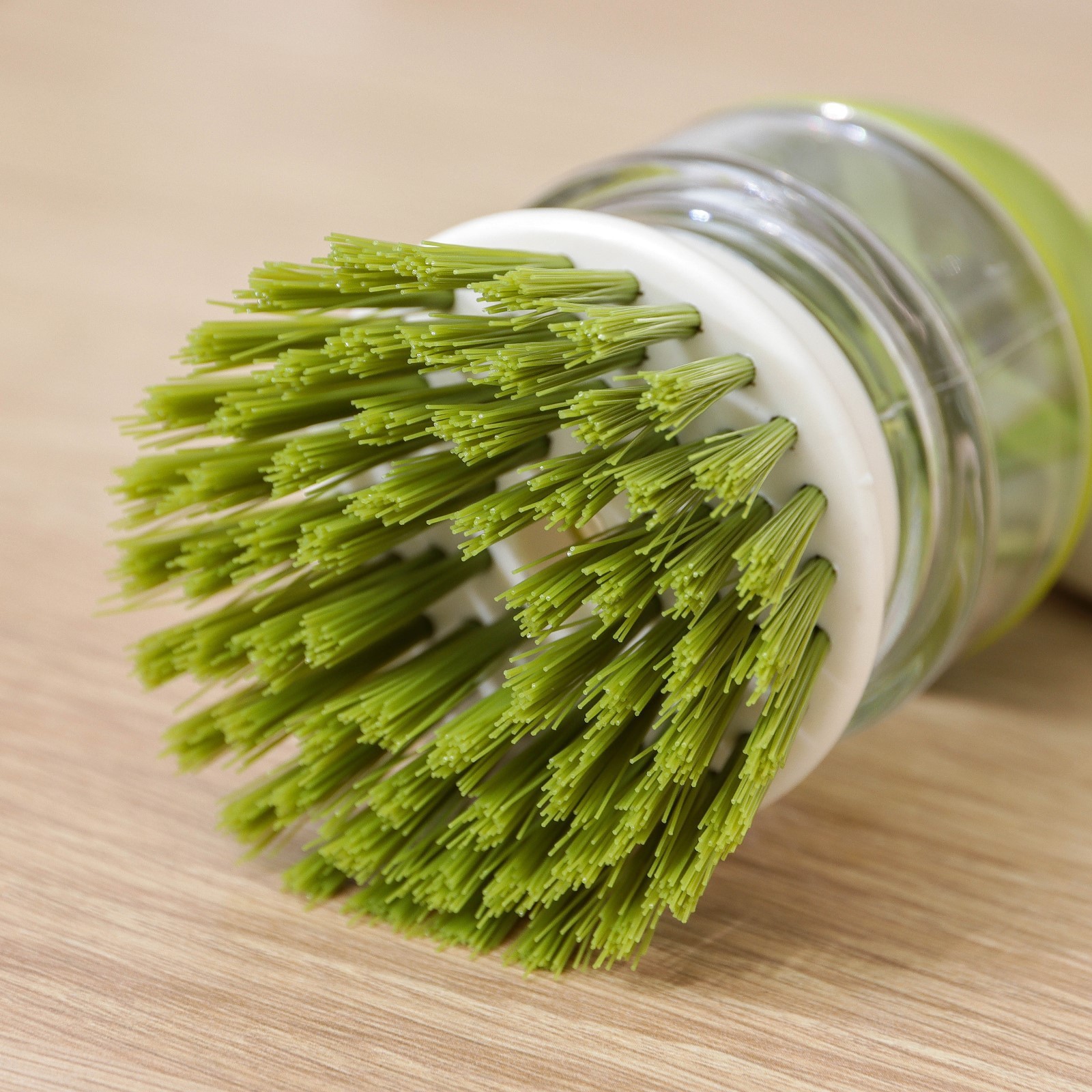 Щётка с дозатором для моющего средства и подставкой, цвет зелёный