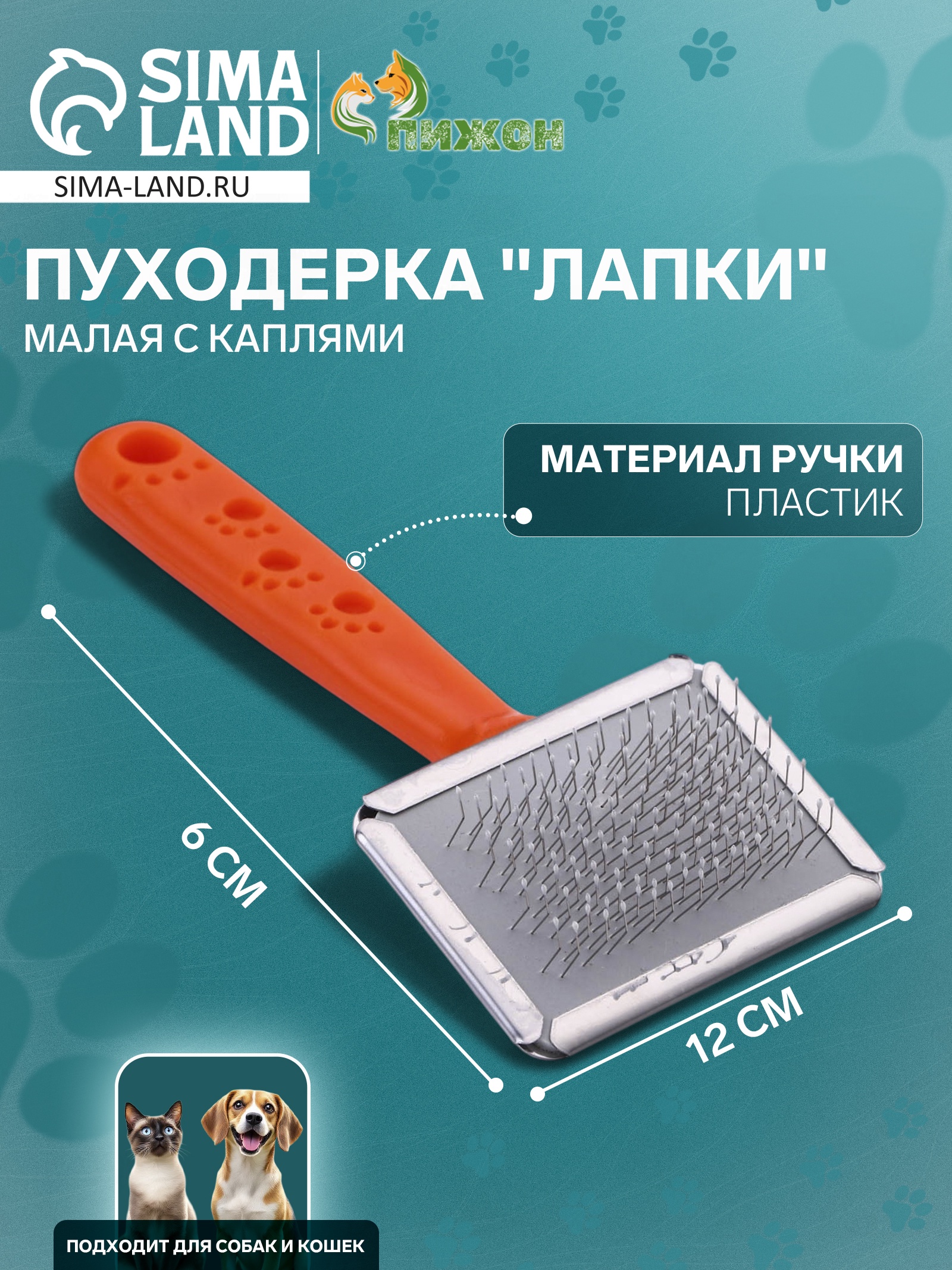 Пуходерка «лапки» малая с каплями, 6 12 см, оранжевая. Пуходерка предназначена для вычесывания собак средних и крупных пород, а также для животных с очень густой шерсть. Пуходерка качественно удаляет отмерший пух, не давай образовываться колтунам на шерсти собаки или кошки, не затрагивая и не повреждая основной волос, а также удаляет грязь и отмершие частички кожи, придавая шерсти ухоженный, блестящий вид. Выполнена из безвредных долговечных материалов. Материал: пластик, металл Материал ручки:Пластик|Вид:Пуходёрка|Материал рабочей части:Металл|Страна:Китай  развернуть описание ▼