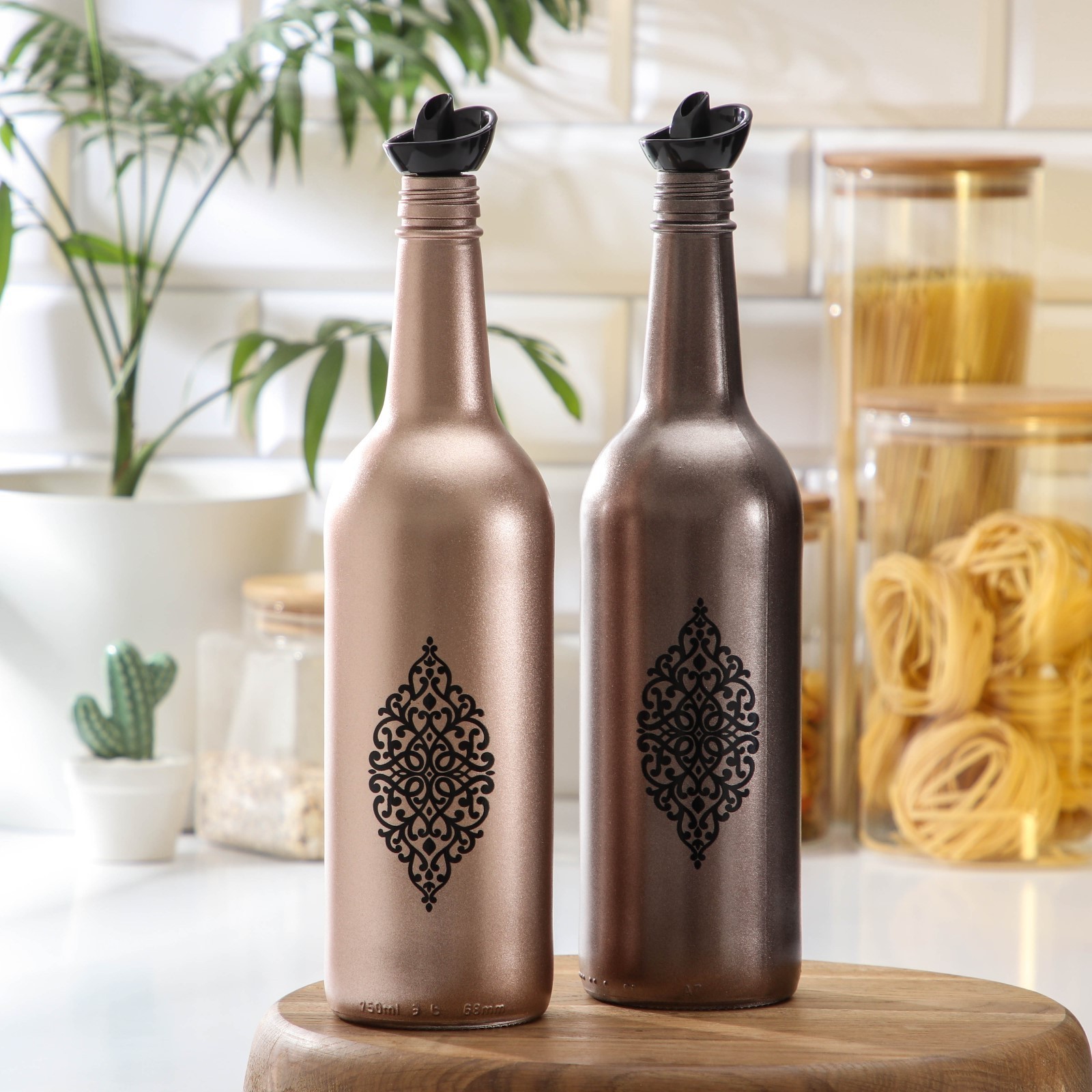 Бутыль стеклянная для соуса и масла «металлик», 700 мл, цвет микс
