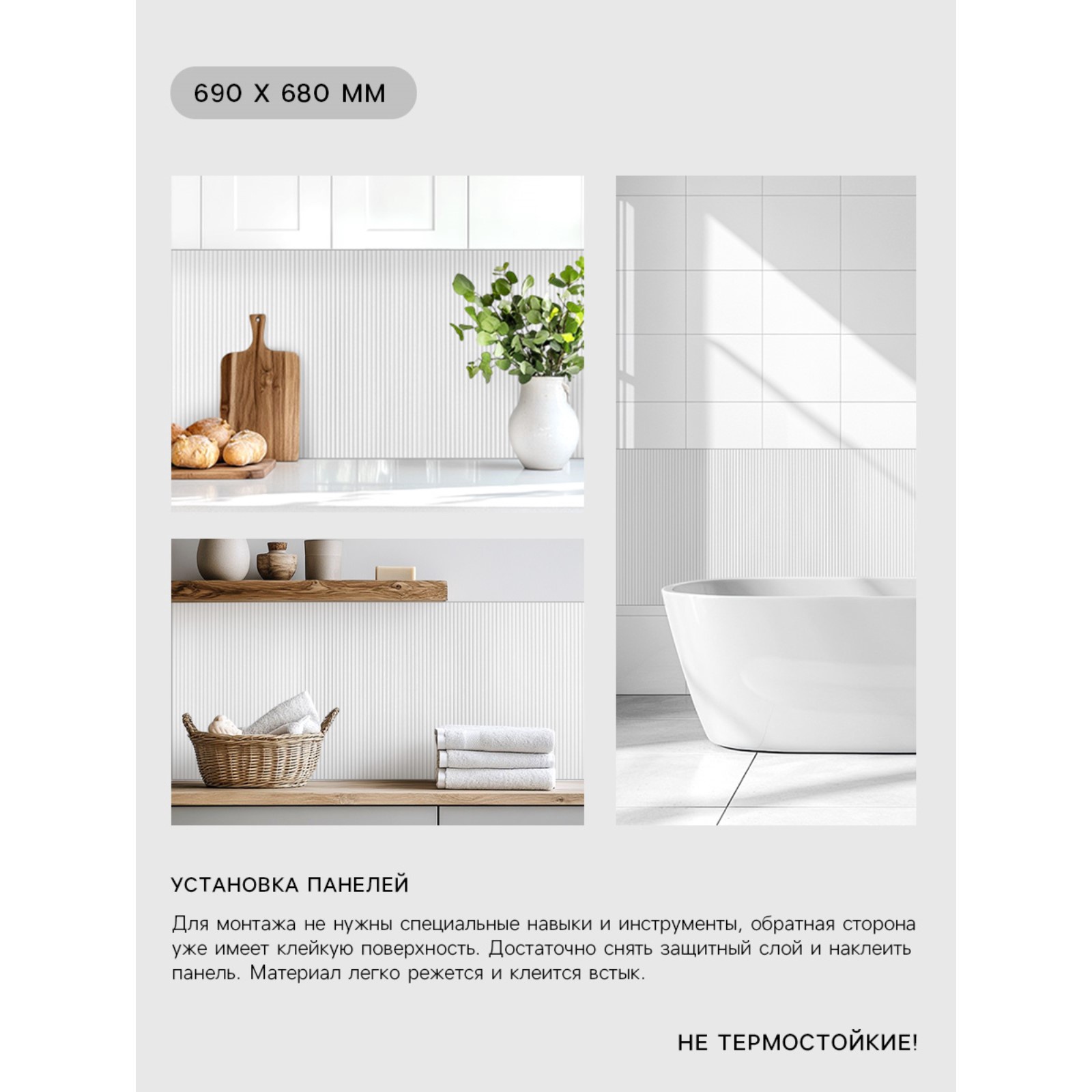 Панель пвх самоклеящаяся take it easy «полосы», 700 700 мм, цвет белый. Самоклеющиеся ПВХ - панели: решение для быстрого ремонта Представляют собой простой и удобный материал для быстрой отделки помещений. Используют для обновления интерьера квартир, офисов и коммерческих объектов. Данный облицовочный материал позволяет быстро преобразить пространство, создать уют и освежить отделку стен. Преимущества самоклеющихся панелей Простота установки: монтаж панелей не требует специальных инструментов и опыта, так как одна сторона покрыта клеевым слоем.Влагостойкость: панели устойчивы к воздействию влаги, их можно успешно применять в кухнях и ванных комнатах.Легкий уход: поверхность панелей легко очищается мягкой губкой с нейтральными моющими средствами.Экономия времени: благодаря простоте наклеивания монтаж занимает минимум времени, позволяя быстро завершить ремонтные работы.ПрименениеРекомендации по установке и эксплуатации Не применяйте панели в местах с прямым контактом воды, таких как пол или зона готовки на кухне.Перед укладкой очистите стену от пыли и грязи, обработав спиртосодержащим раствором для удаления жирных пятен.Используйте дополнительный клей для ПВХ для усиления фиксации, особенно на сложных поверхностях.Избегайте чрезмерного натяжения при наклейке, иначе возможны деформации.Цвет:Белый|Длина, см:70|Ширина, см:70|Тематика:Полоски, полоса|Одноцветный:Да|Подходит для ванной комнаты:Да|Страна:Китай  развернуть описание ▼
