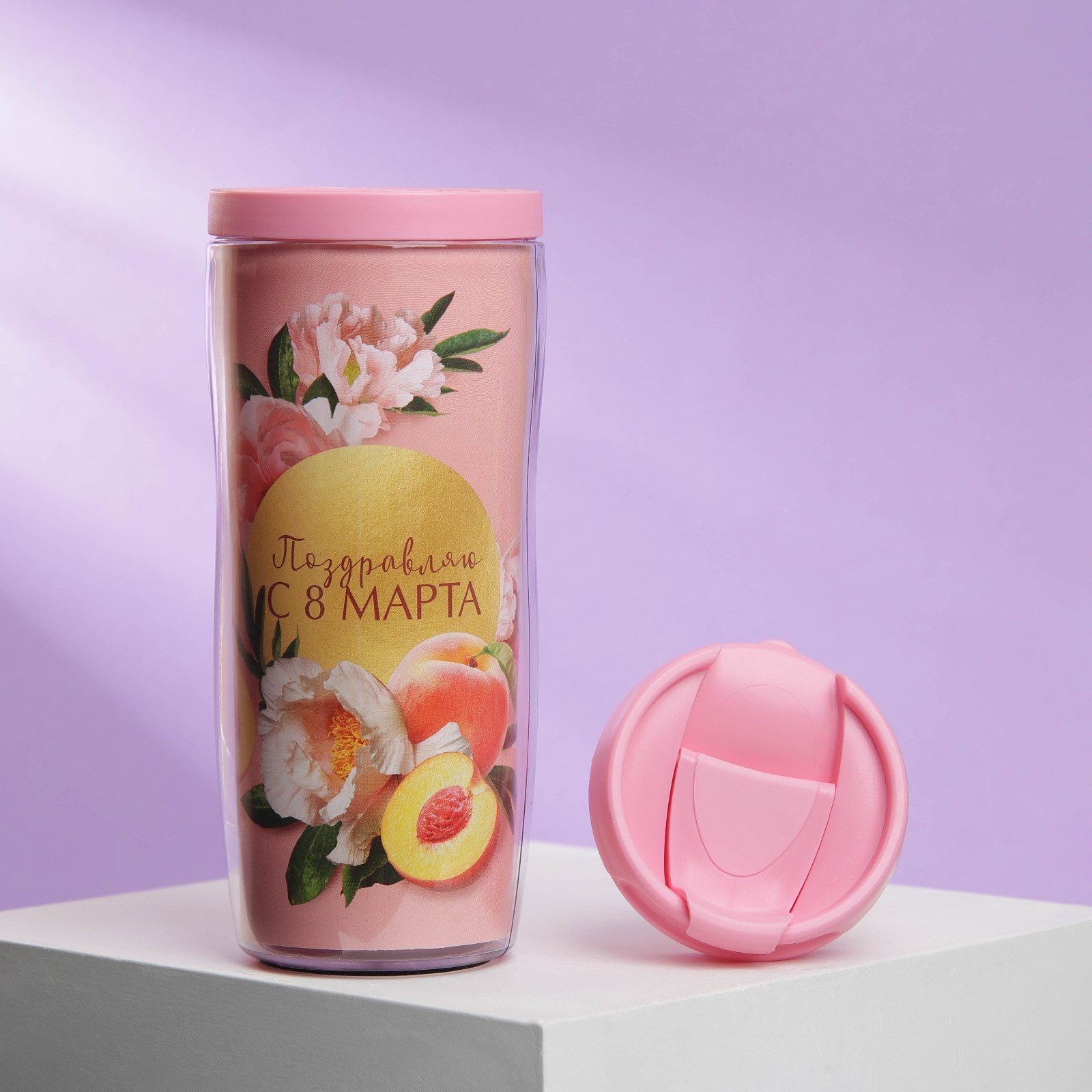 Термостакан со вставкой «персиковое 8 марта», 350 мл