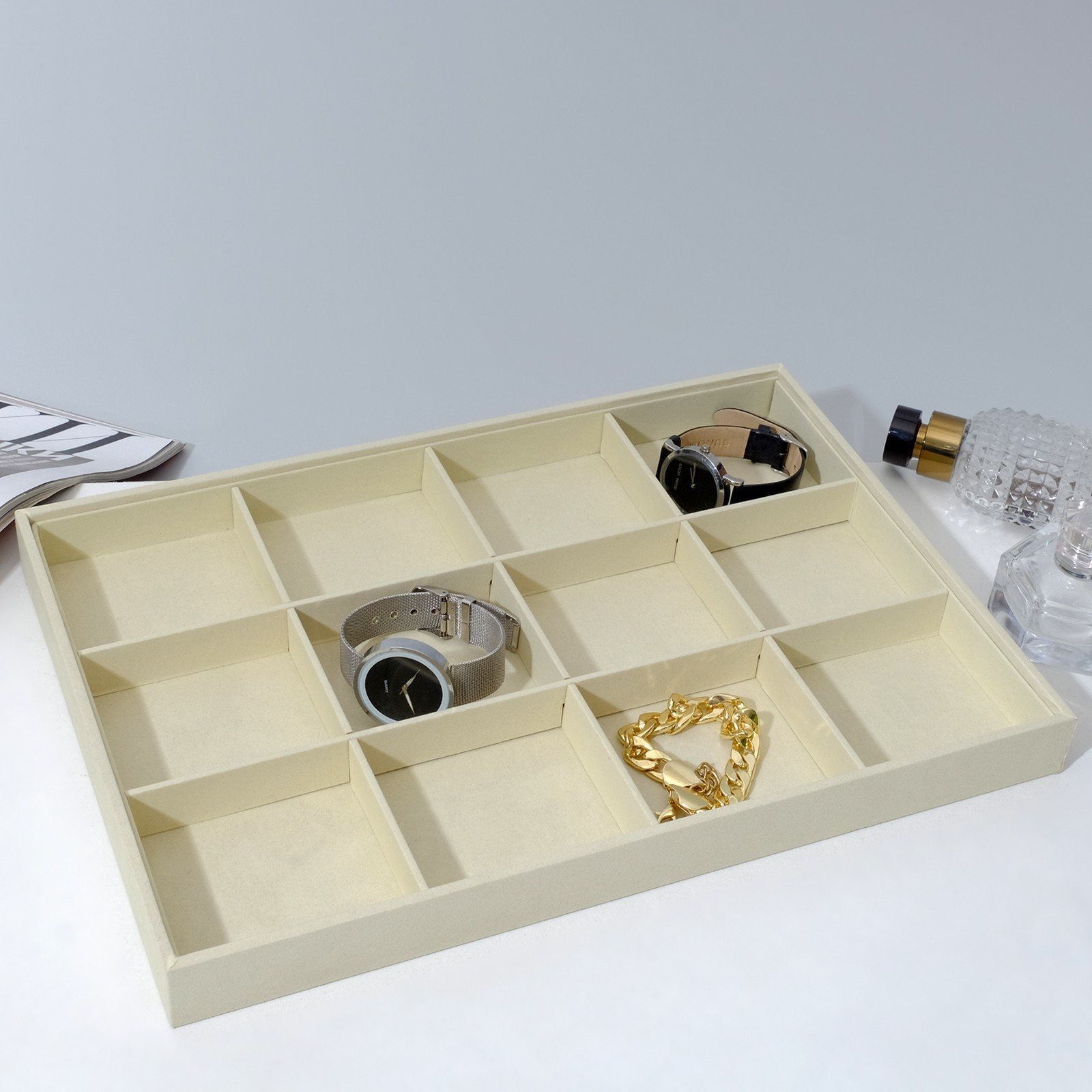 Подставка для украшений 12 ячеек, флок, 35x24x3, цвет бежевый