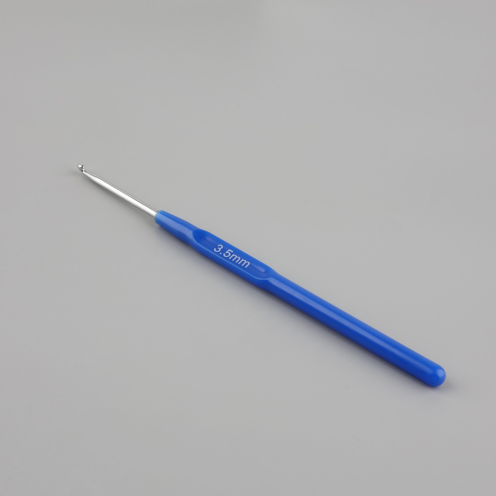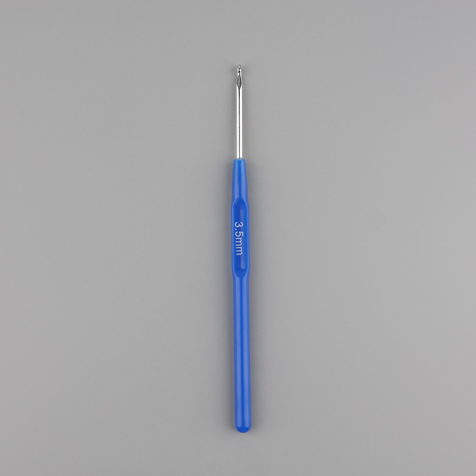 Крючок для вязания, с пластиковой ручкой, D = 3,5 мм, 13,5 см, цвет синий, цена за 1 штуку