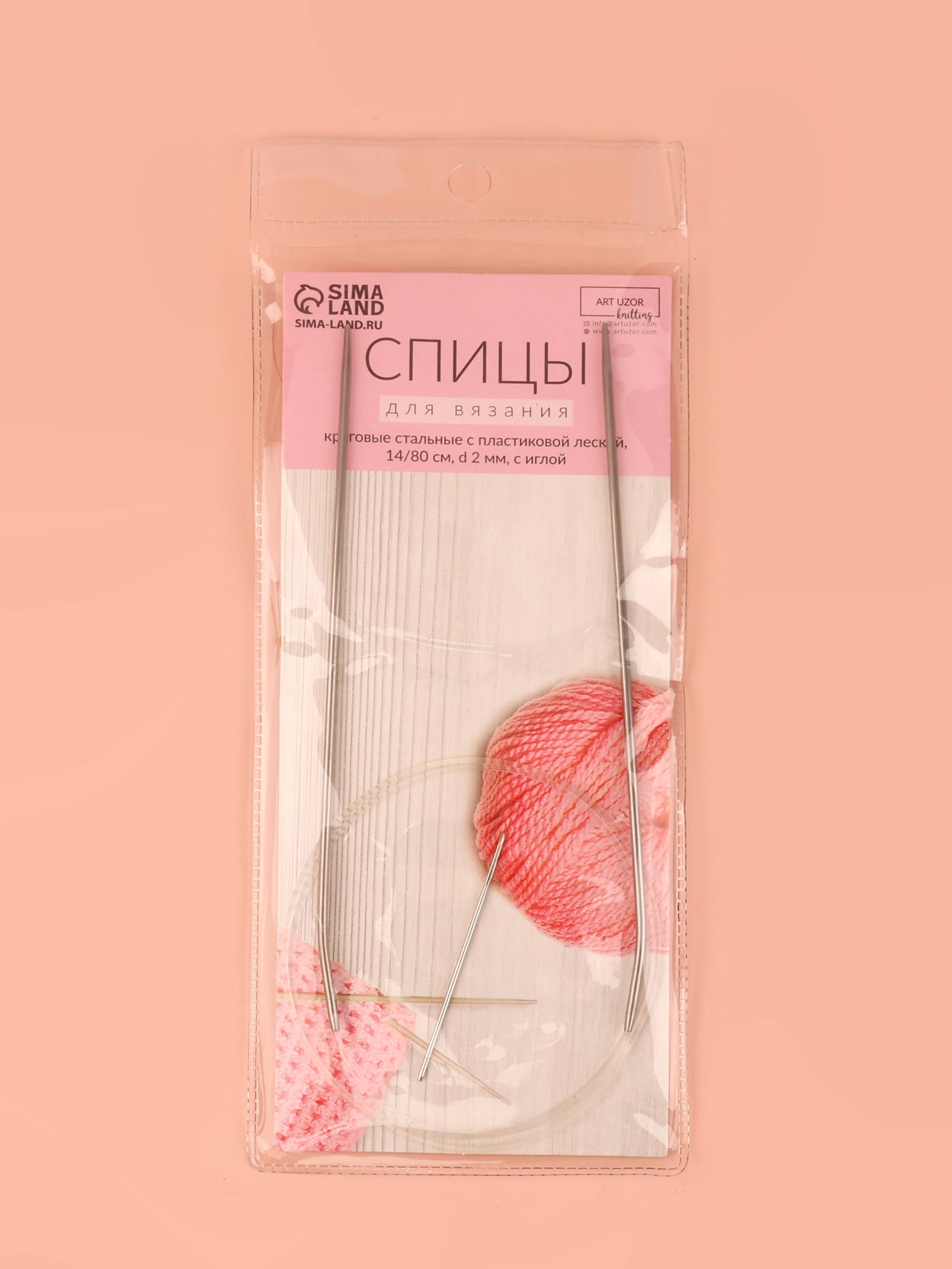 Спицы круговые, для вязания, с пластиковой леской, D=2 мм, 14/80 см, с иглой