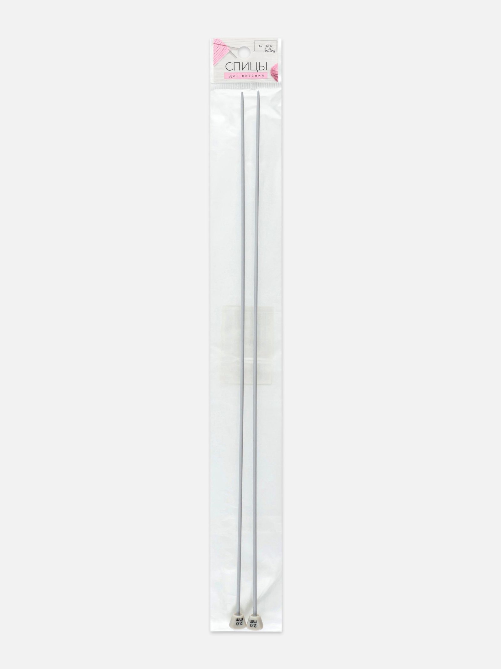 Спицы для вязания, прямые, с тефлоновым покрытием, D=2 мм, 35 см, 2 шт.