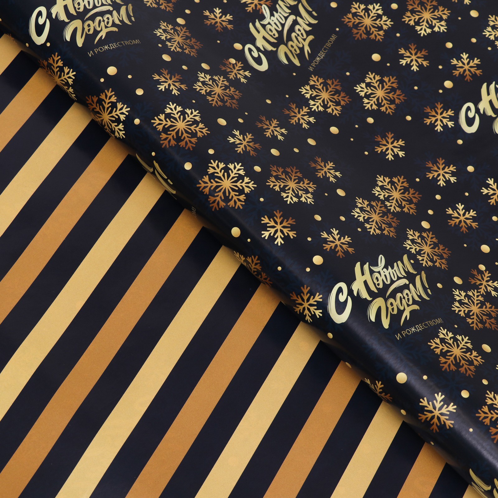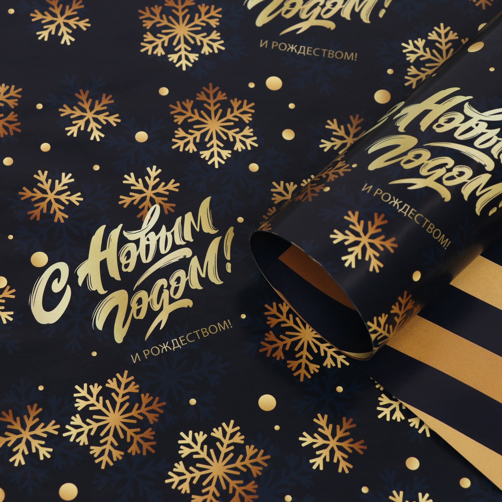 Бумага упаковочная глянцевая «с новым годом», двусторонняя, 70 100 см. Новогодняя упаковочная бумага - это отличный способ добавить праздничного настроения любому подарку. Она выполнена в ярких цветах с новогодними мотивами, такими как снежинки, елочные игрушки и Дед Мороз. Эта бумага не только красивая, но и экологически чистая, так как изготовлена из перерабатываемых материалов. Вы можете использовать её для упаковки любых подарков - от маленьких сувениров до больших игрушек. Новогодняя упаковочная бумага поможет вам создать атмосферу праздника и порадовать ваших близких. Размер, м:0.7 х 1|Цвет:Золотистый|Цвет:Чёрный|Плотность, г/м :80|Тематика:Новогодняя|Символ года:Нет|Тематика праздника:Новый год|Материал:Бумага|Вид:В листах|Тип листа:Двусторонний|Страна:Россия  развернуть описание ▼