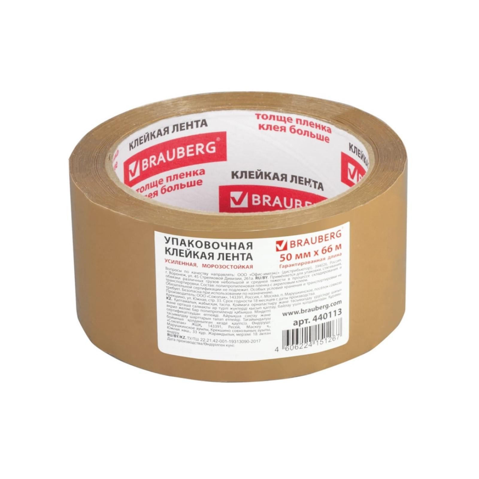 Лента клейкая Brauberg 440113, коричневая, морозостойкая, 50 мкм, 50 мм х 66 м