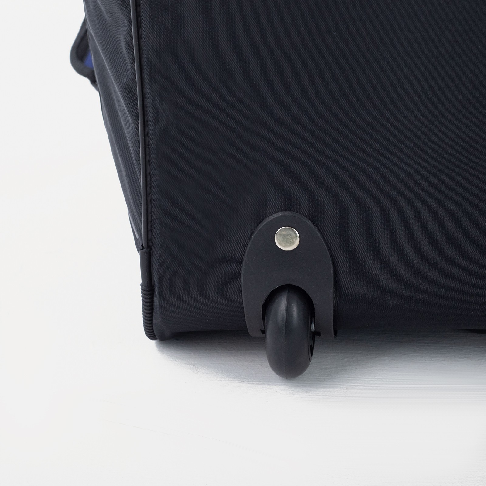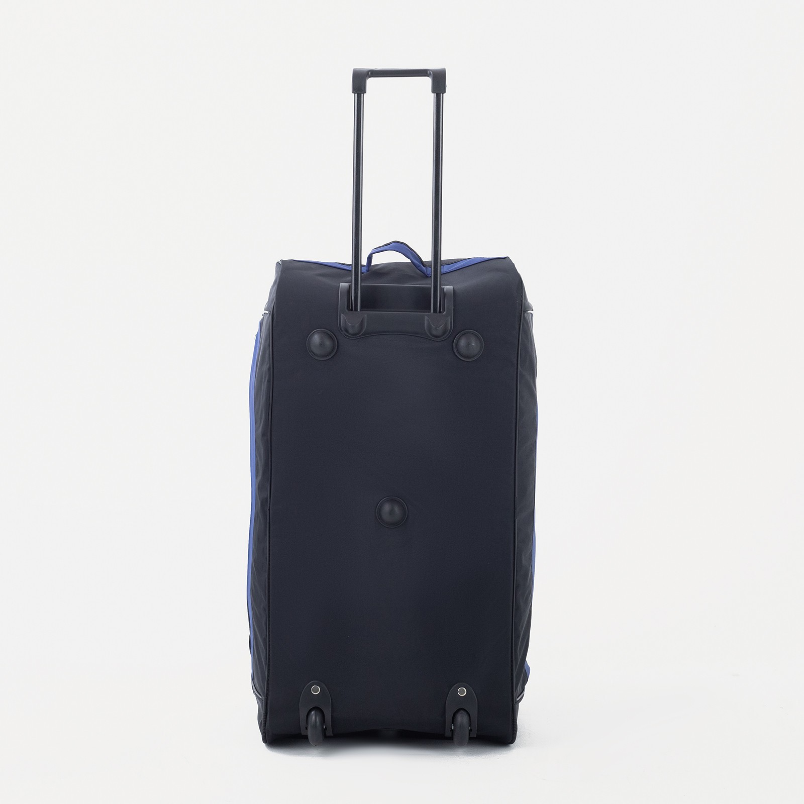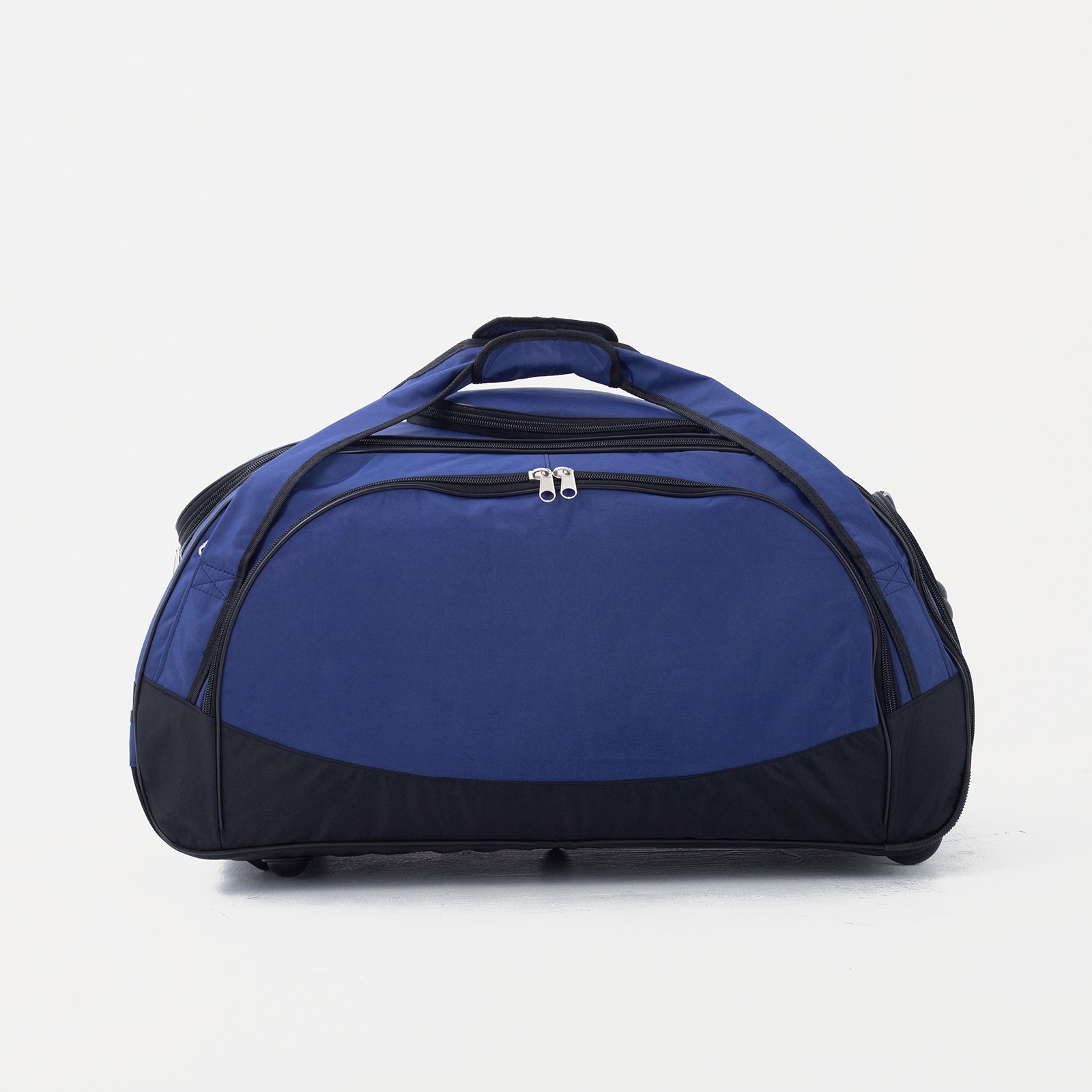 Сумка дорожная на колёсах, отдел на молнии, отдел для обуви, 3 наружных кармана, длинный ремень, цвет чёрный/синий. Познакомьтесь с идеальным спутником для ваших путешествий — дорожной сумкой на колёсах от ЗФТС. Этот аксессуар сочетает в себе стиль, функциональность и удобство, делая каждое ваше путешествие ещё приятнее. Изготовленная из прочного и лёгкого полиэстера, сумка выполнена в элегантном чёрно-синем цвете, что придаёт ей современный вид и делает её подходящей для любого стиля одежды. Она оснащена множеством удобных элементов, чтобы ваше путешествие было максимально комфортным. Удобные колёса и длинный ремень: Сумка легко передвигается благодаря встроенным колёсам и оснащена регулируемым ремнём, позволяя носить её как в руках, так и на плече. Организация пространства: Внутренний отсек с молнией обеспечивает безопасное хранение ваших вещей, а специальное отделение для обуви поможет сохранить порядок в сумке. Дополнительные карманы: Три наружных кармана позволяют удобно разместить мелкие предметы и аксессуары, к которым вам нужен быстрый доступ. Прочный материал: Полиэстер не только выглядит стильно, но и выдерживает нагрузки, обеспечивая надёжность и долговечность сумки. Эта дорожная сумка станет незаменимым аксессуаром для любого путешественника. С ней вы сможете легко и удобно упаковать все свои вещи, сохраняя их в полном порядке и доступности. Наслаждайтесь каждым путешествием, зная, что ваша сумка надёжно справится с любыми вызовами! Цвет: Синий Длина, см: 80 Ширина, см: 40 Высота, см: 80 Количество колёс: 2 На колёсиках: Да Материал: Текстиль Дополнительный объём: Без увеличения Материал колёс: Пластик Особенности: Колёса  развернуть описание ▼