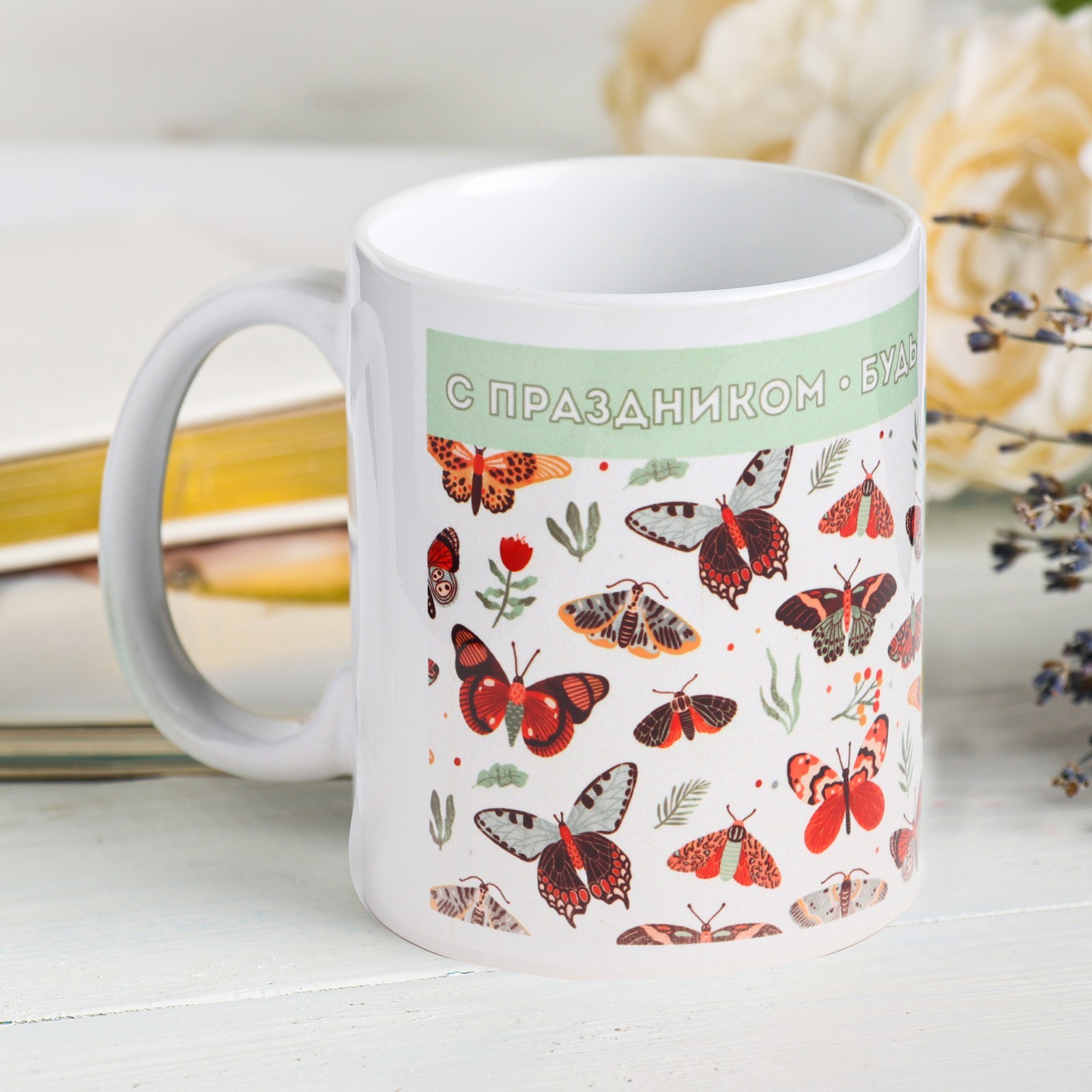 Кружка сублимация "с праздником, будь счастлива" 320 мл, с нанесением