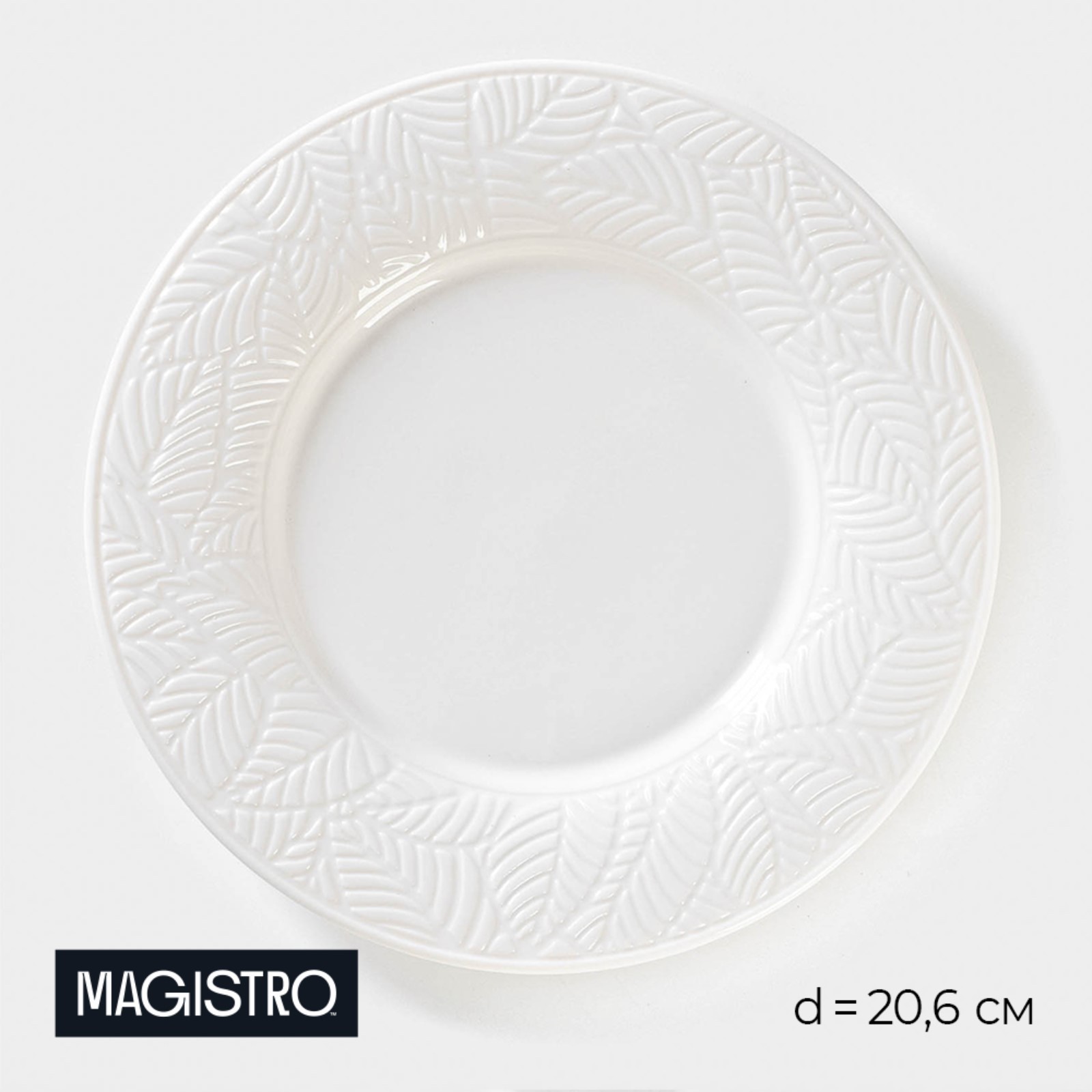 Тарелка фарфоровая обеденная Magistro сrotone, D= 20,6 см, цвет белый