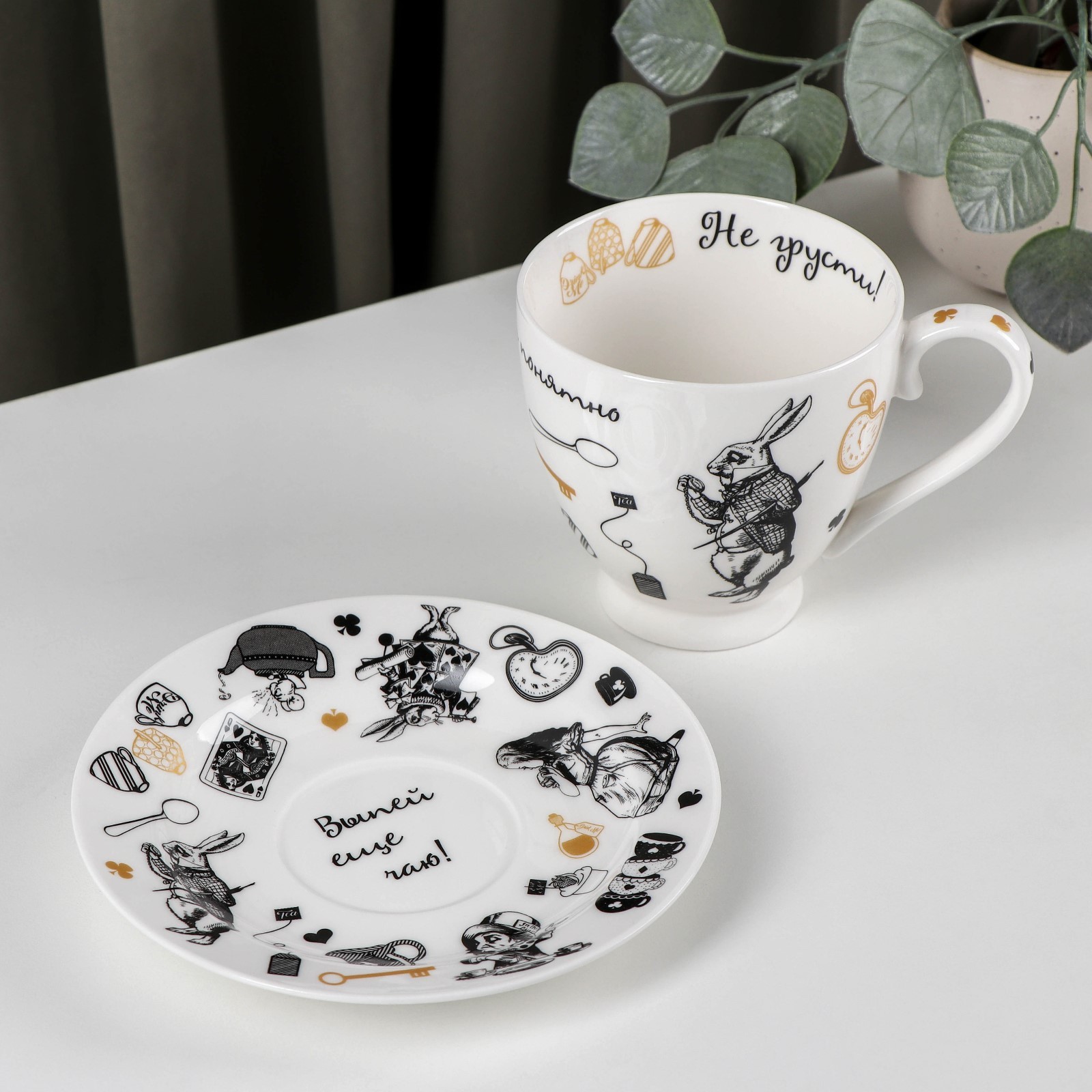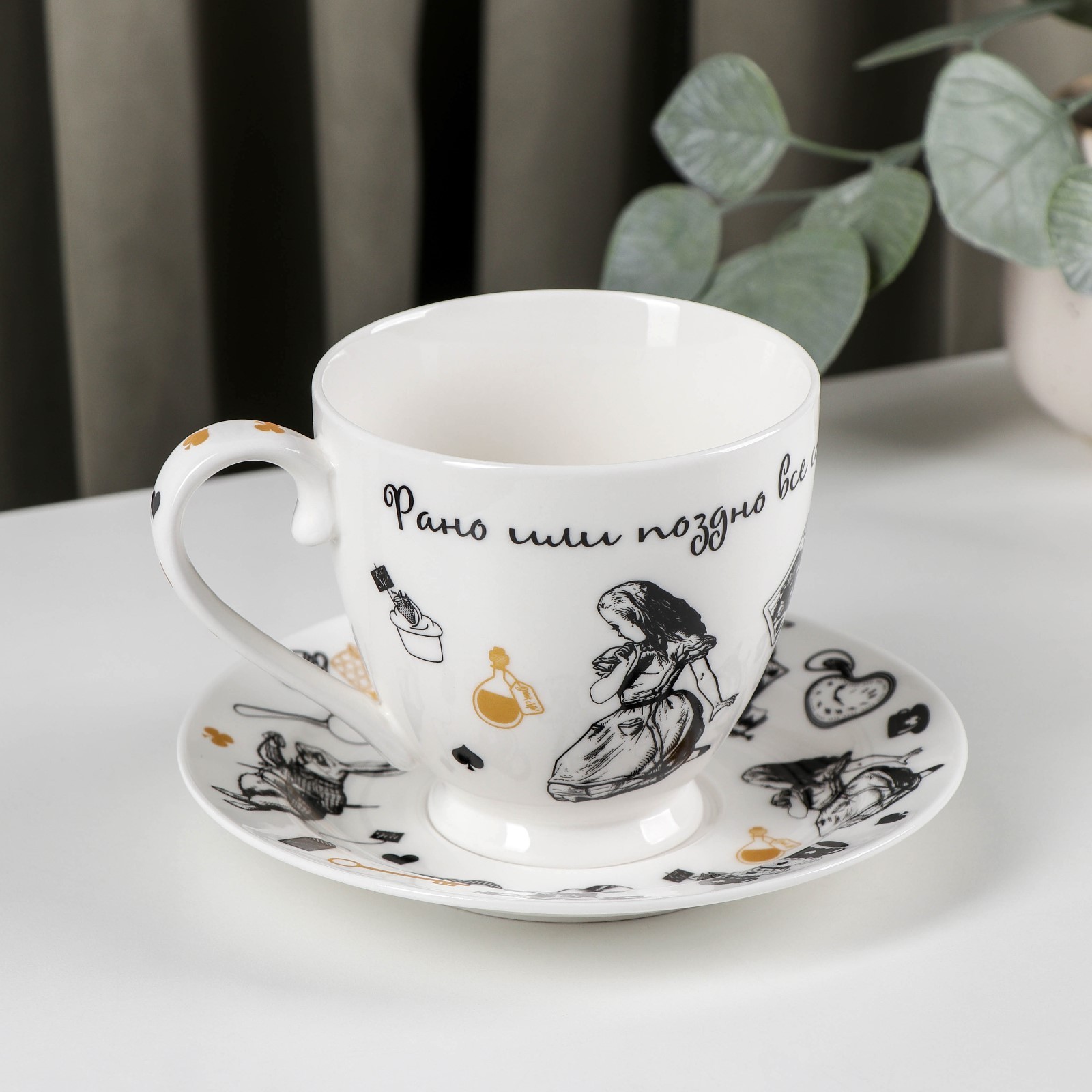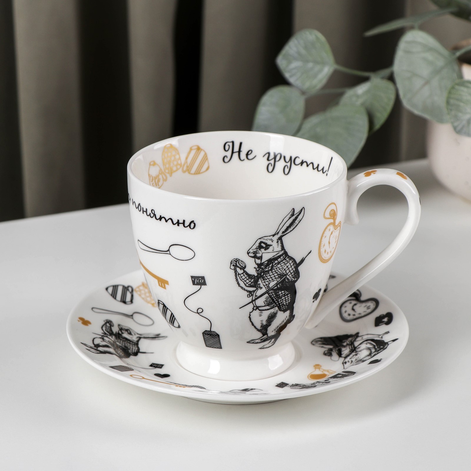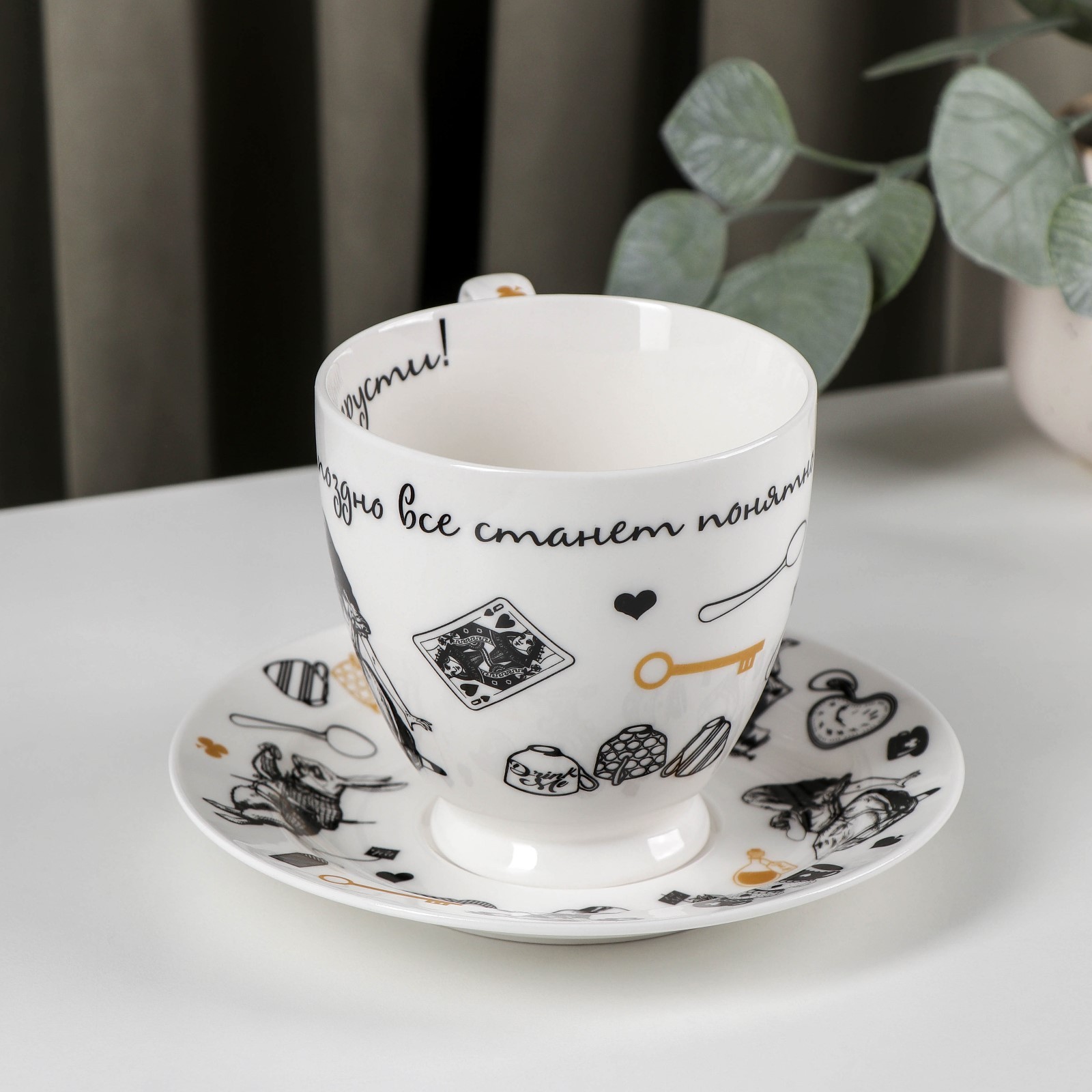 Чайная пара фарфоровая «безумное чаепитие», 440 мл, блюдце D=16,5 см