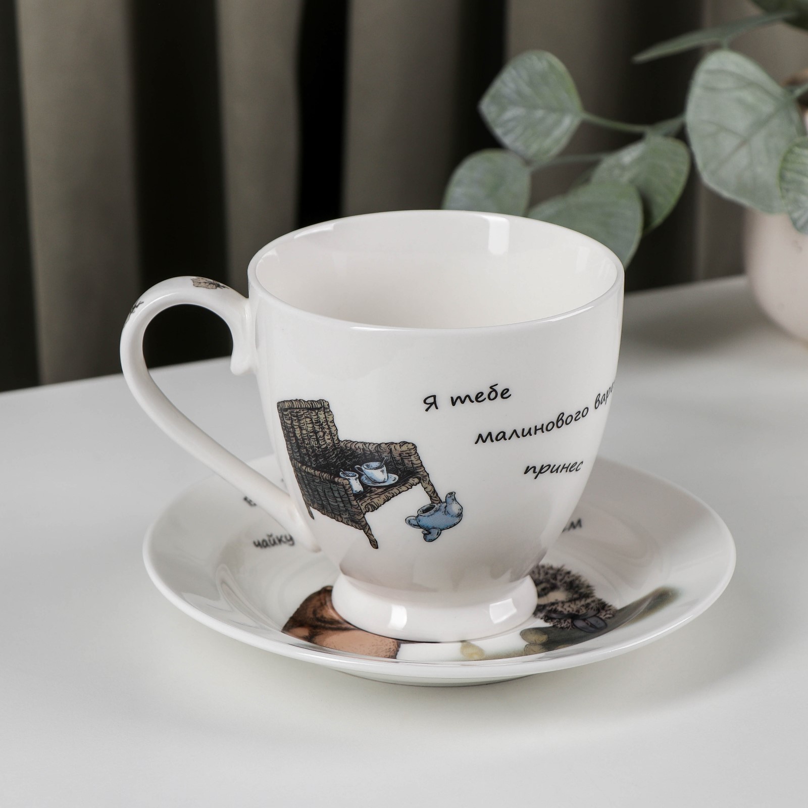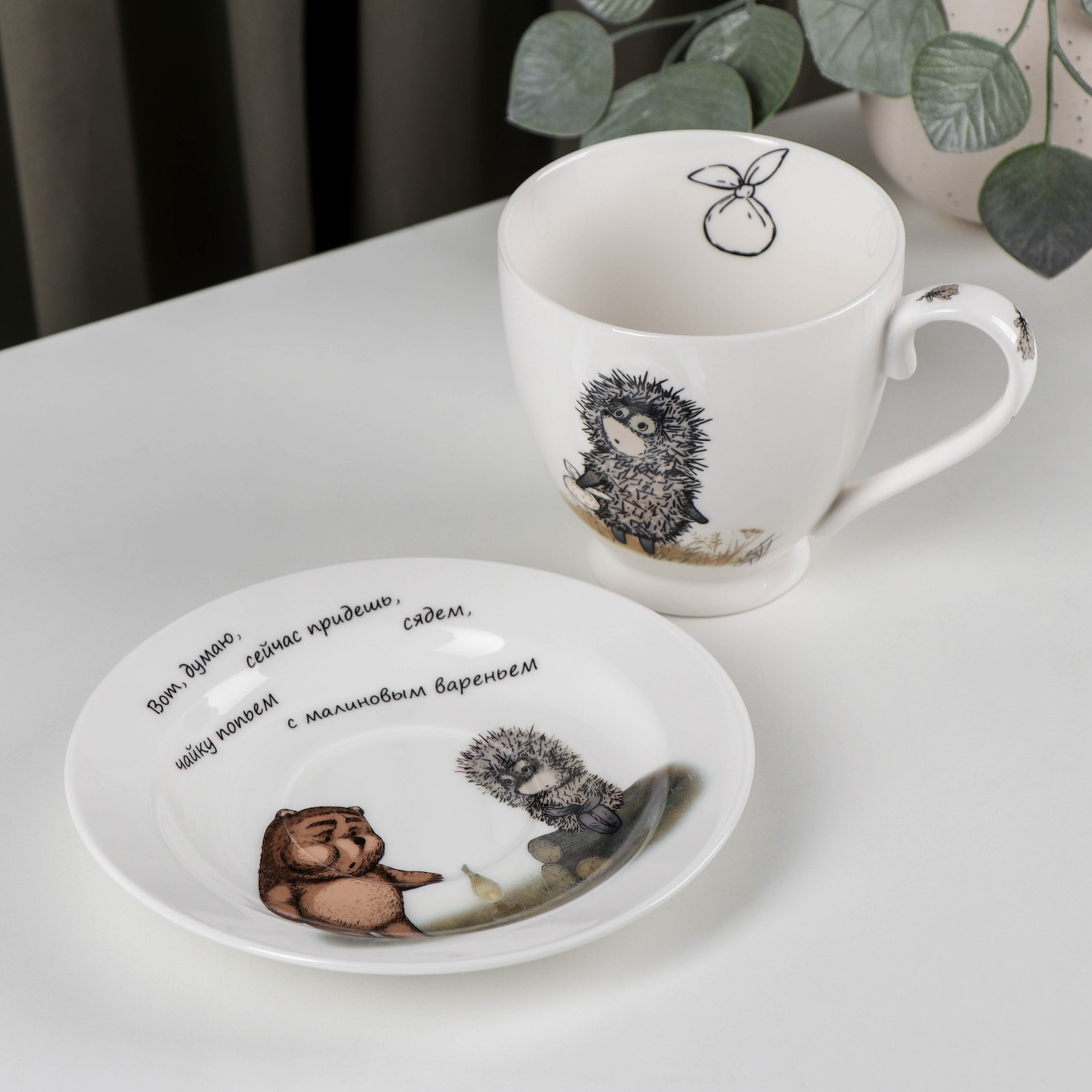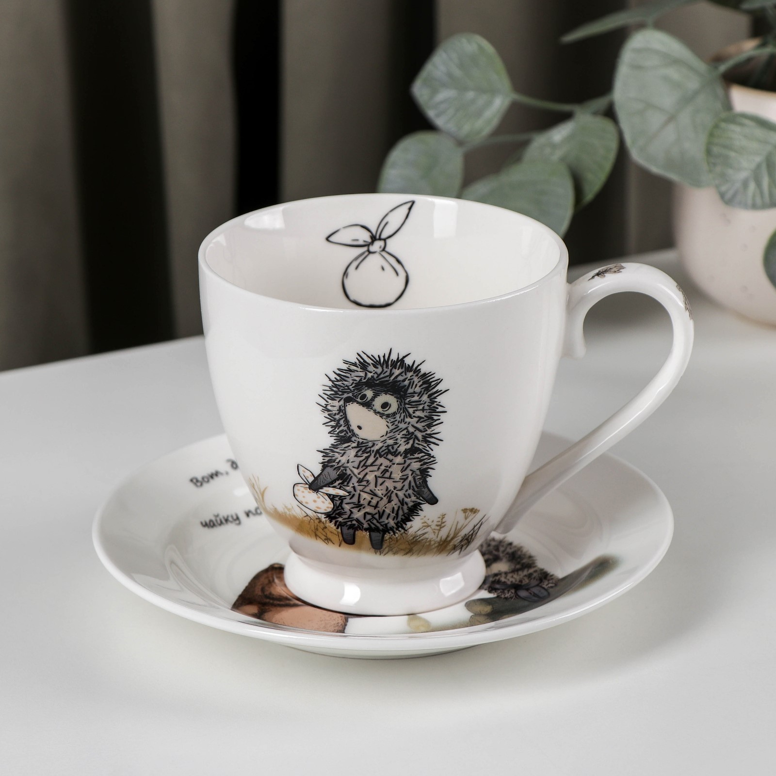 Чайная пара «ёжик в тумане», 440 мл, блюдце D=16,5 см