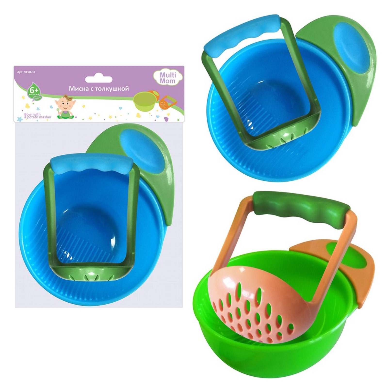 Миска для детей с толкушкой, 330 мл, D=6, цвет микс