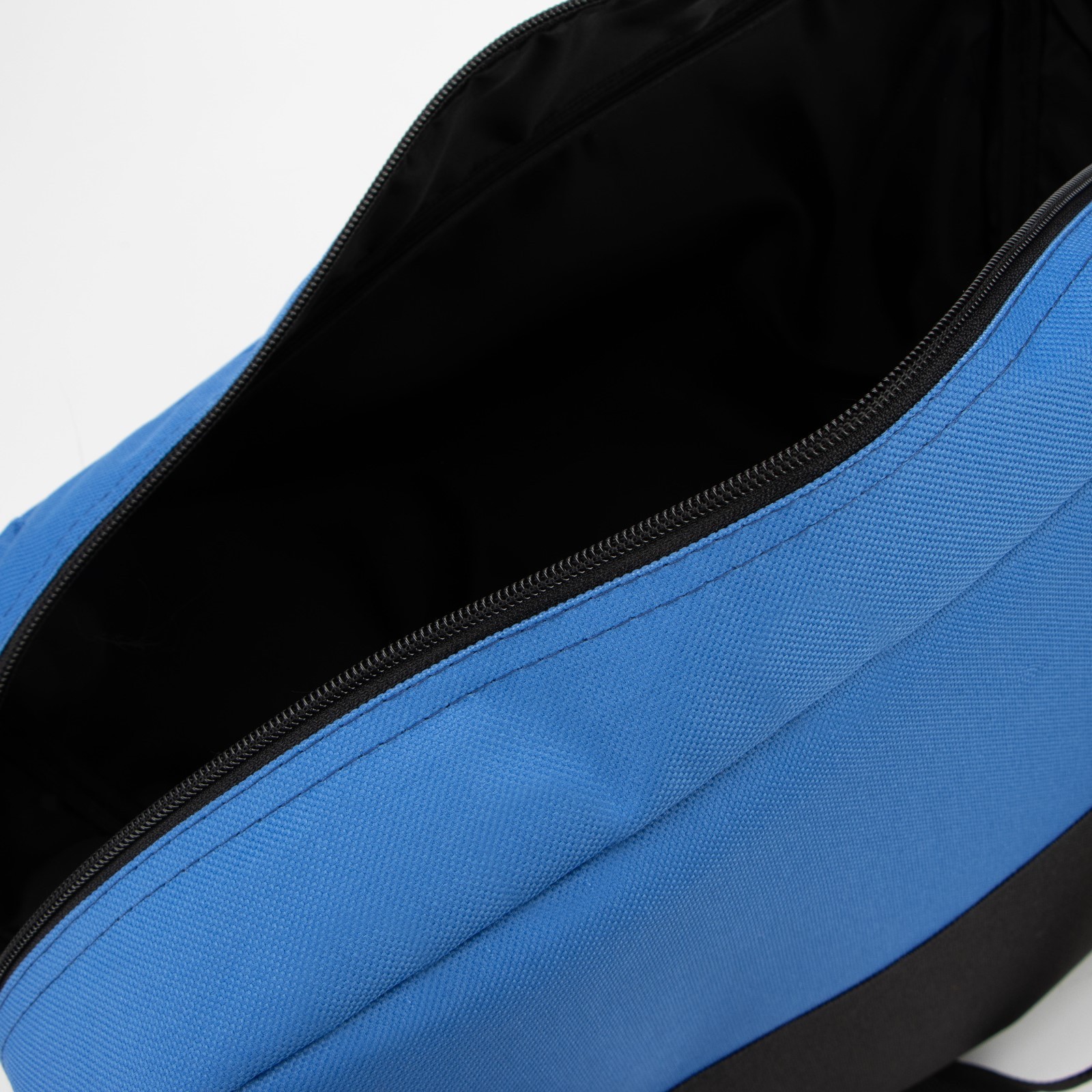 Сумка спортивная на молнии, длинный ремень, маленький размер, цвет чёрный/синий. Цвет: Чёрный Цвет: Синий Длина, см: 38 Материал: Текстиль Наличие символики РФ: Нет Модель сумки: Спортивная Дополнительный объём: Без увеличения Температурное ограничение: Нет  развернуть описание ▼