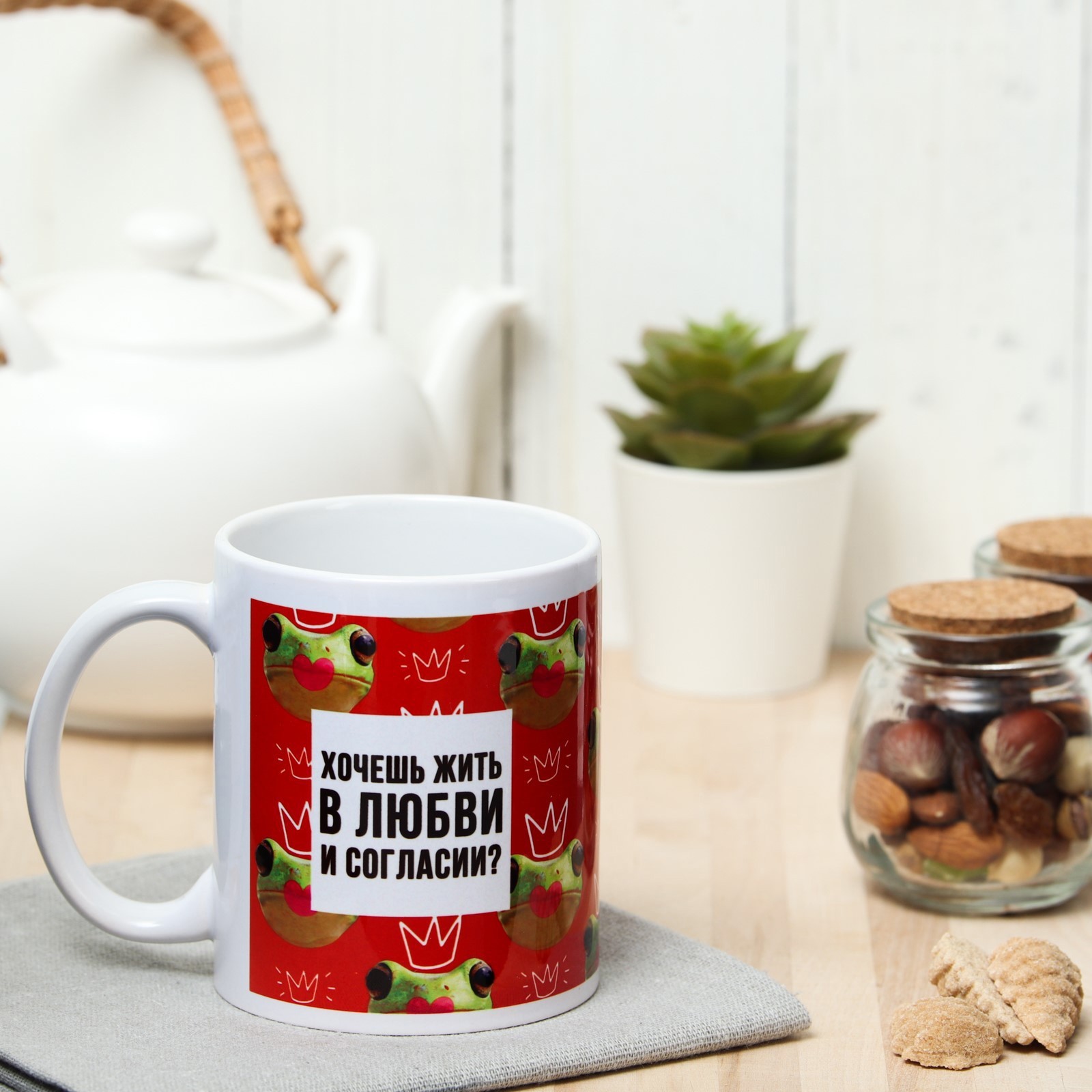 Кружка сублимация "в любви и согласии" лягушка, с нанесением