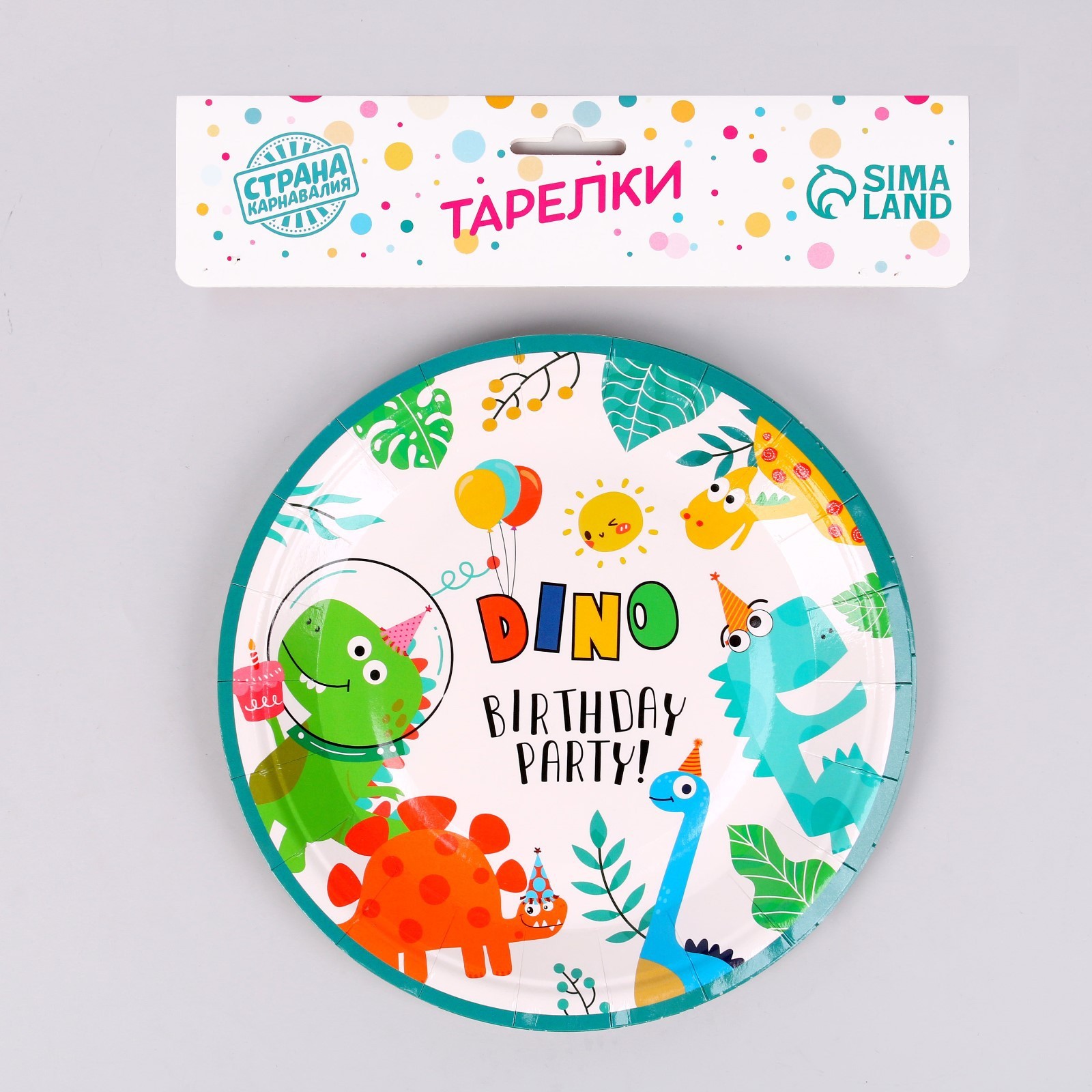 Тарелка бумажная «с днём рождения», динозавры, набор, 6 шт