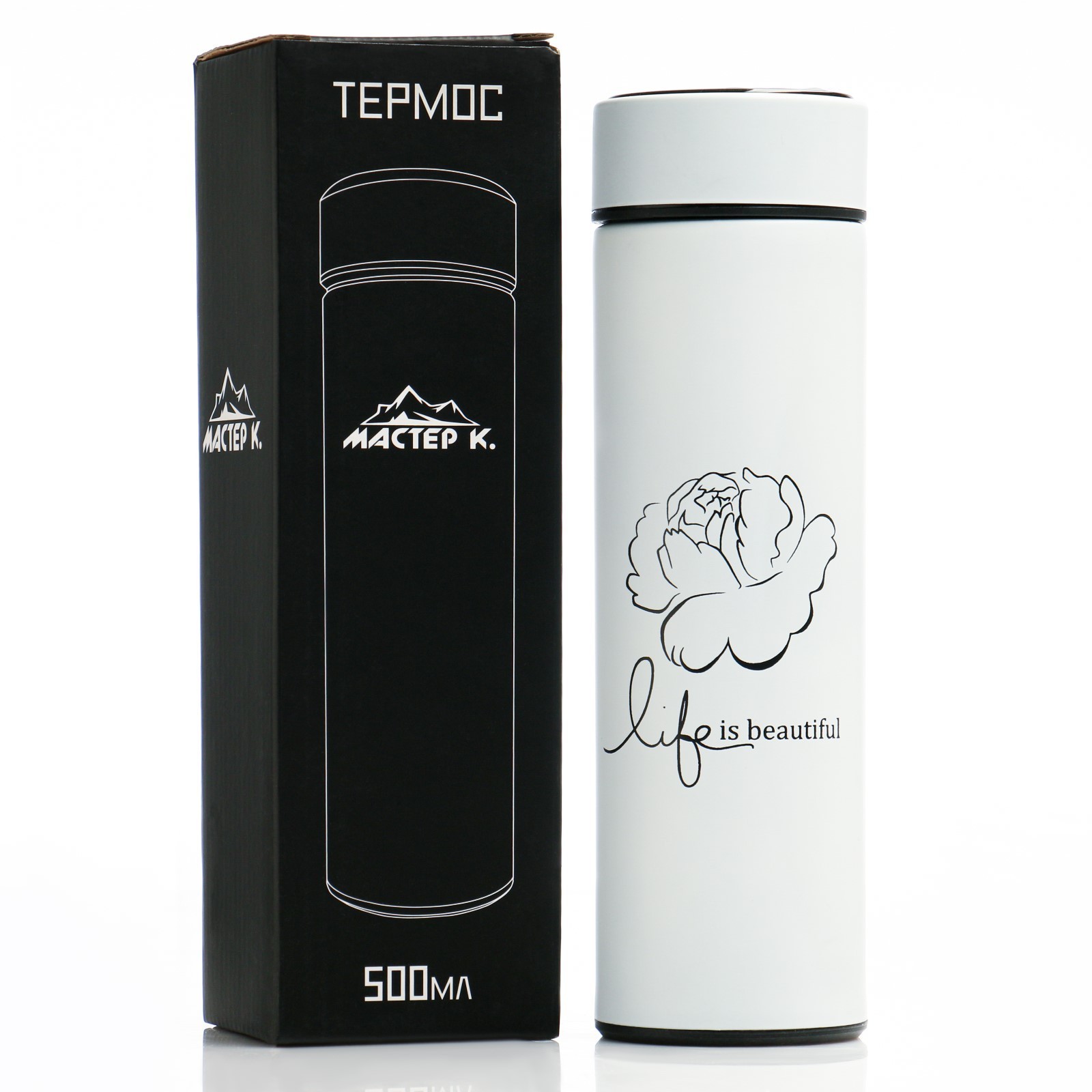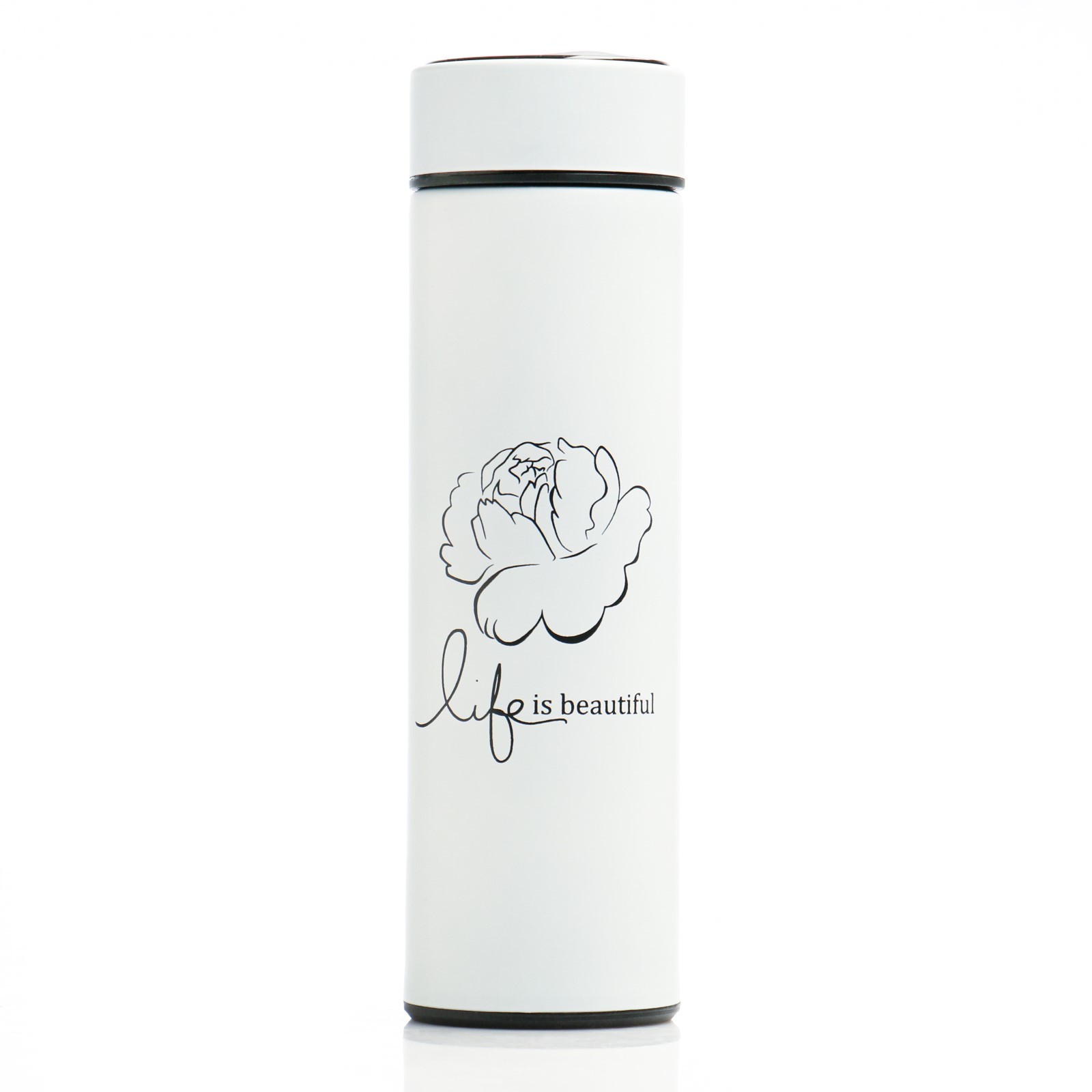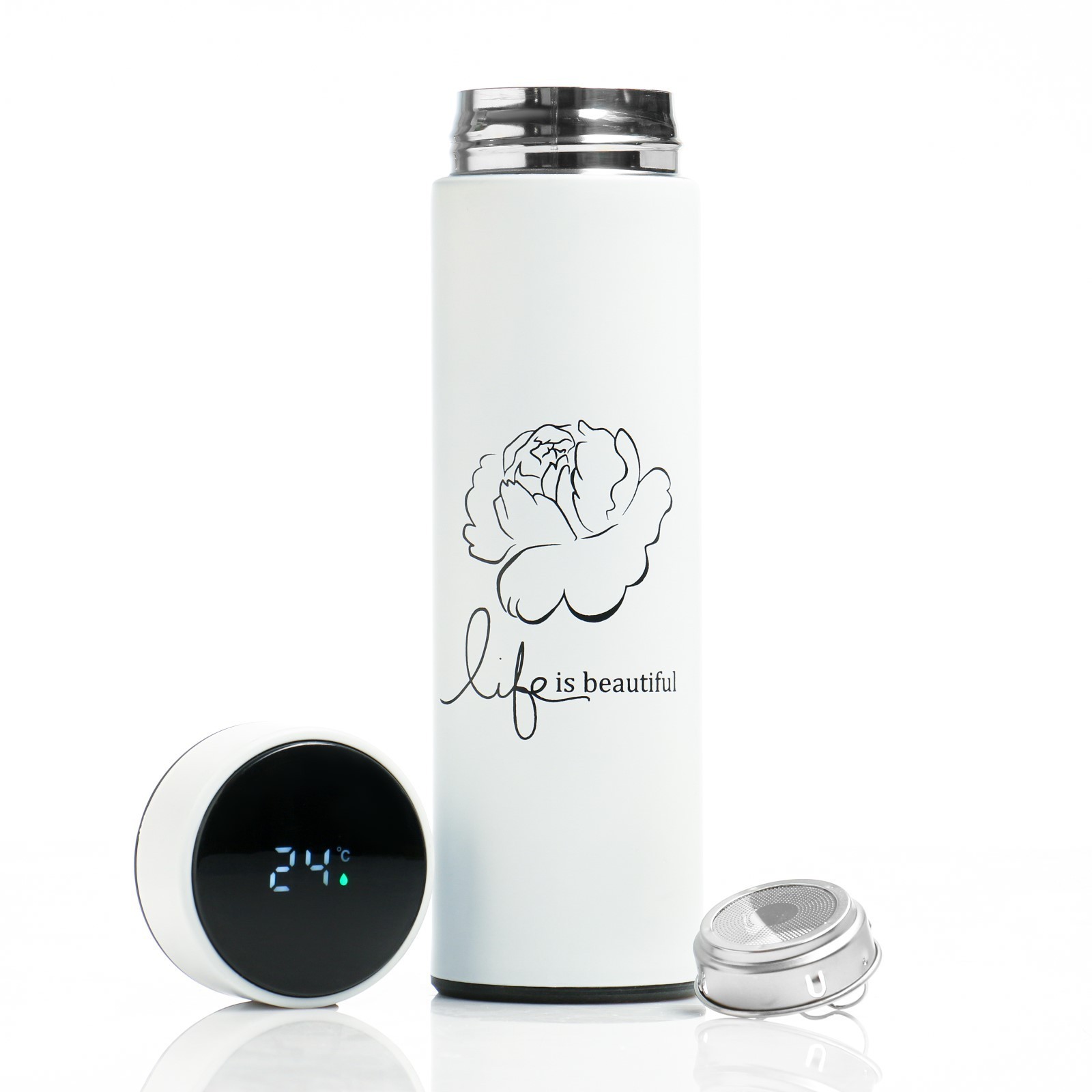 Термос, 500 мл, Basic "жизнь прекрасна",с ситечком,с датчиком температуры,сохраняет тепло 8 ч