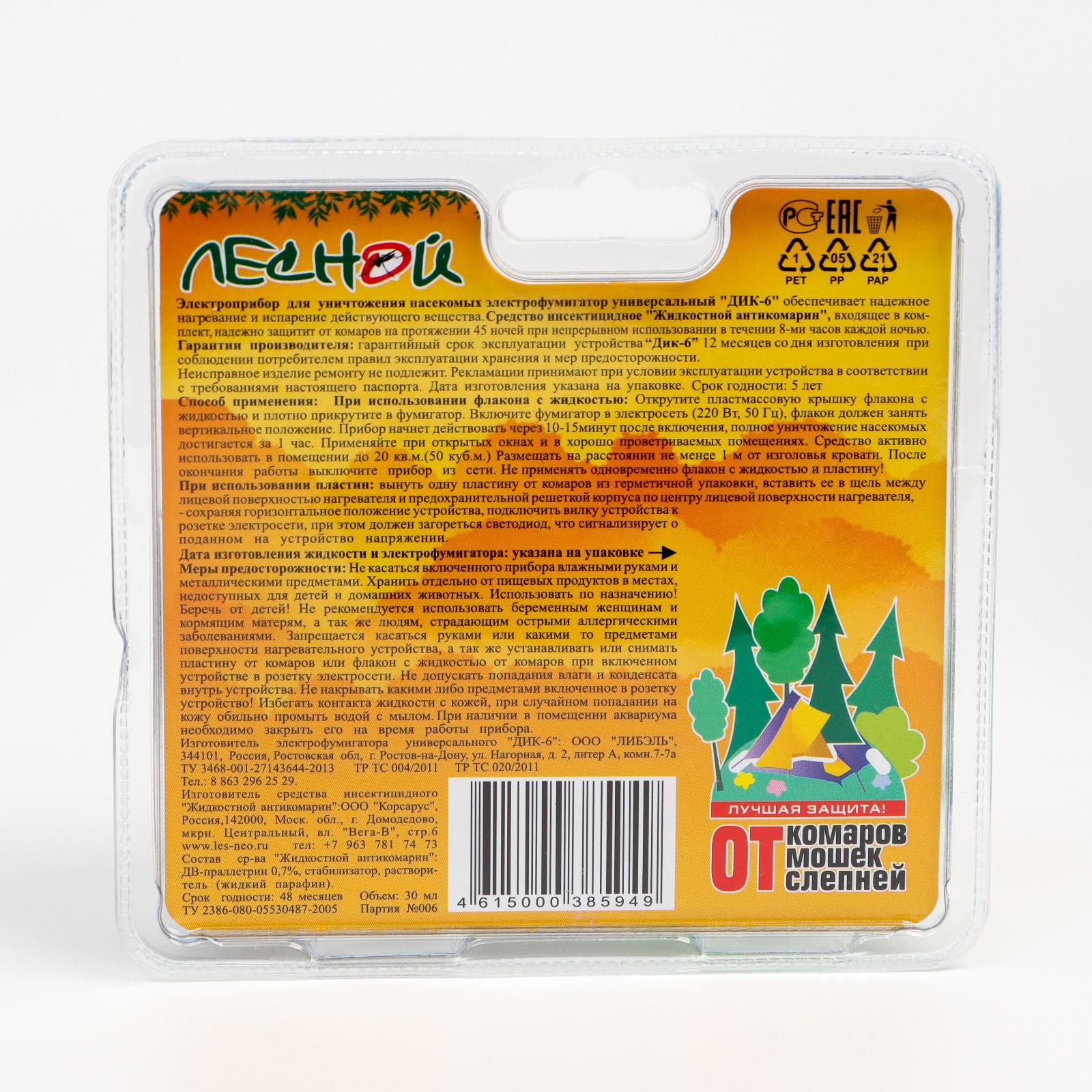 Комплект от комаров "лесной", жидкость 45 ночей+фумигатор, в евроблистере